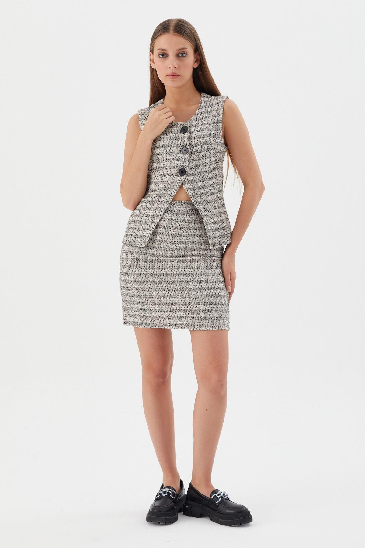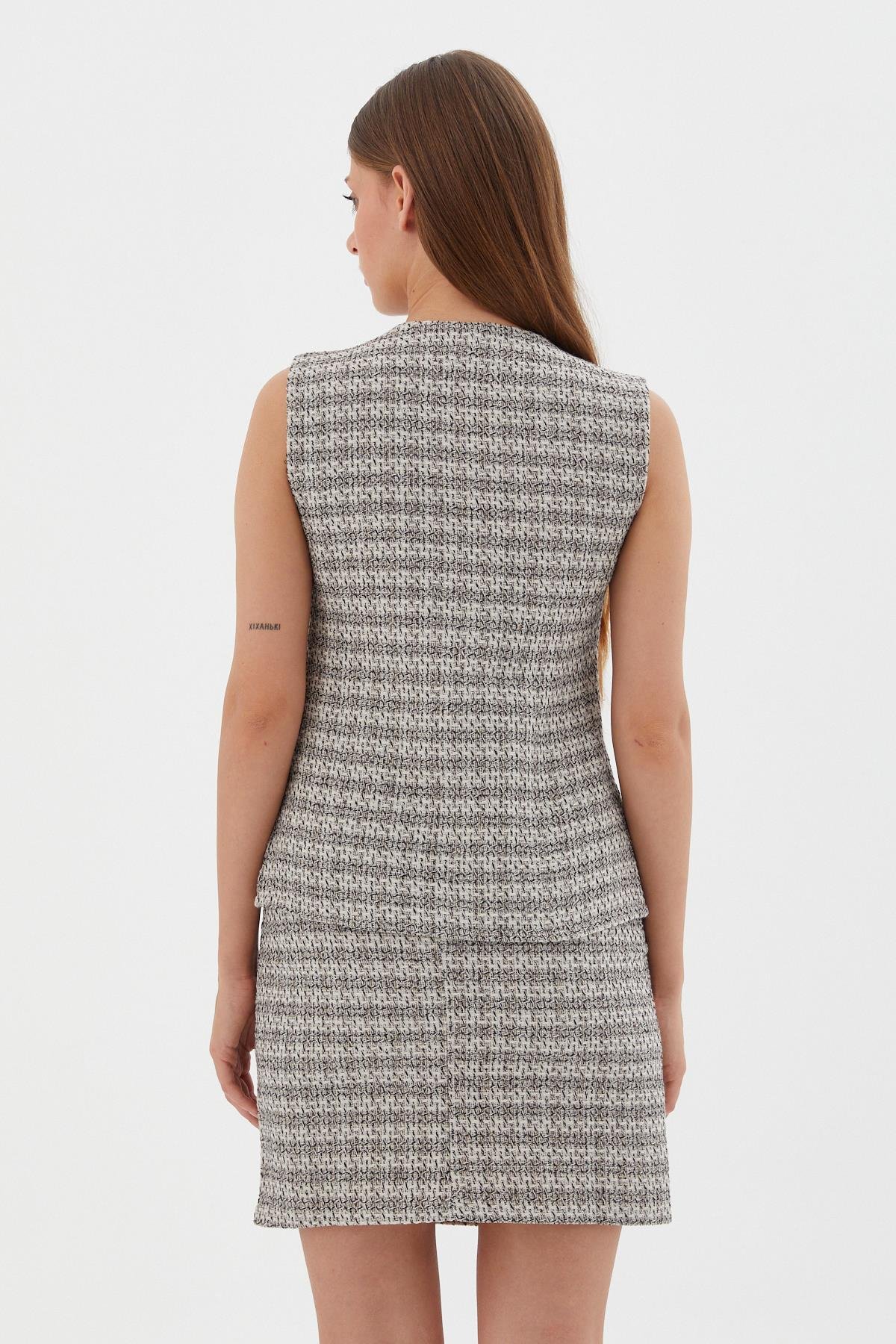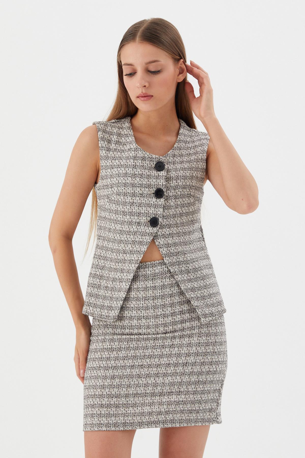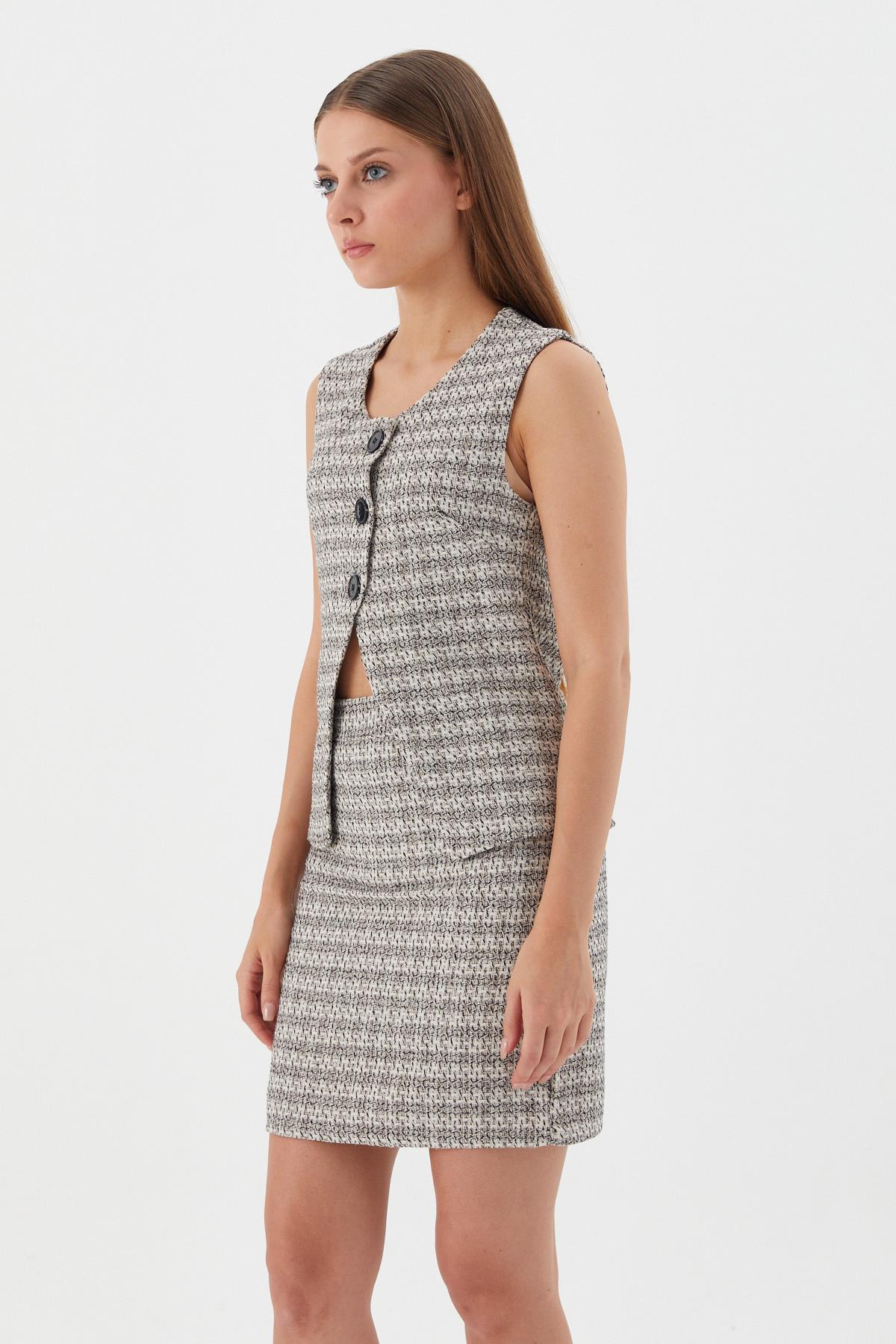 Asimetrik Ekose Yelek EKRU (WWOV008P0006_919)