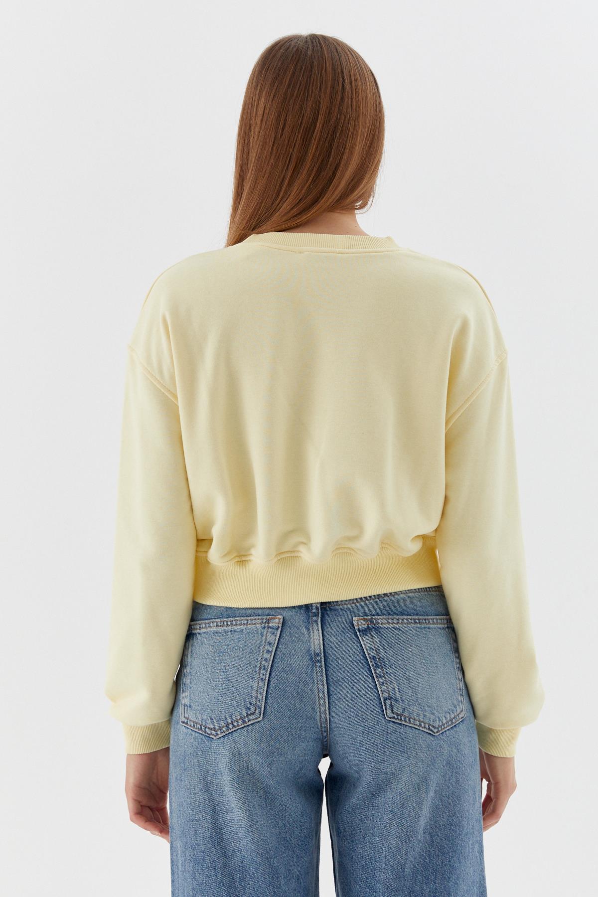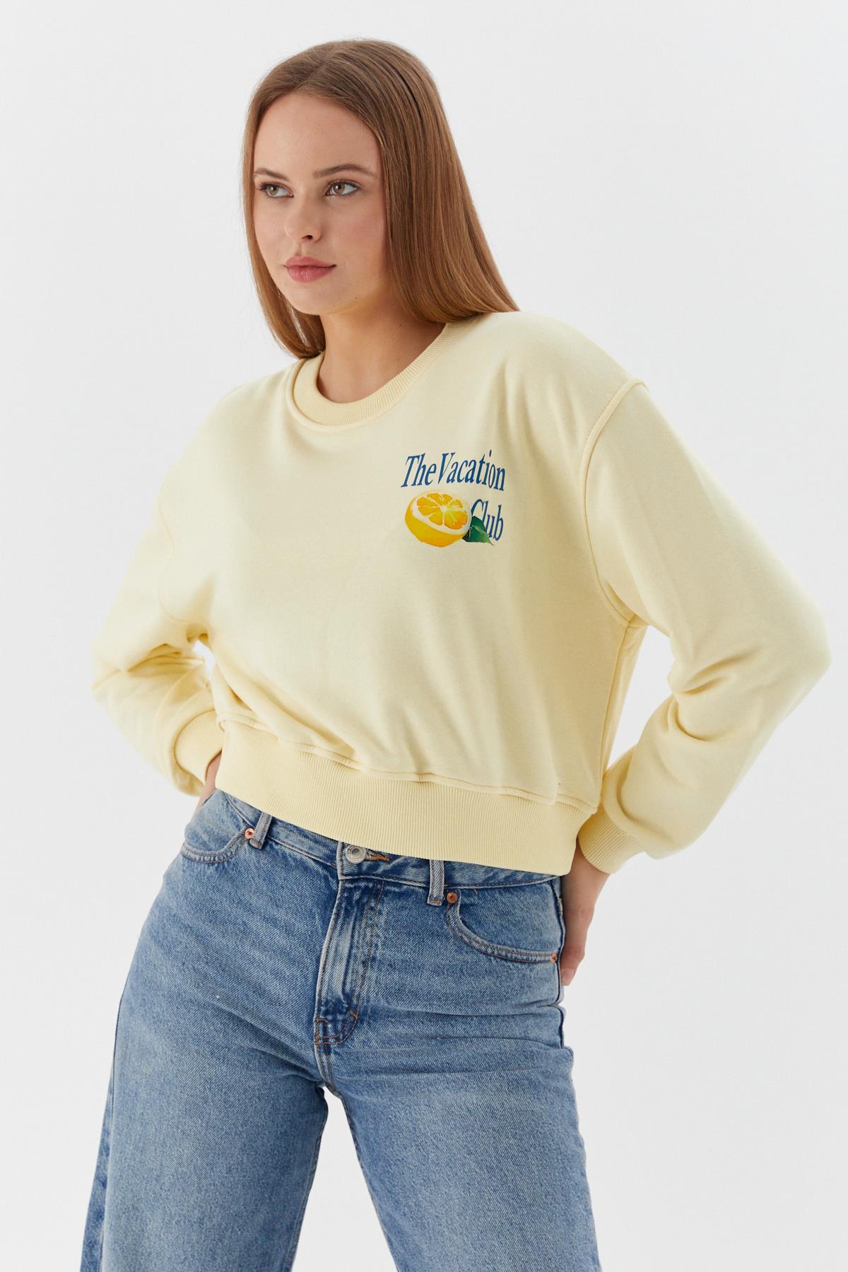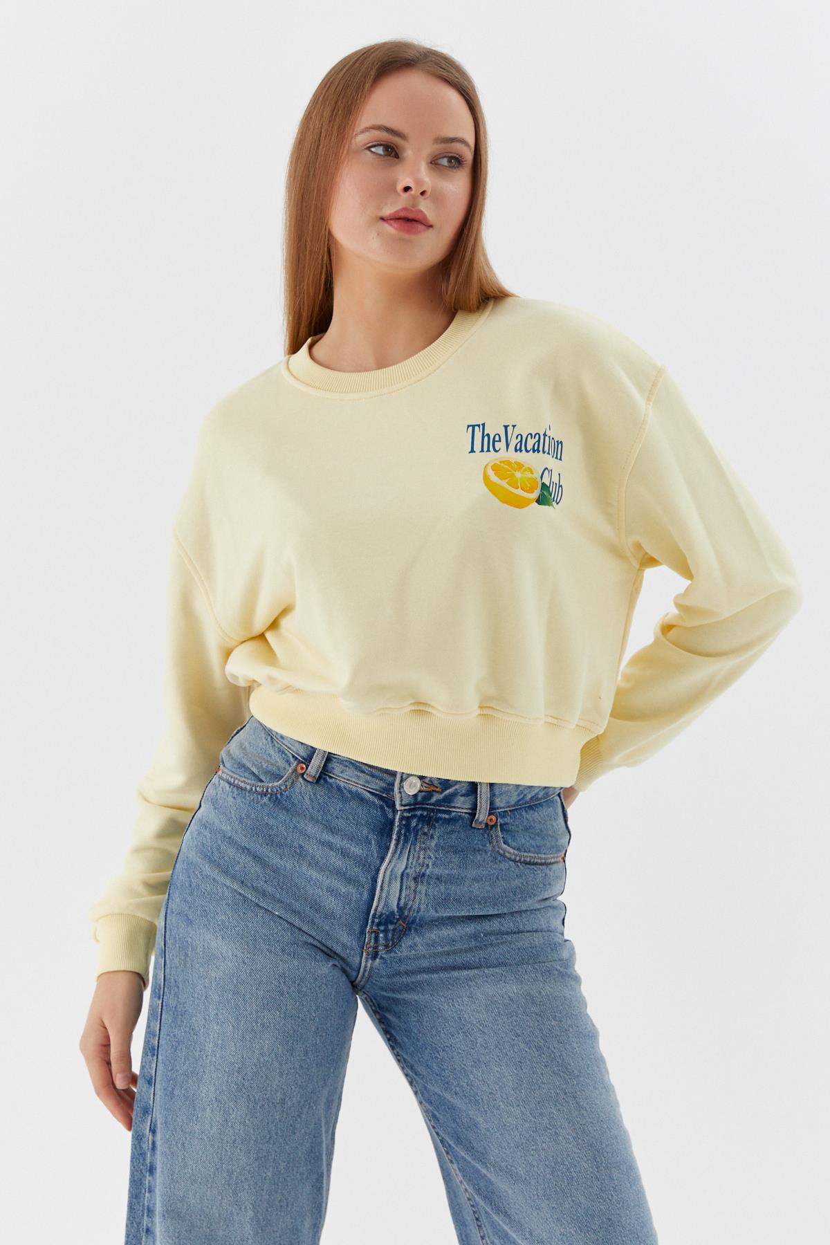 Baskılı Crop Sweatshirt SARI (WNOW010P0030_699)
