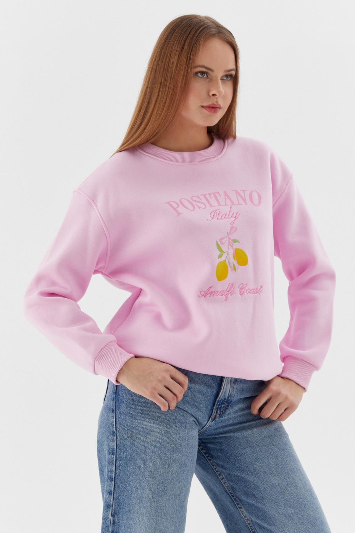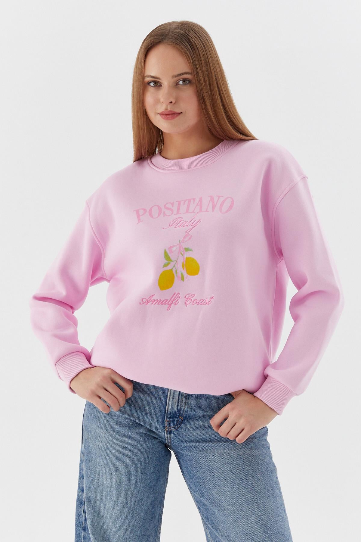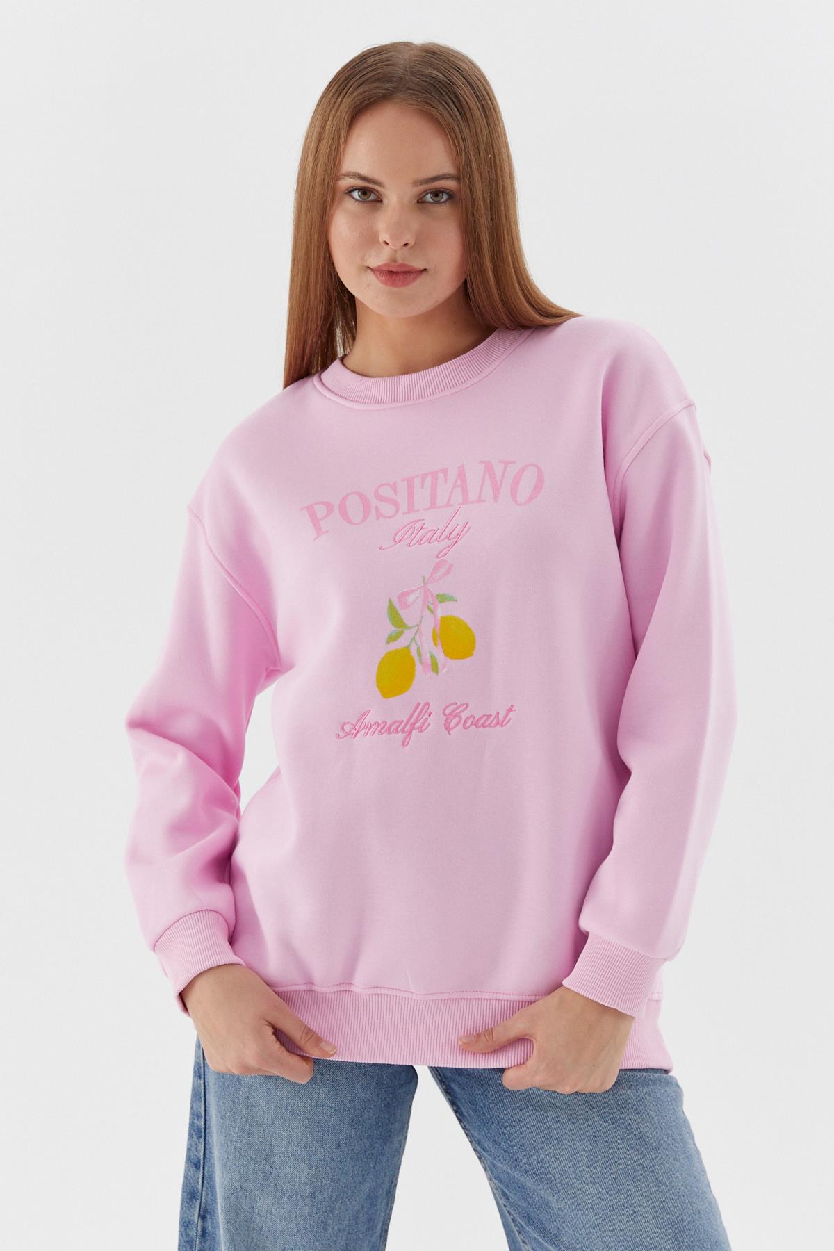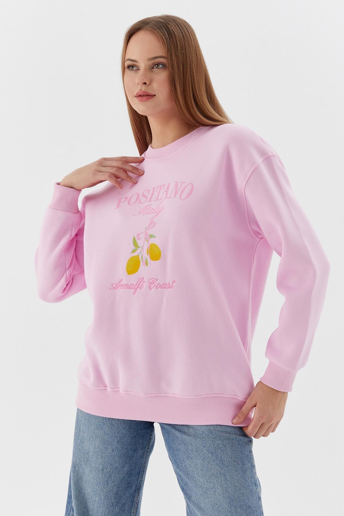 Baskılı Oversize Sweatshirt PEMBE (WNOW010P0033_474)