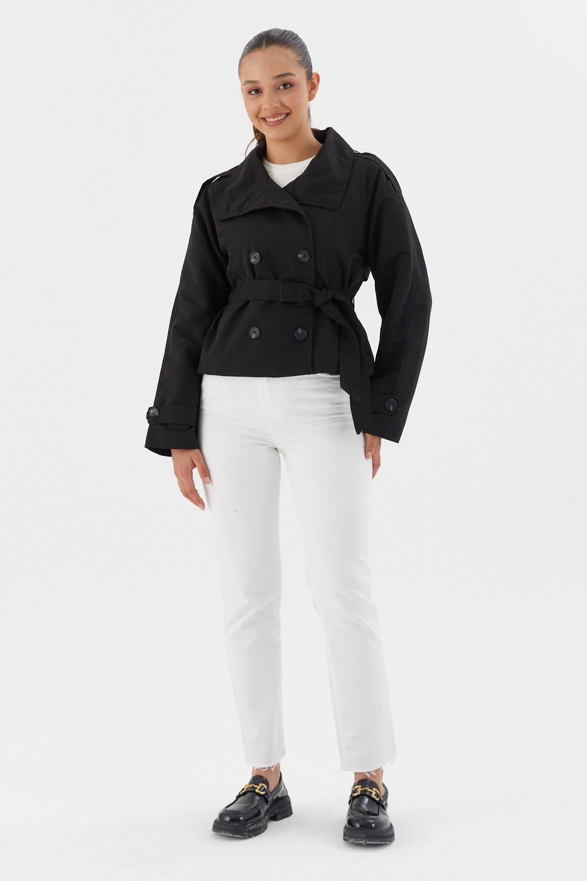 Beli Kuşaklı Crop Trençkot SIYAH (WWOV007P0022_477)