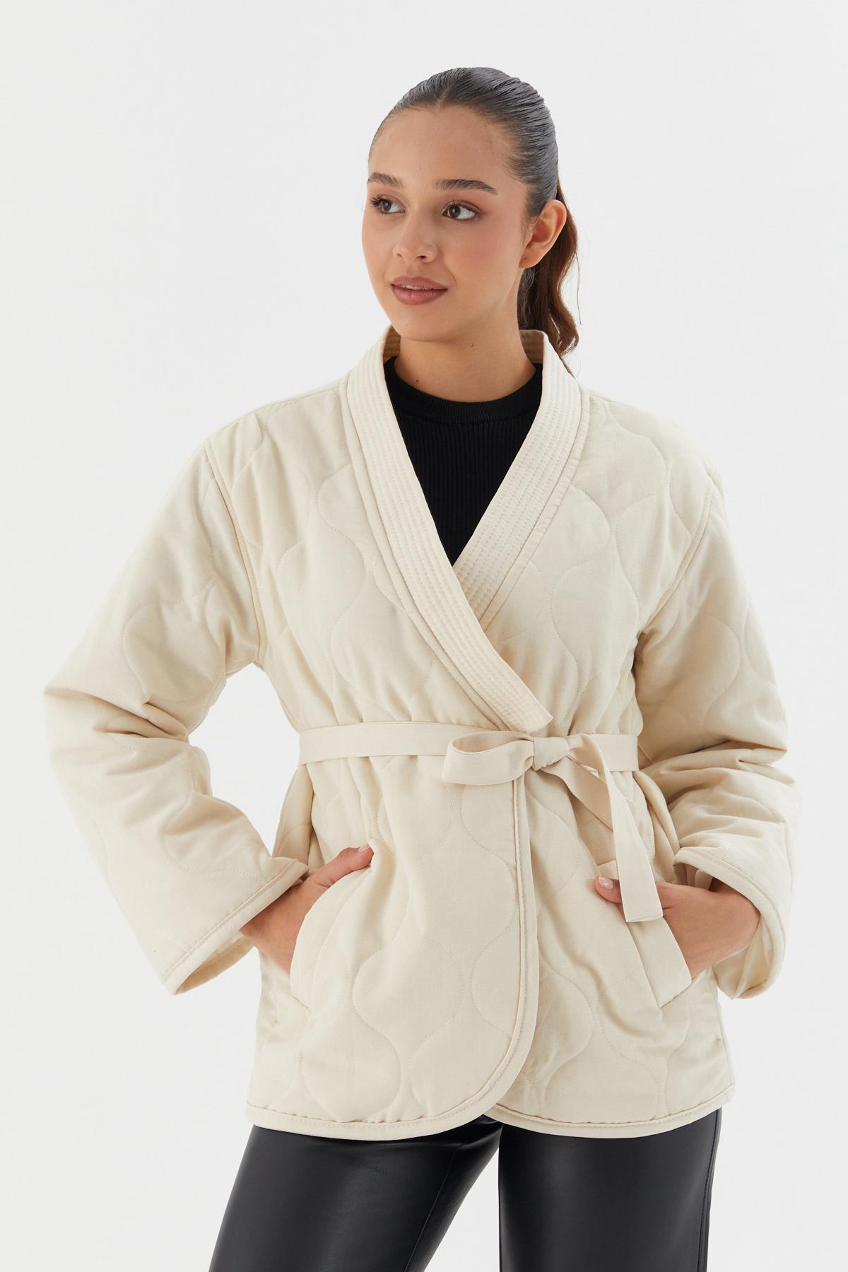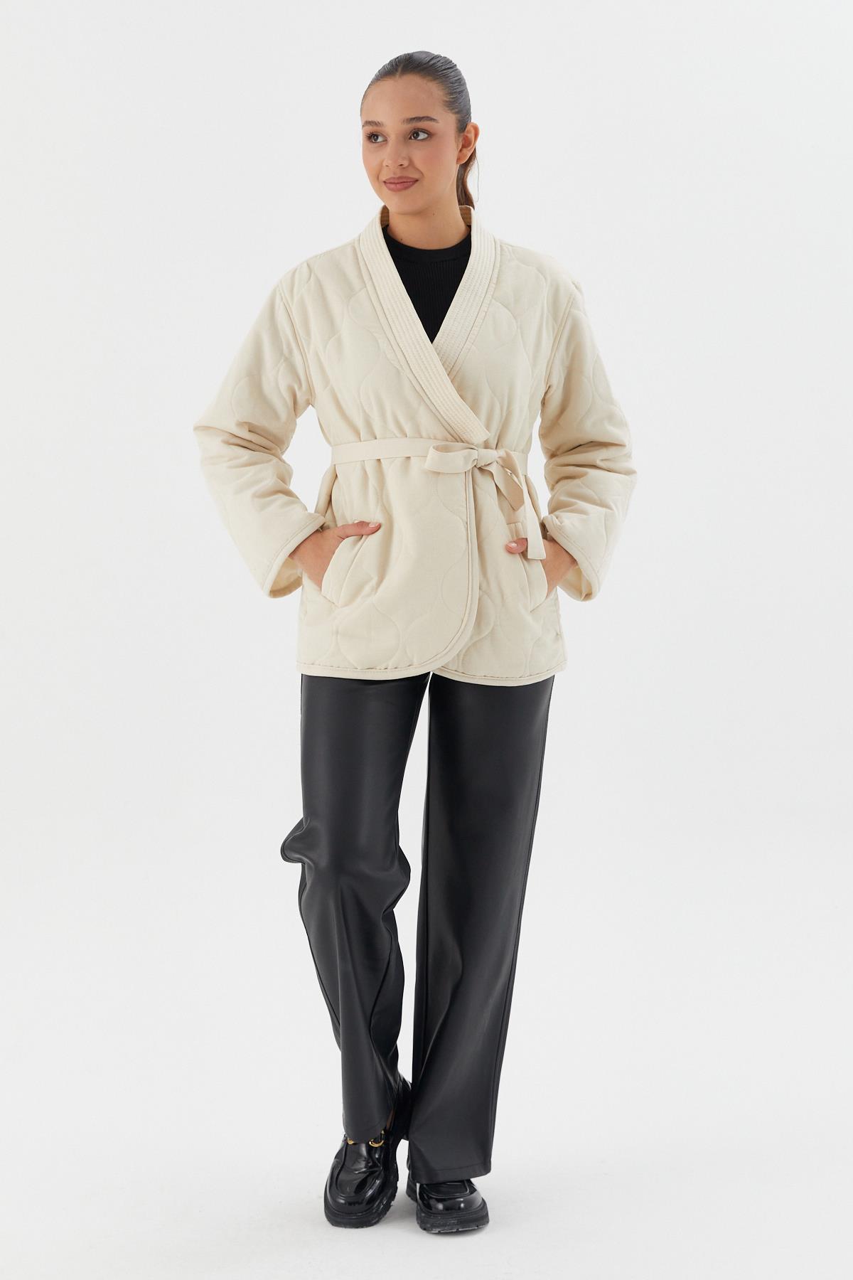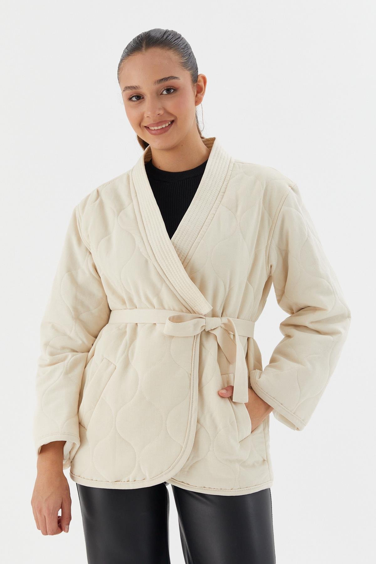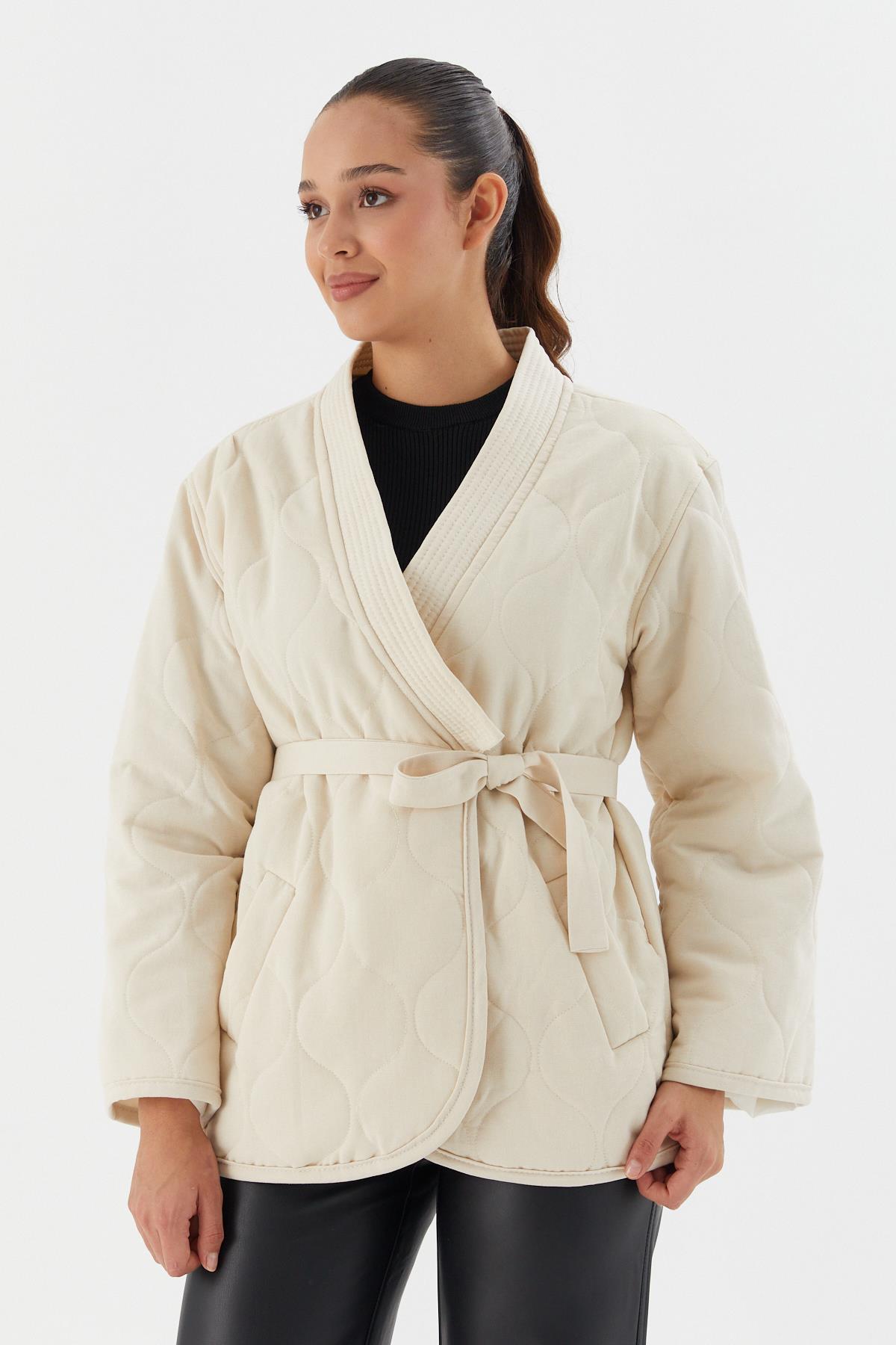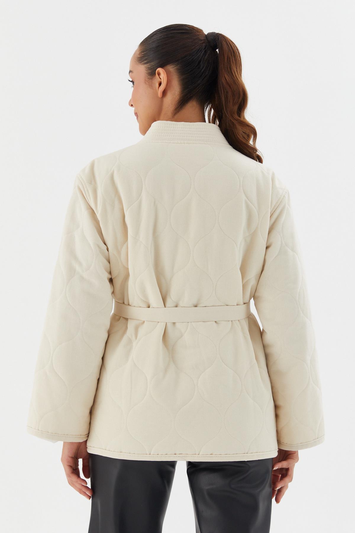 Beli Kuşaklı Kapitone Ceket BEJ (WWOV014P0018_498)