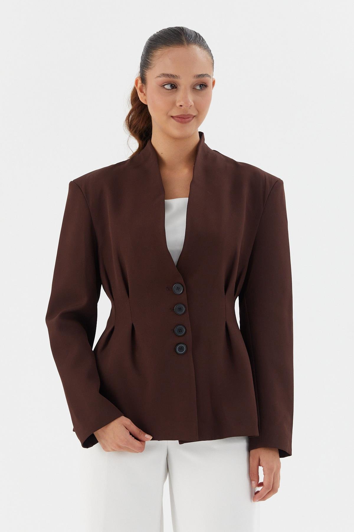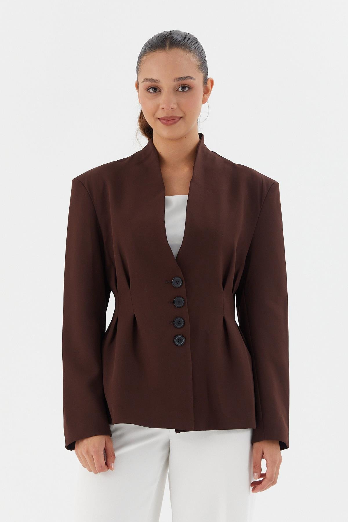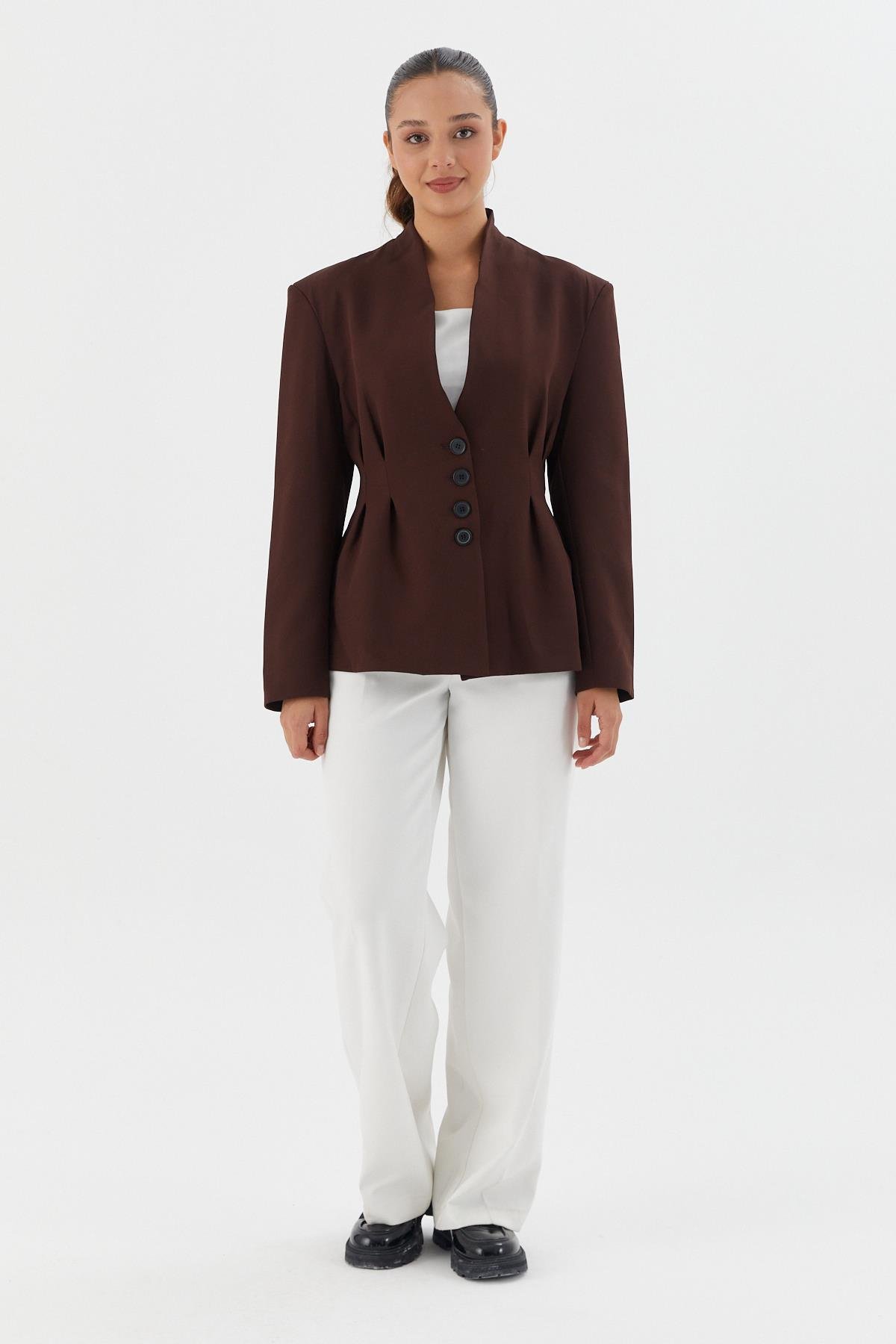 Beli Oturtmalı Ceket KAHVE (WWOV007P0020_454)