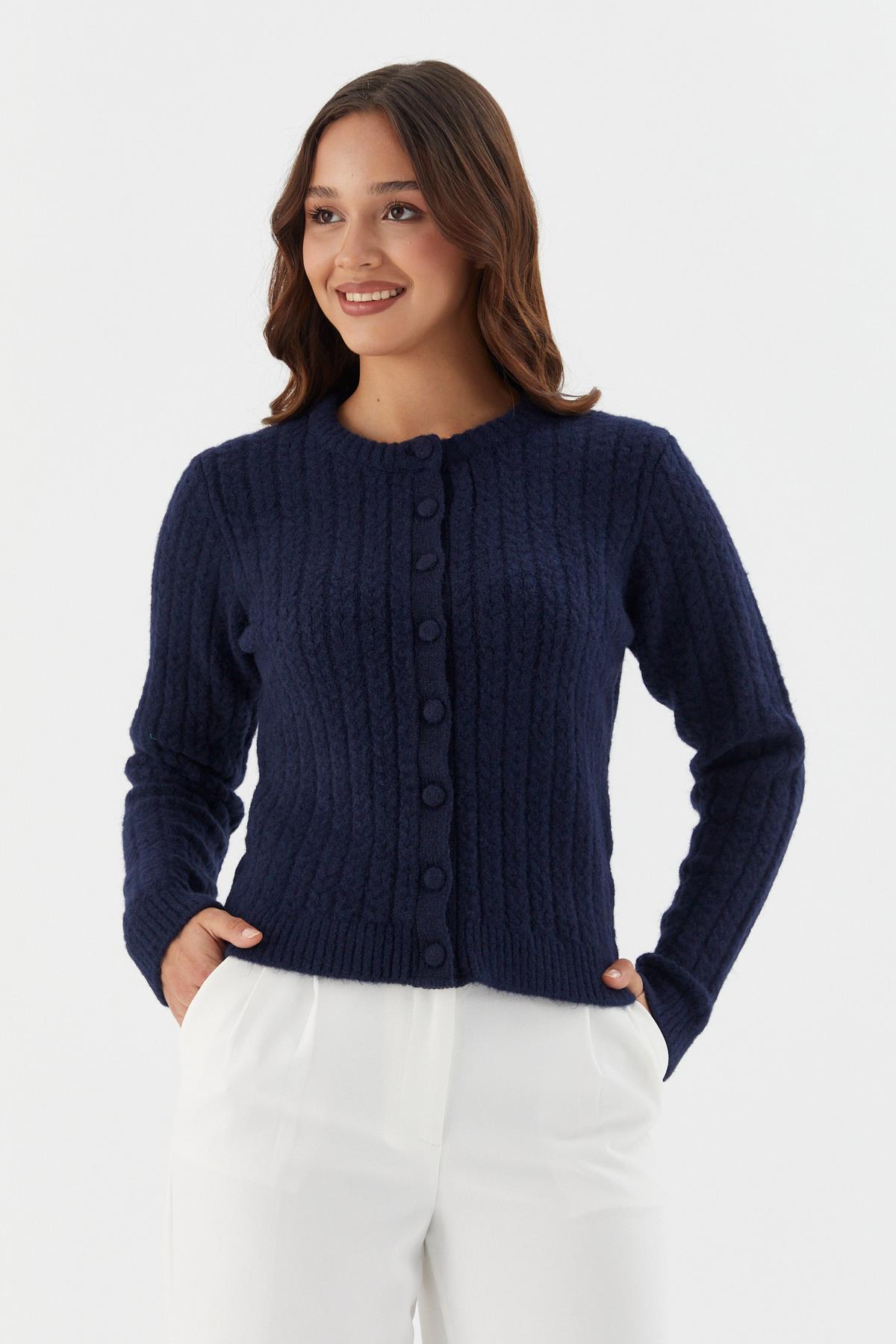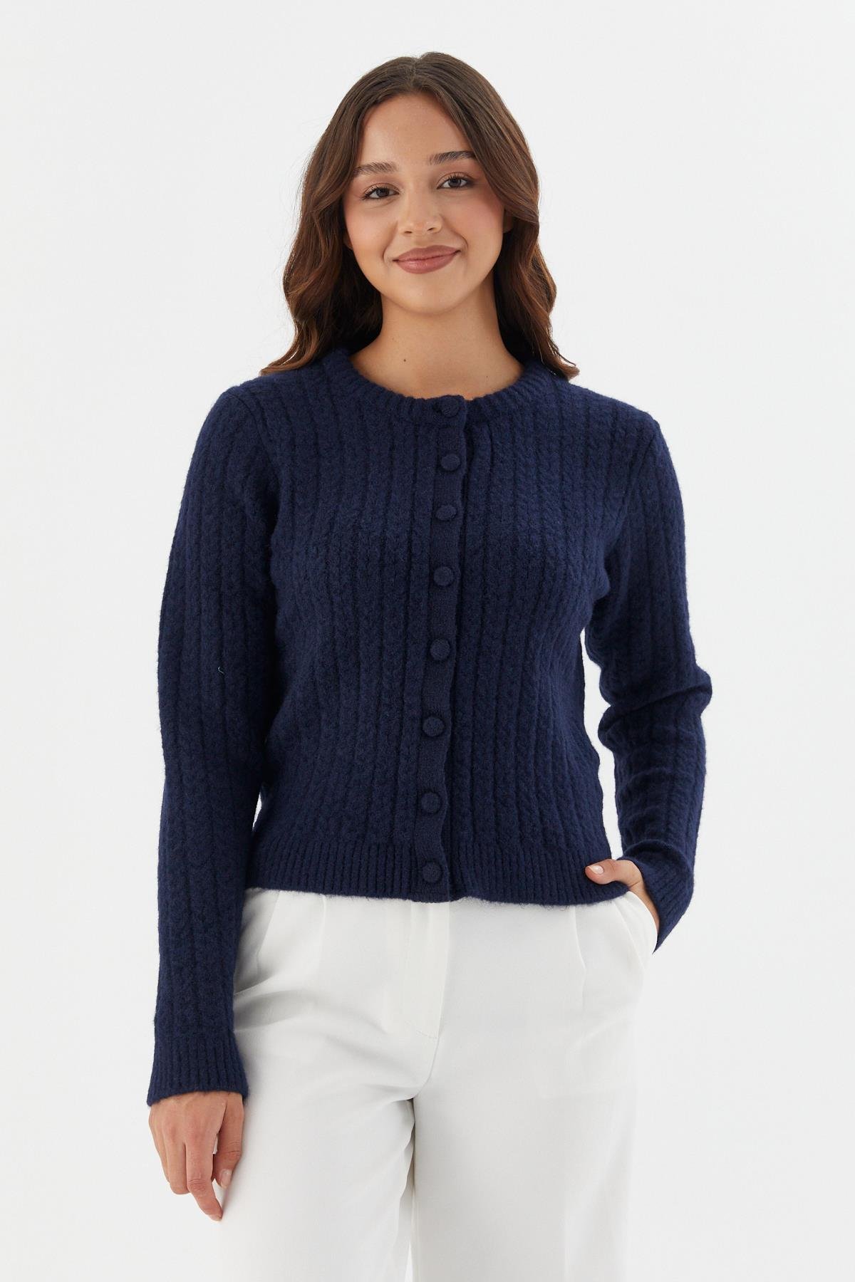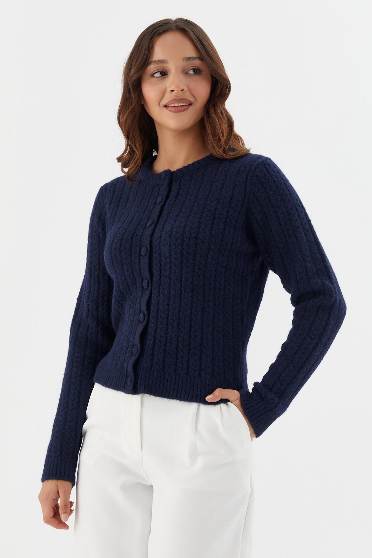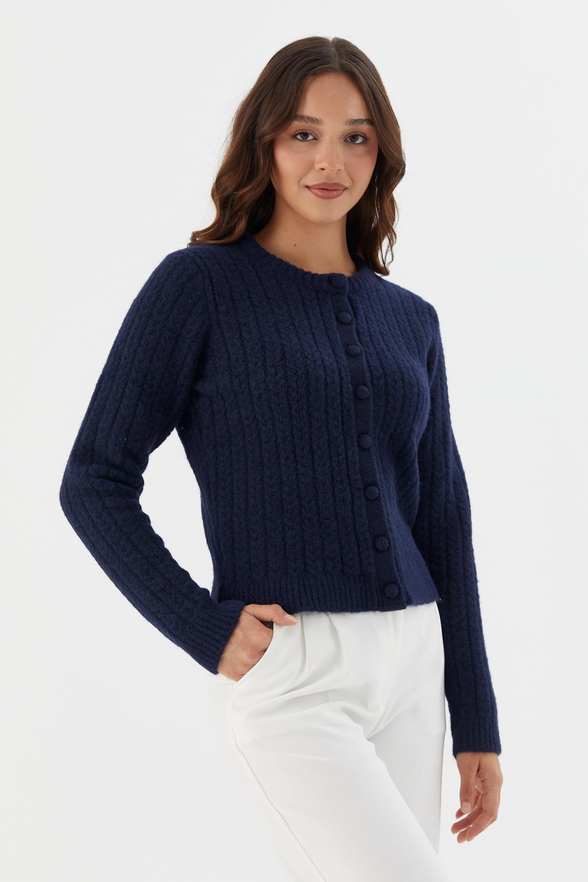 Bisiklet Yaka Fitilli Triko Hırka LACI (WTRI009P0029_187)