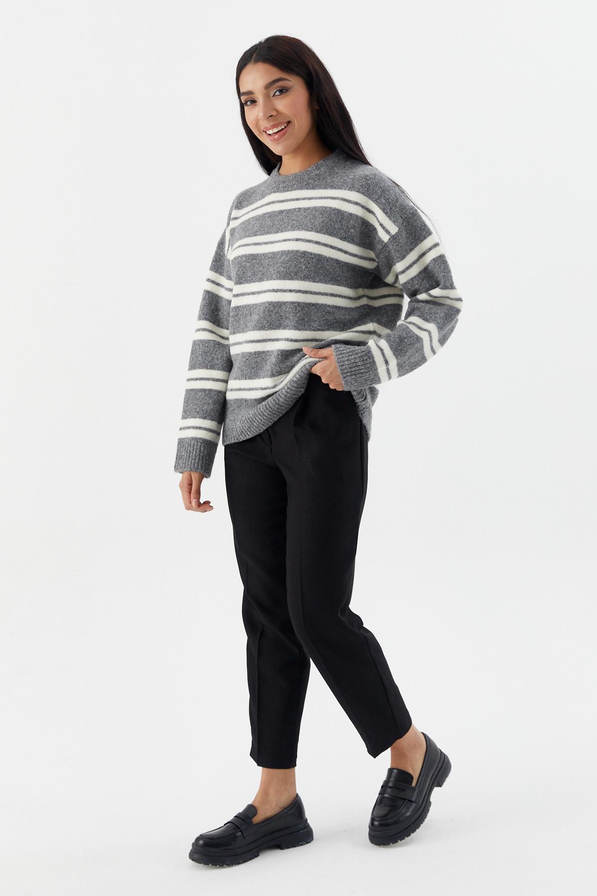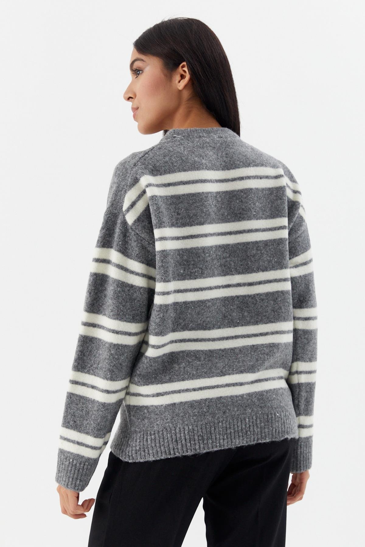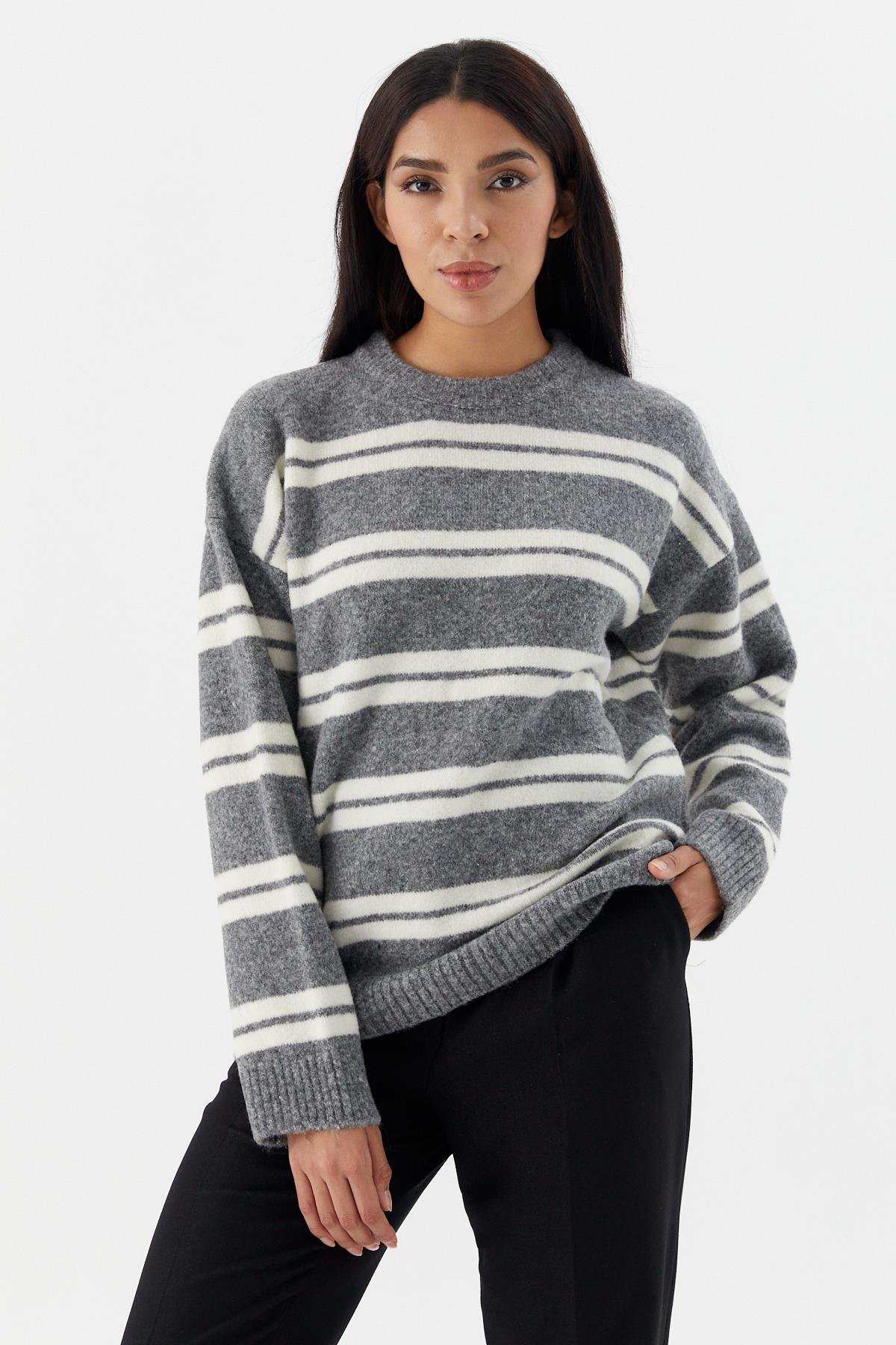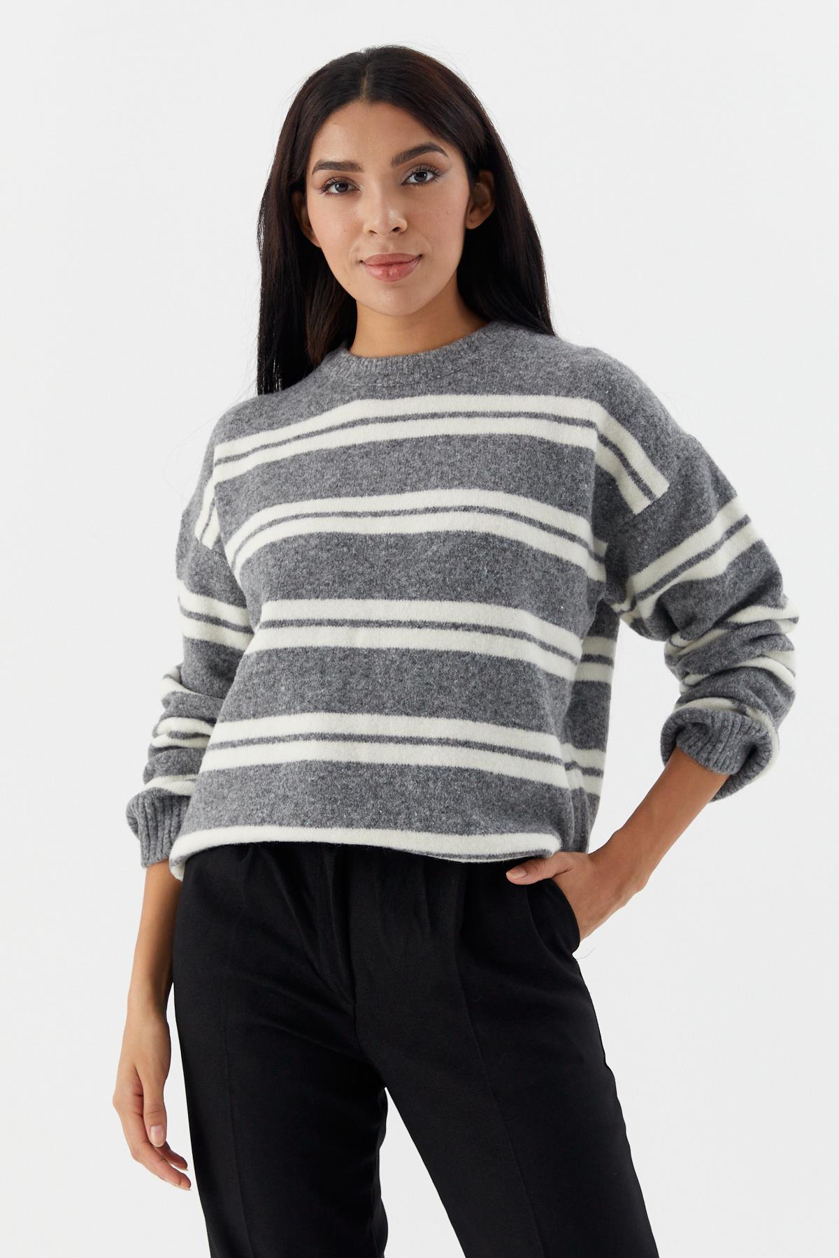 Çizgili Triko Kazak GRI (WTRI012P0068_439)