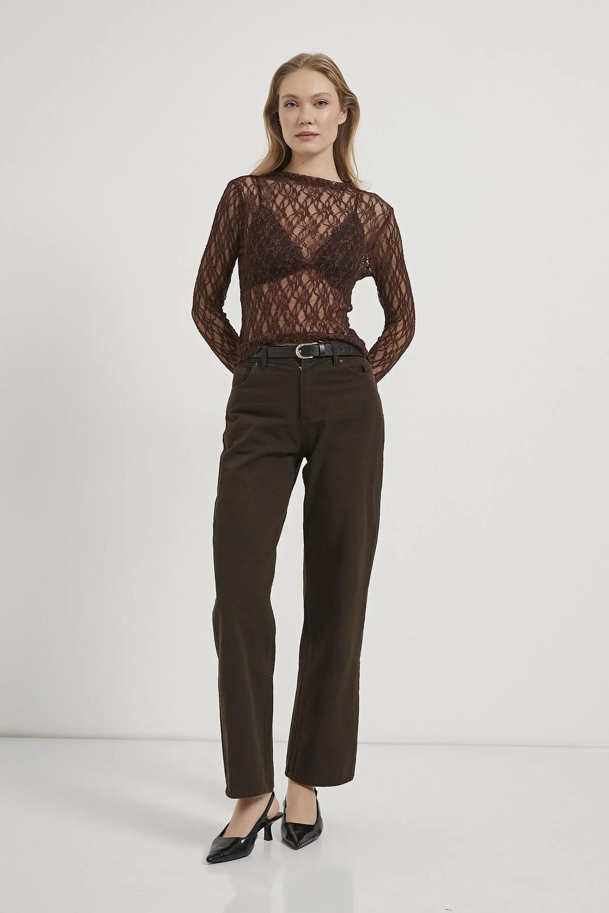 Dik Yaka Dantel Bluz KAHVE (WWOV002S0001_454)