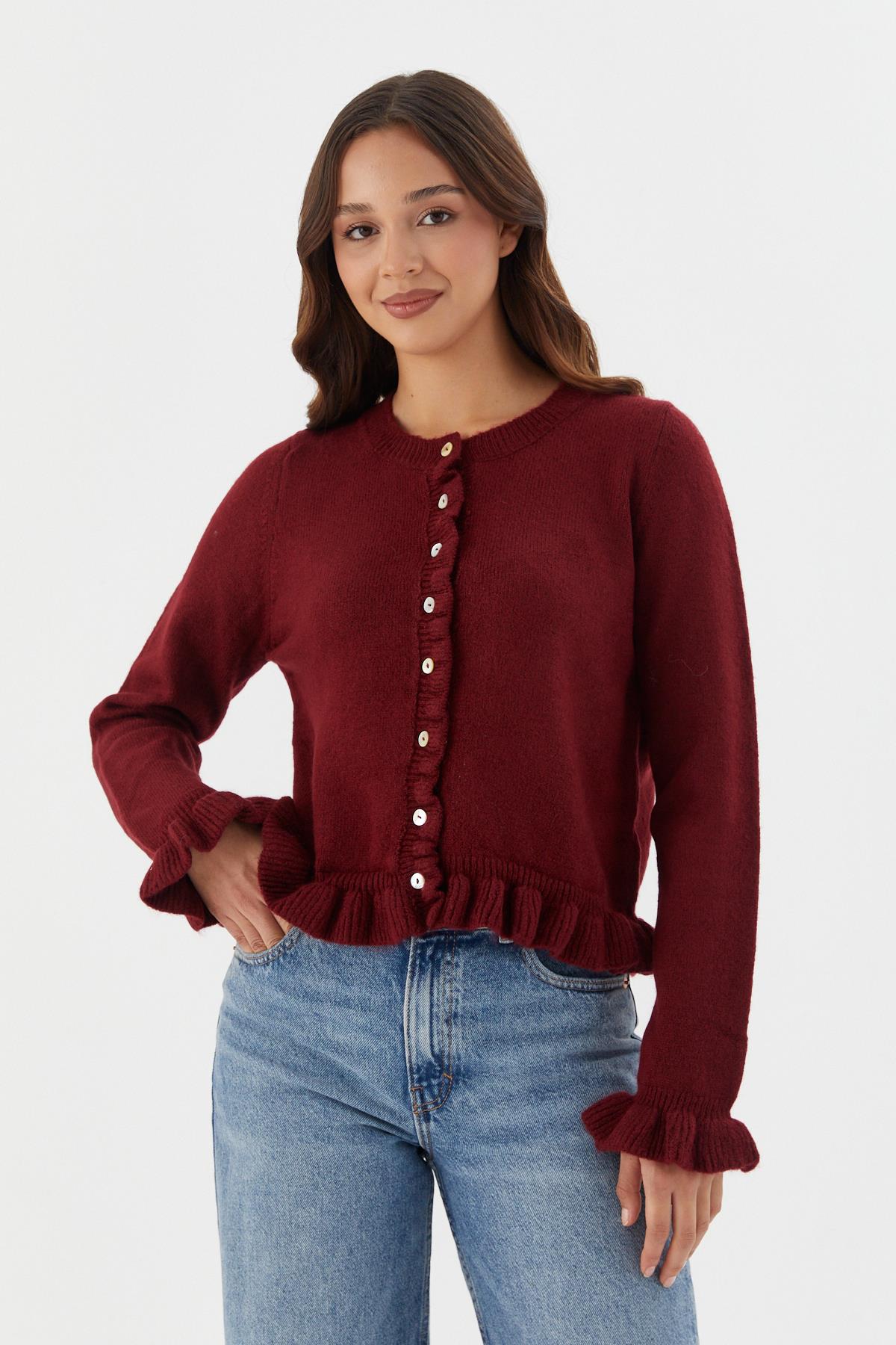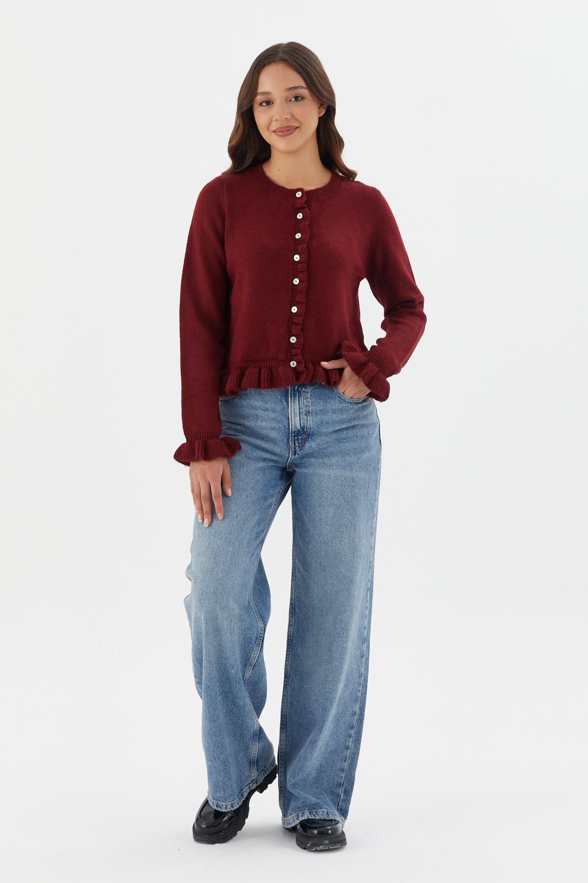 Fırfır Detaylı Hırka BORDO (WTRI009P0028_488)