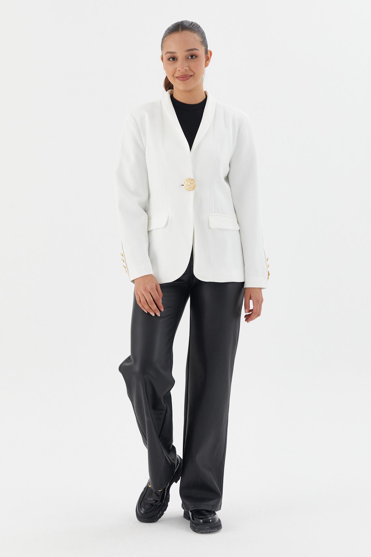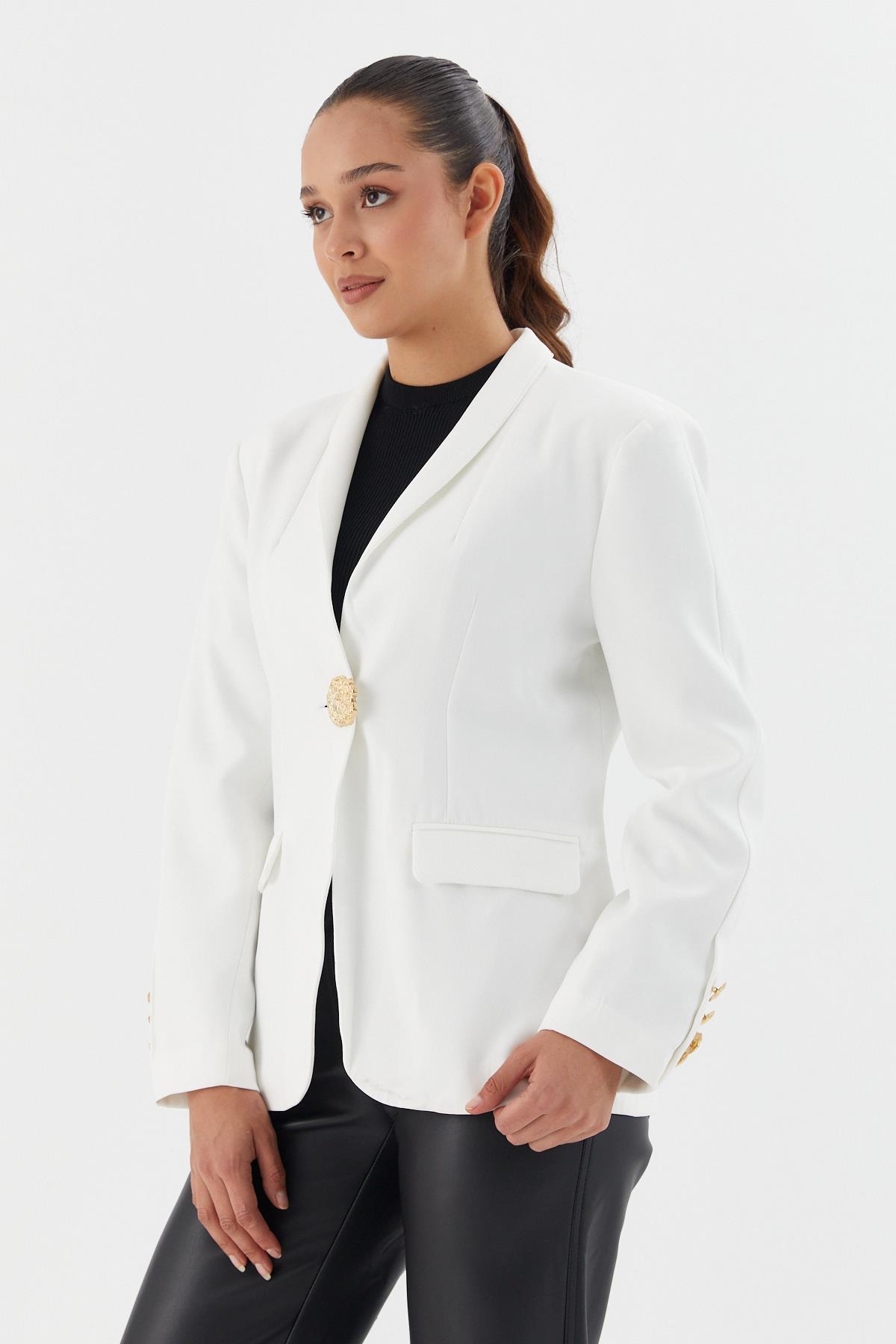 Gold Aksesuar Düğmeli Ceket BEYAZ (WWOV007P0018_424)