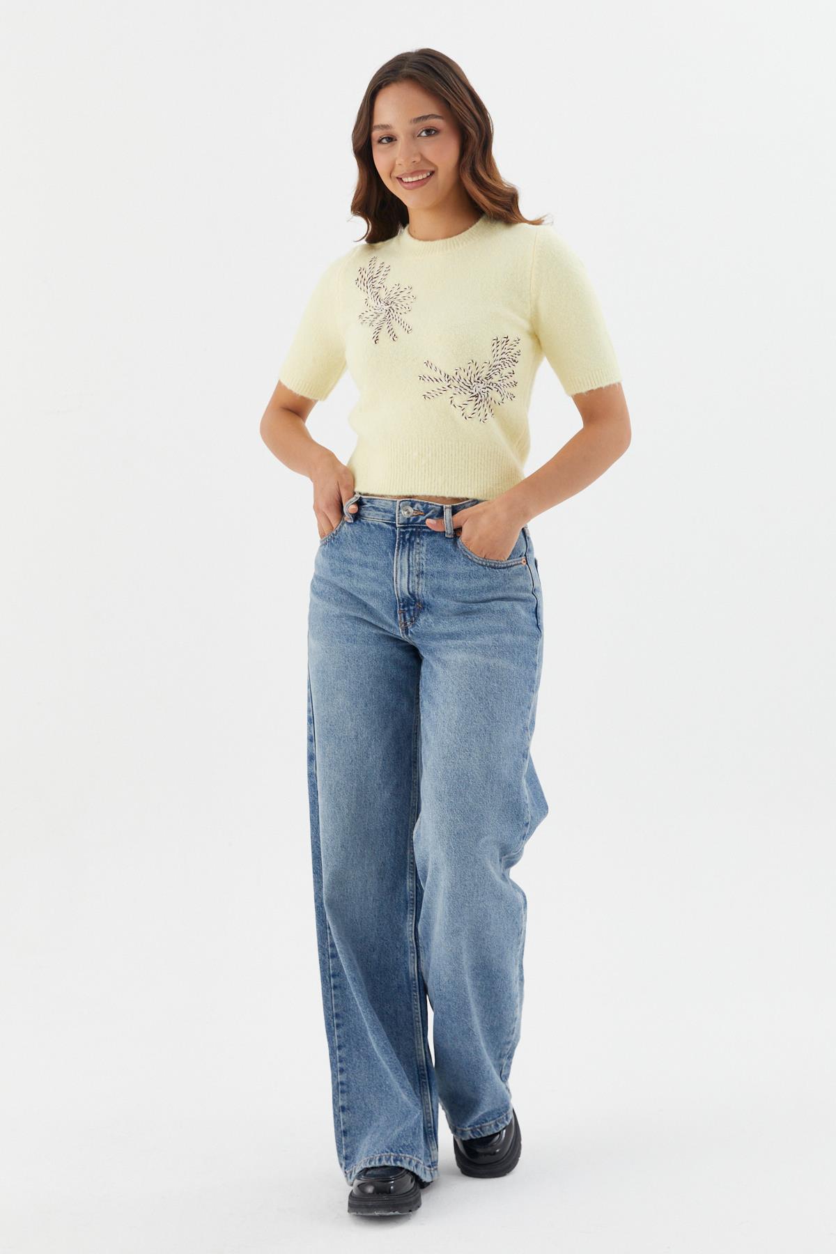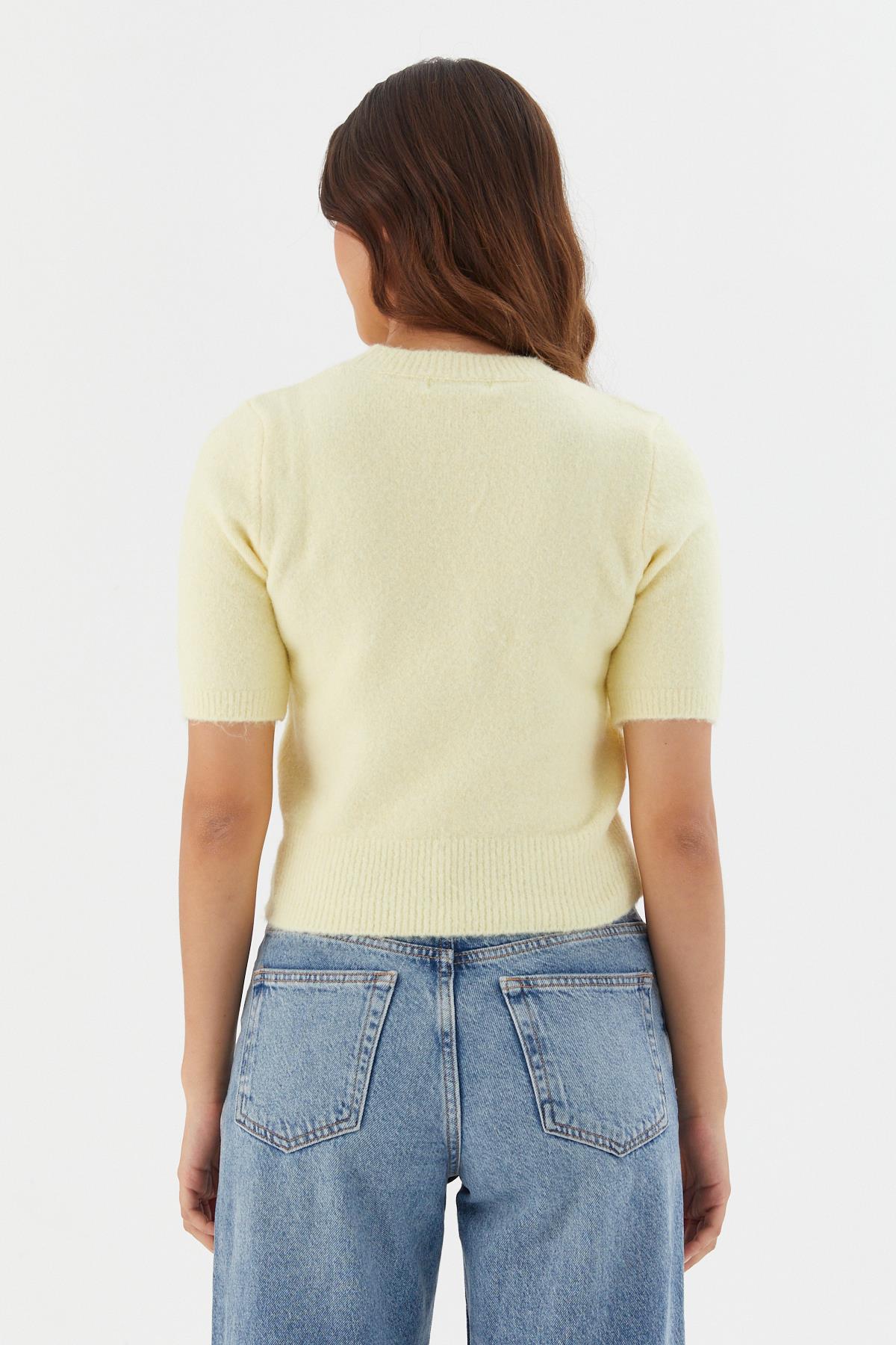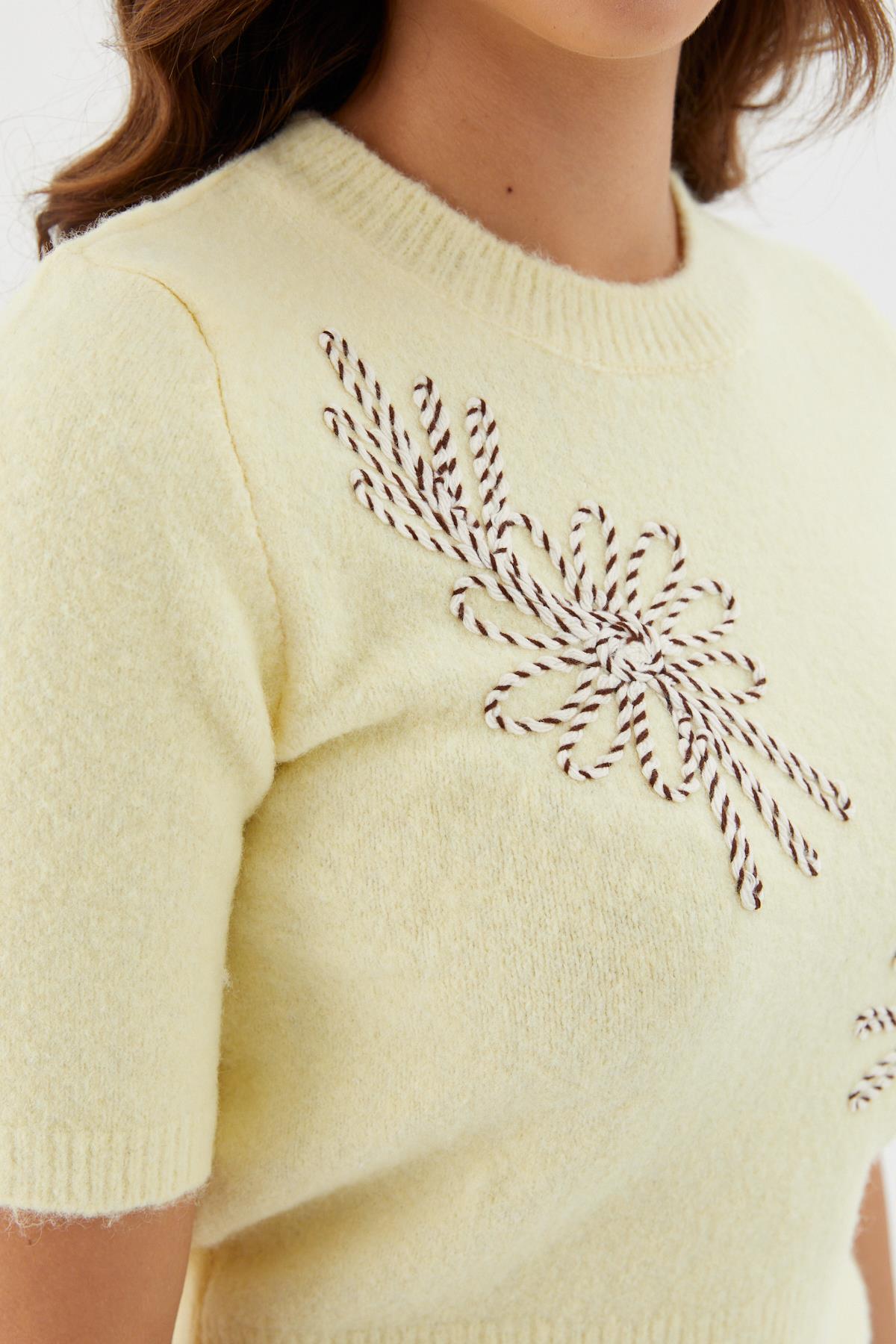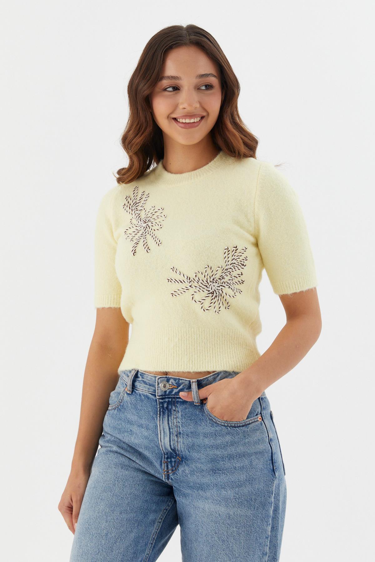 İşlemeli Kısa Kol Triko Bluz SARI (WTRI012P0077_699)