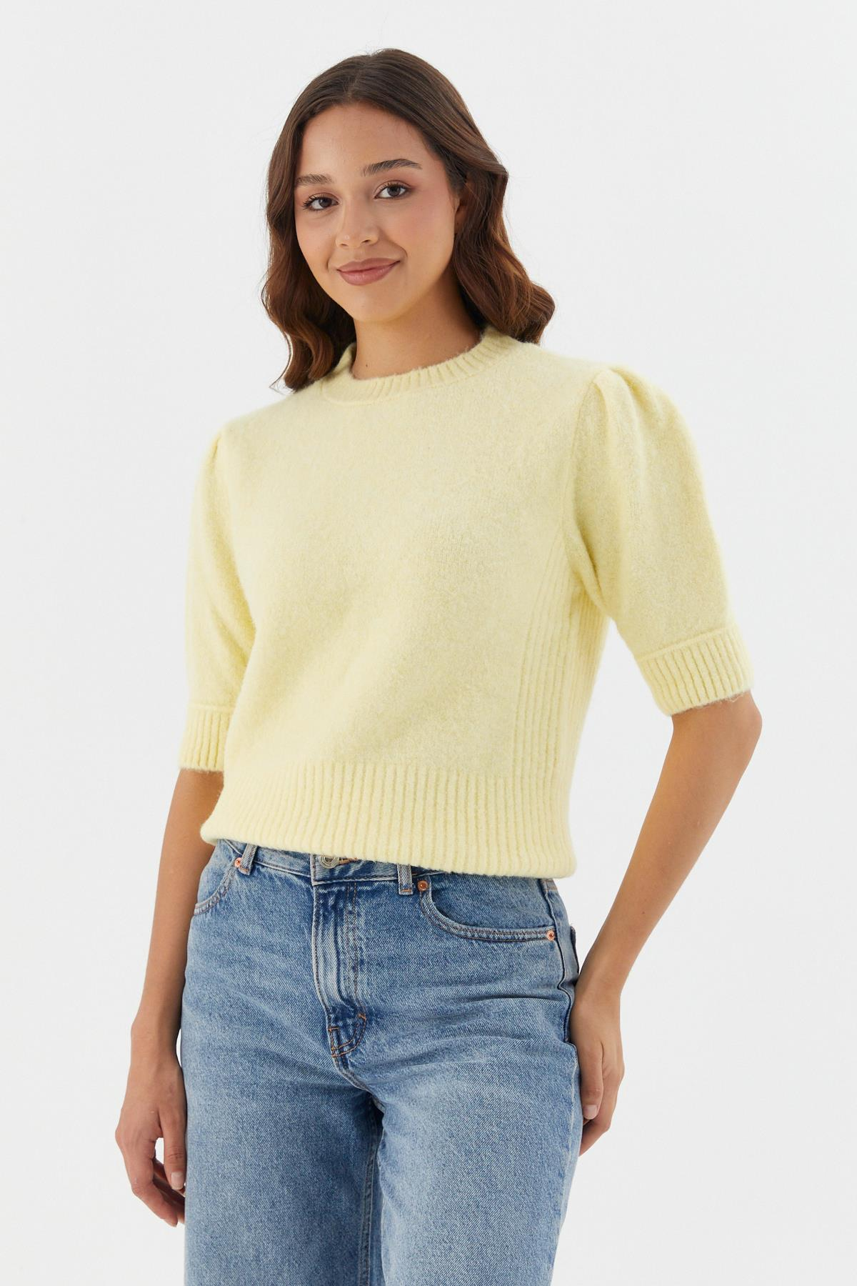 Kısa Balon Kol Triko Bluz SARI (WTRI012P0074_699)