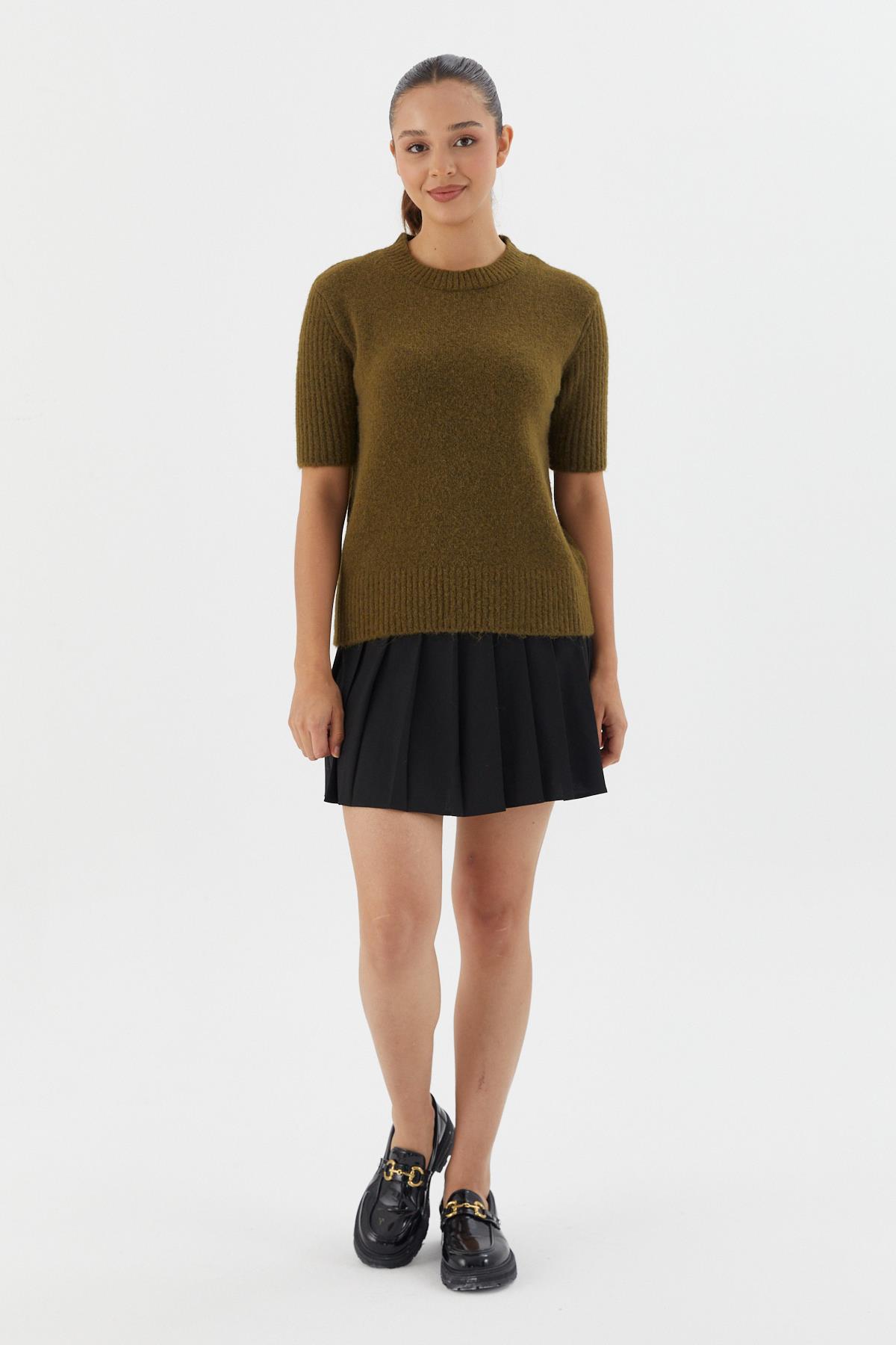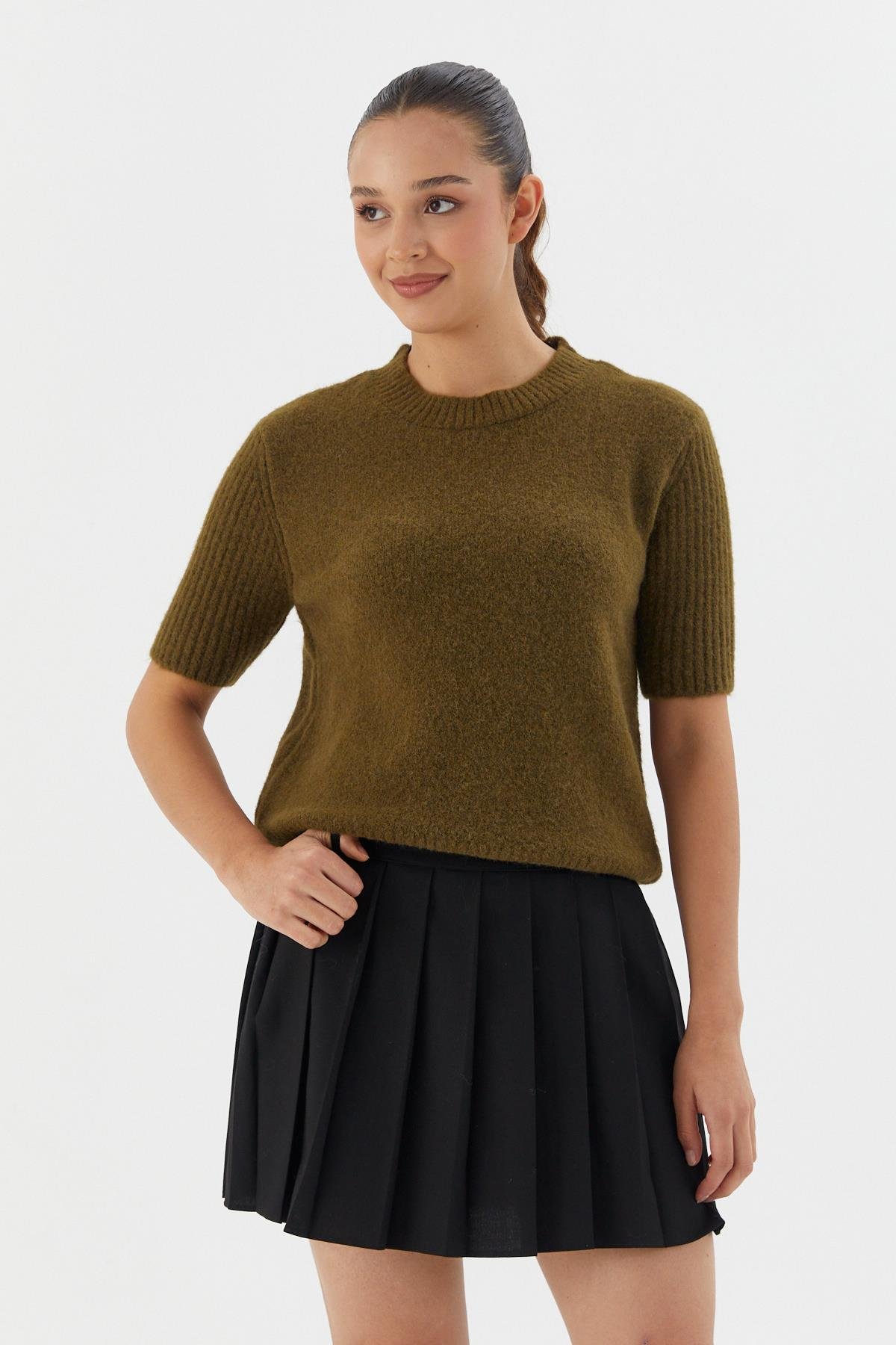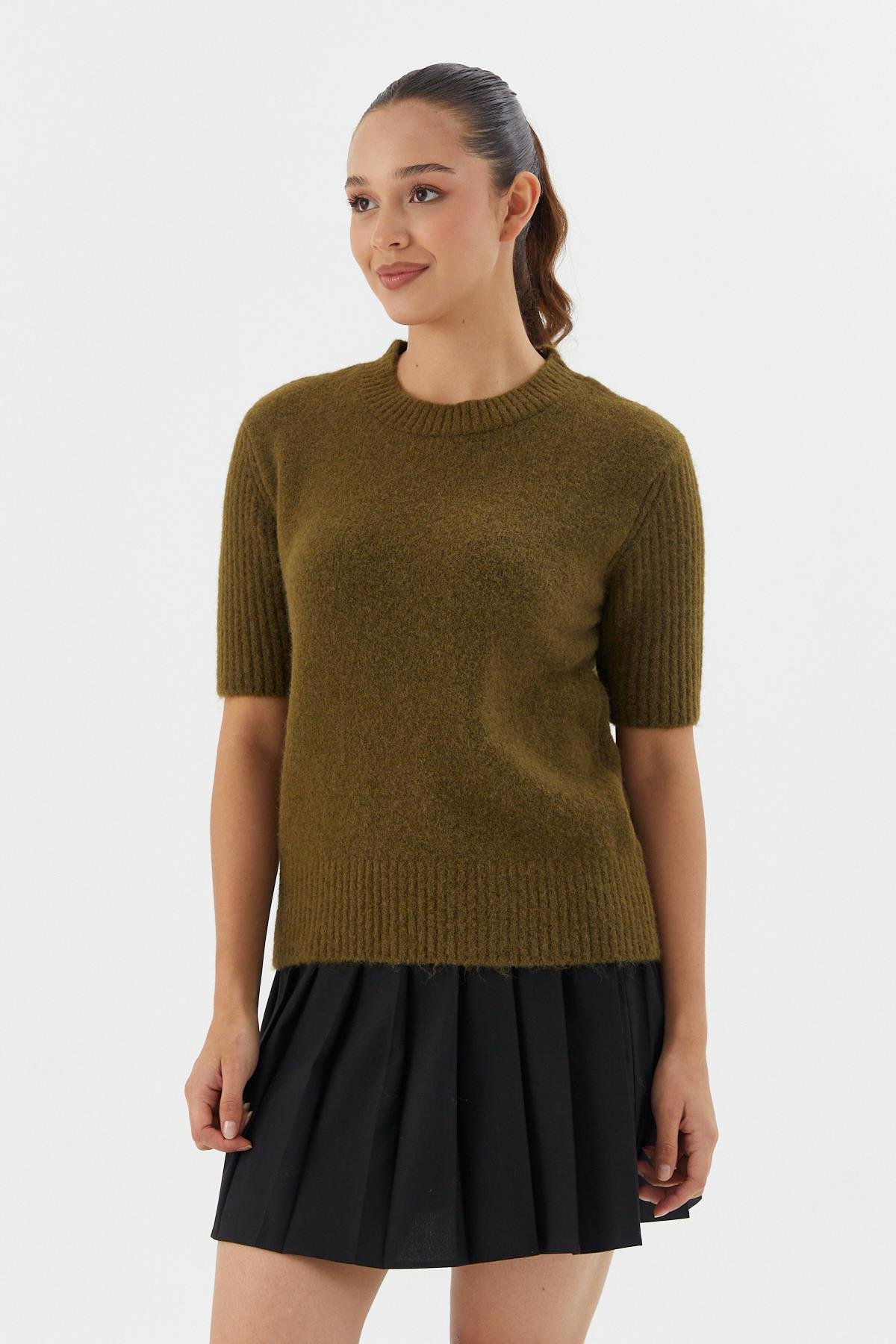 Kısa Kol Kazak Bluz HAKI (WTRI012P0078_726)