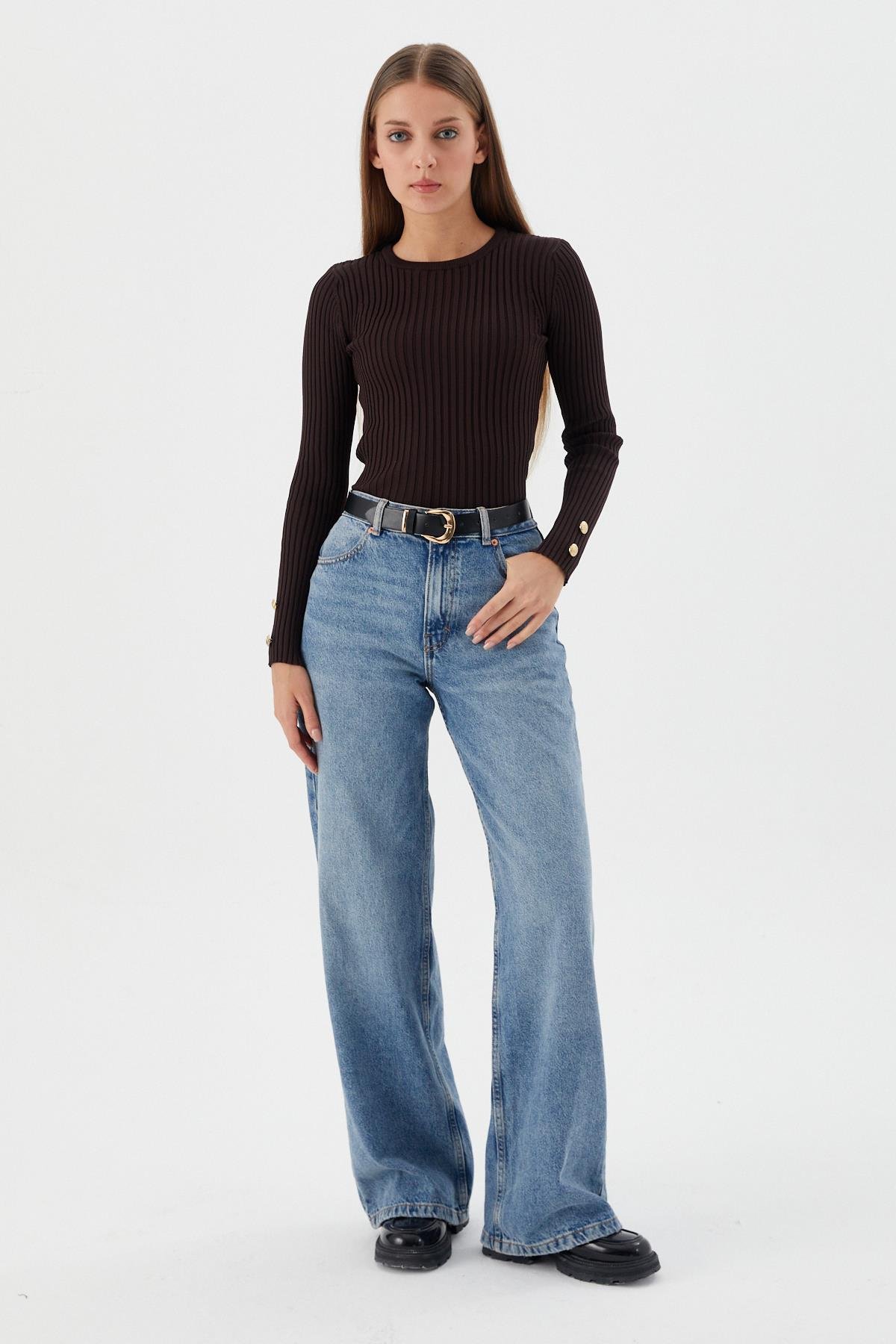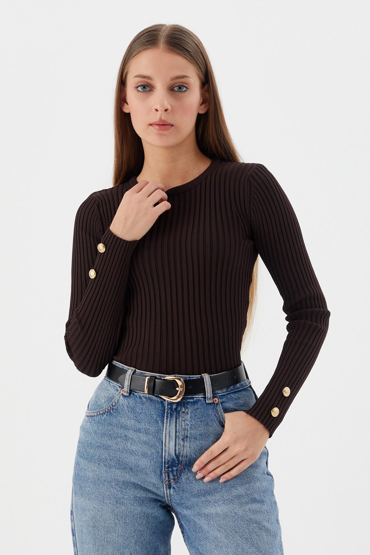 Kolları Düğmeli Fitilli Body KAHVE (WTRI012P0064_454)