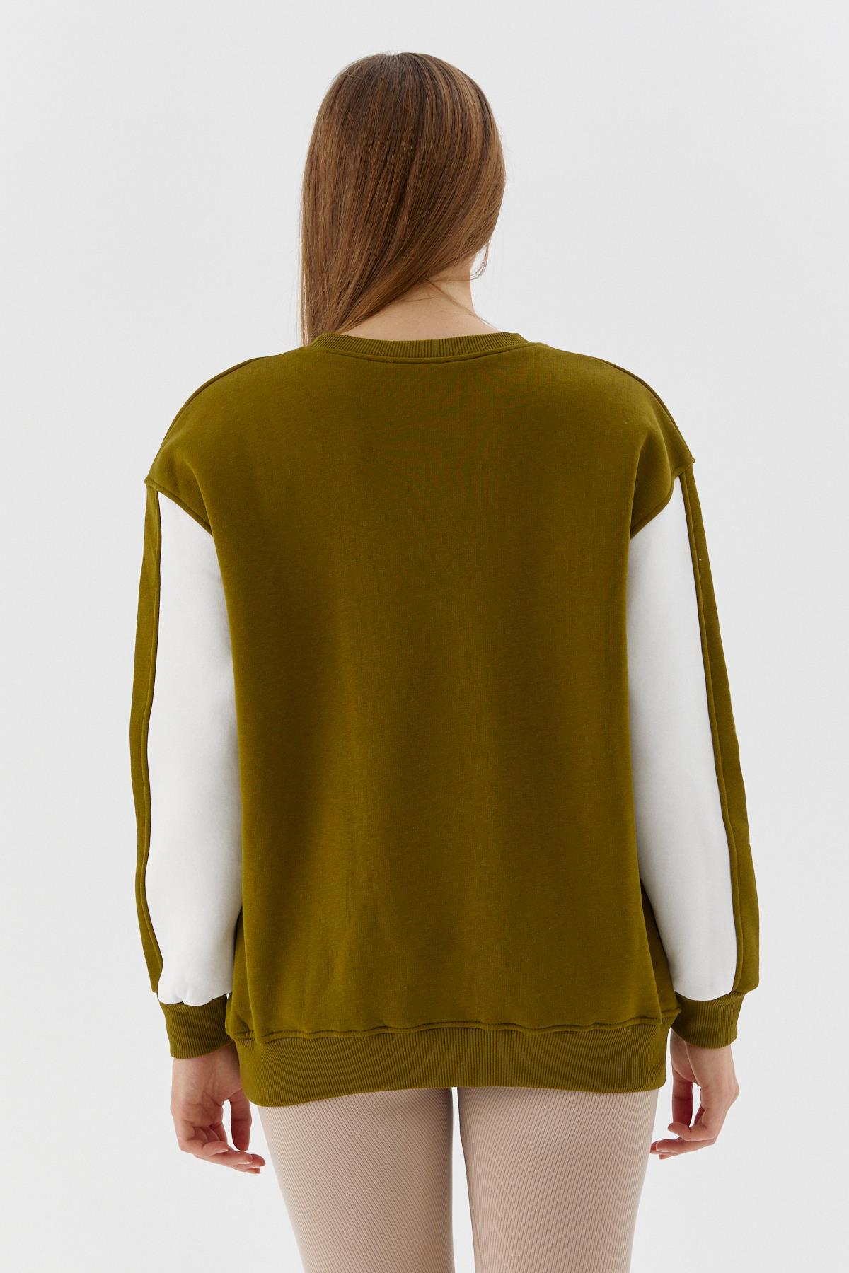 Kolları Şerit Detaylı Oversize Sweatshirt OLIVE (WNOW010P0034_950)