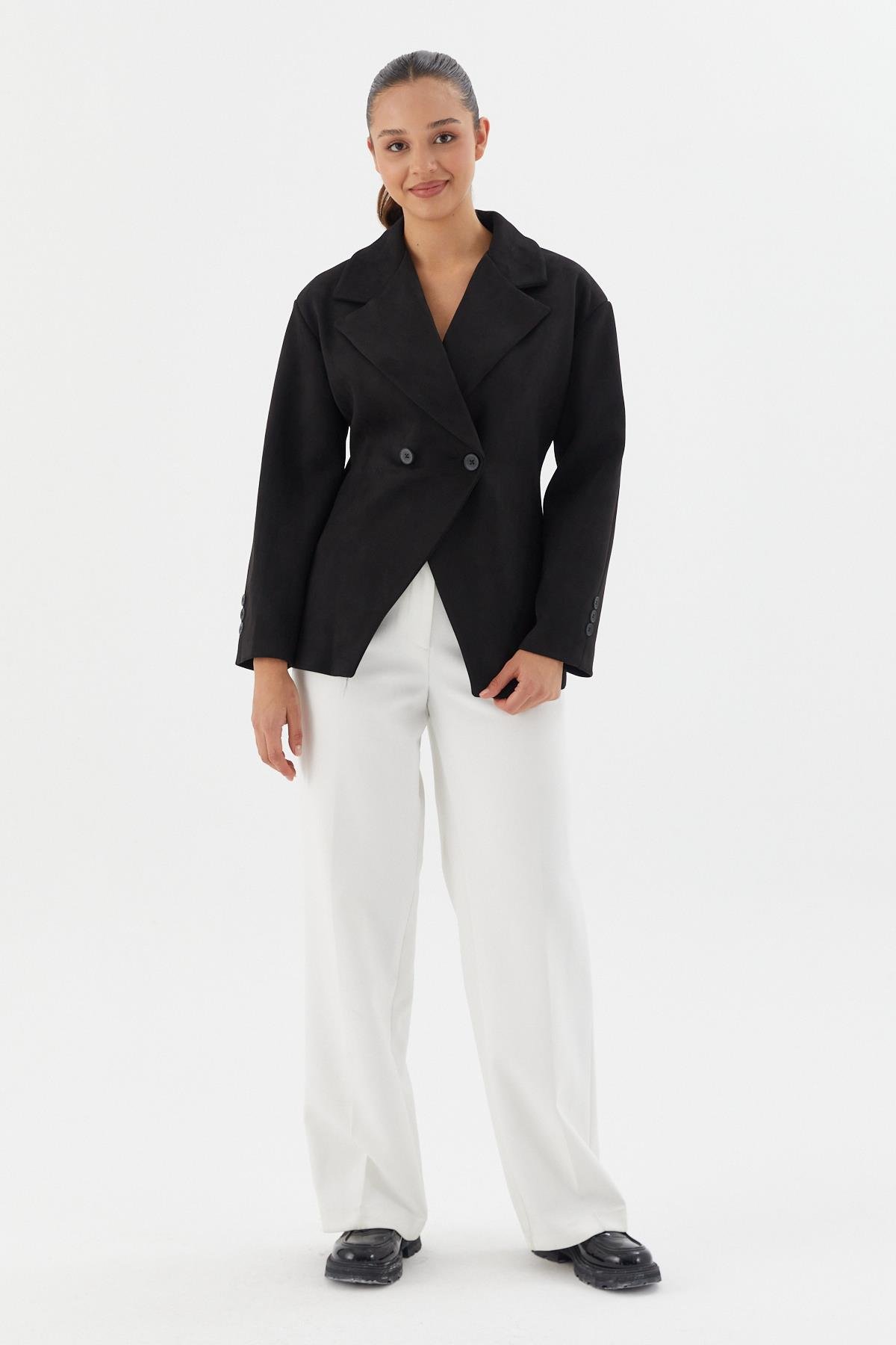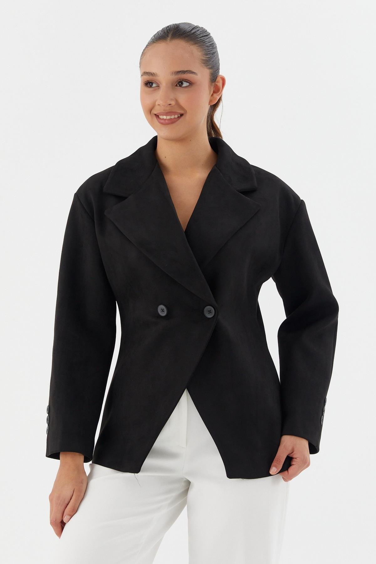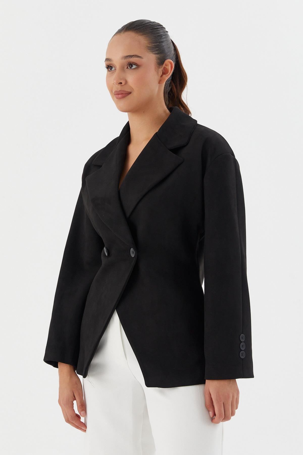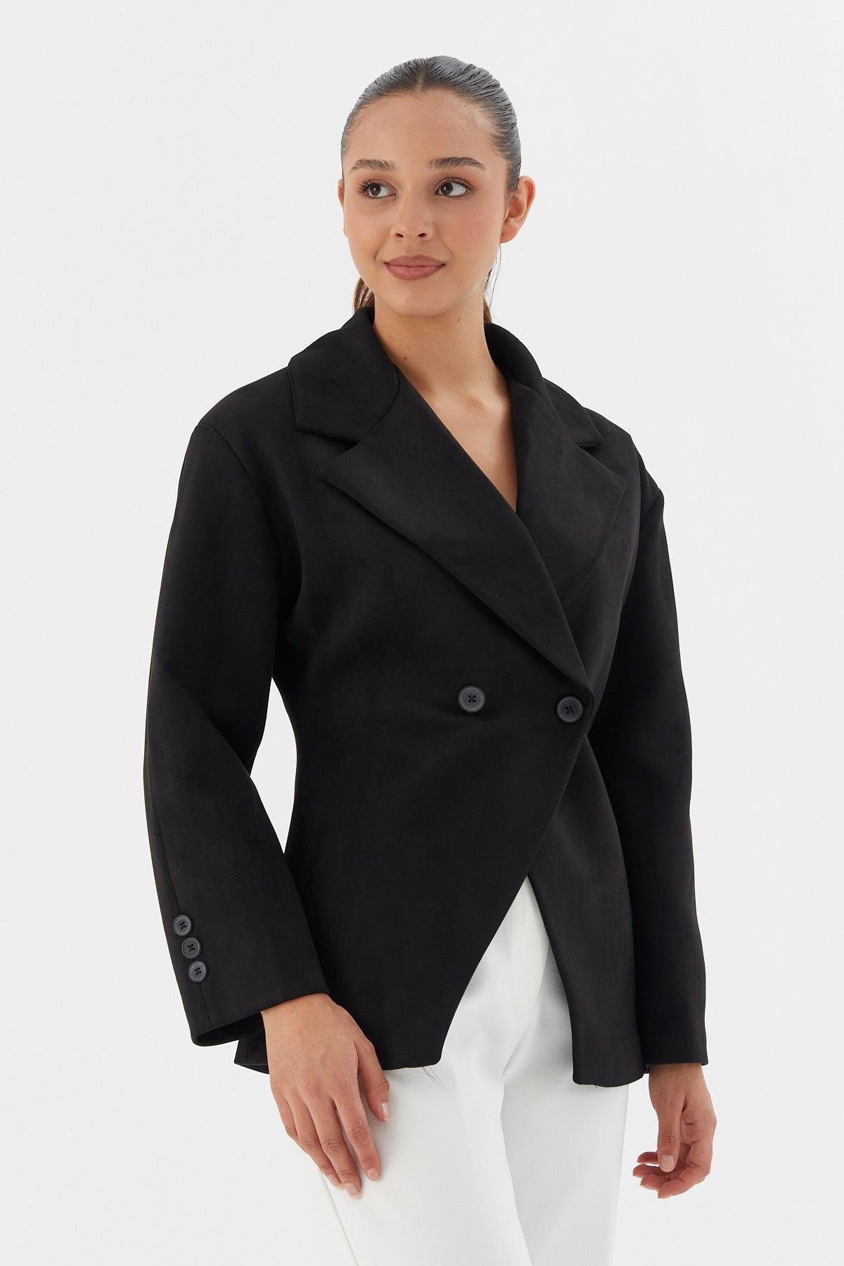 Kruvaze Kapama Süet Ceket SIYAH (WWOV007P0019_477)