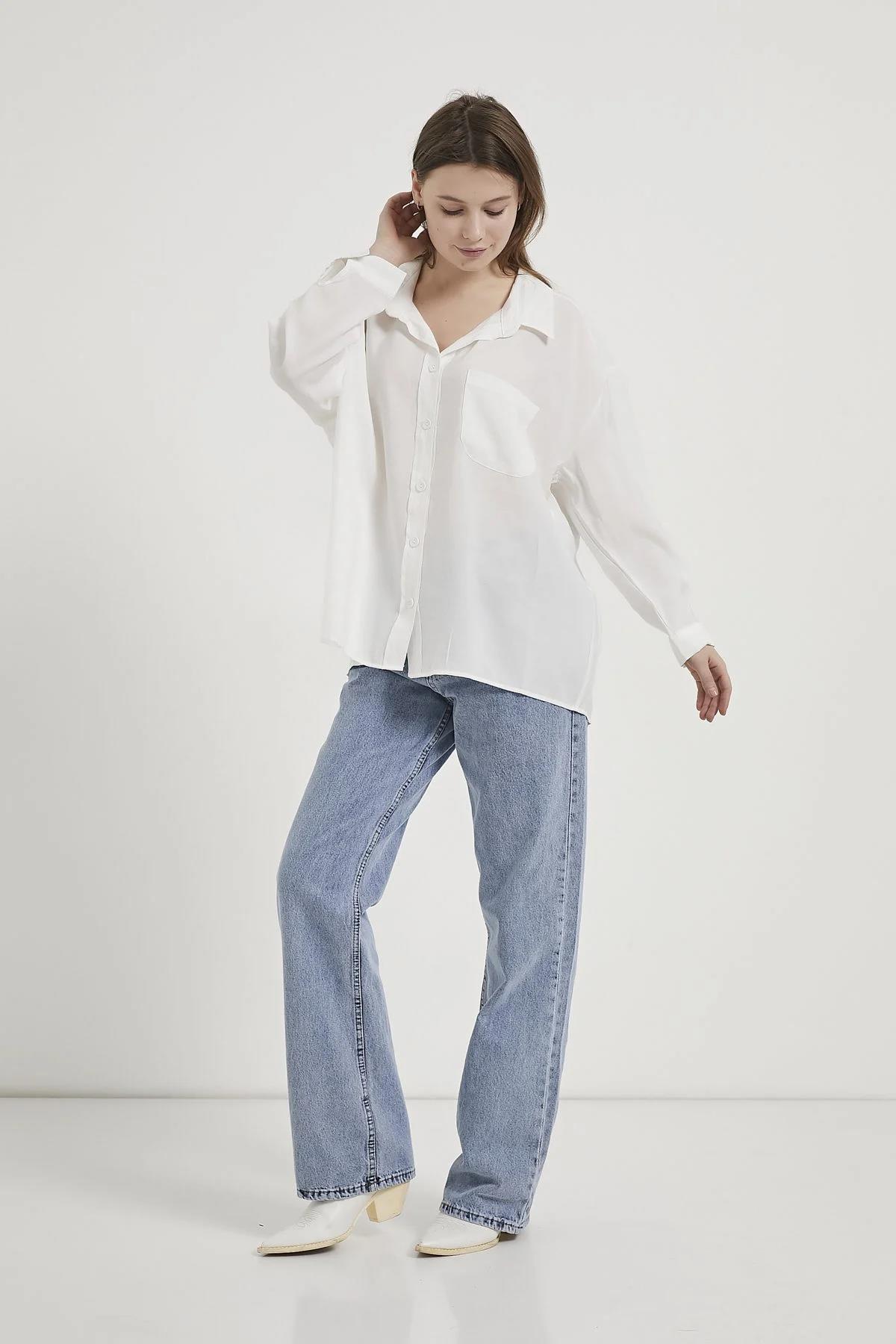 Modal Kumaş Açık Yaka Oversize Gömlek EKRU (WWOV004S0105_919)