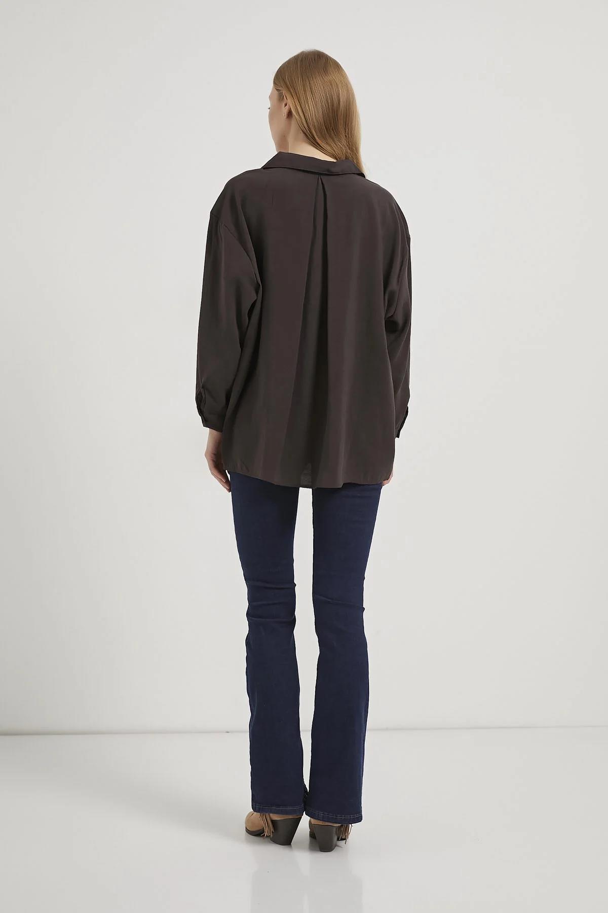 Modal Kumaş Açık Yaka Oversize Gömlek KAHVE (WWOV004S0105_454)