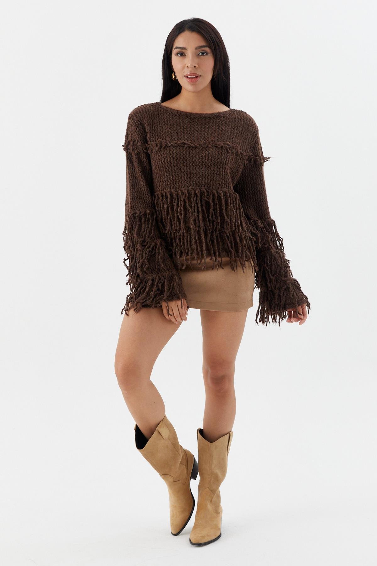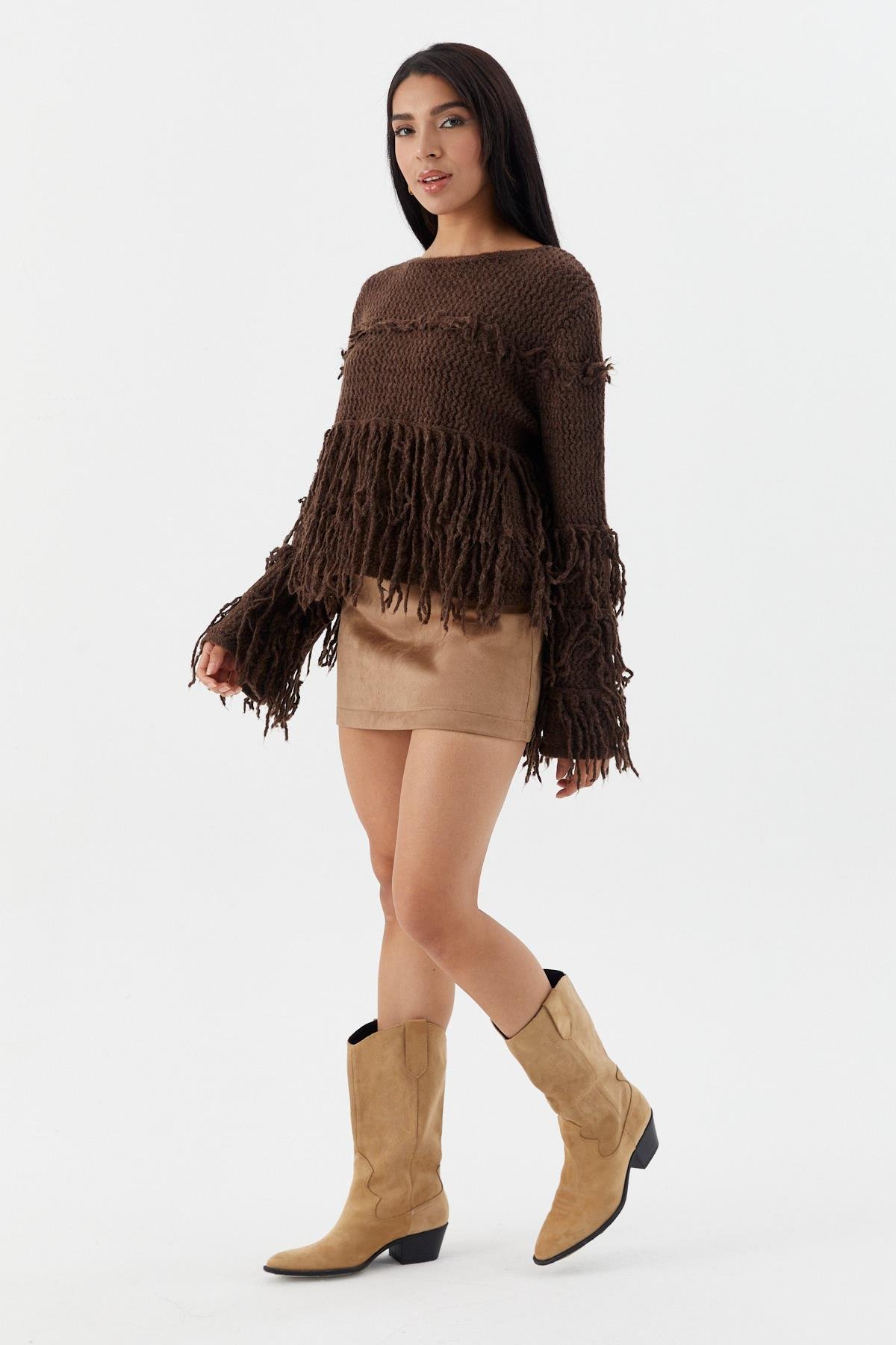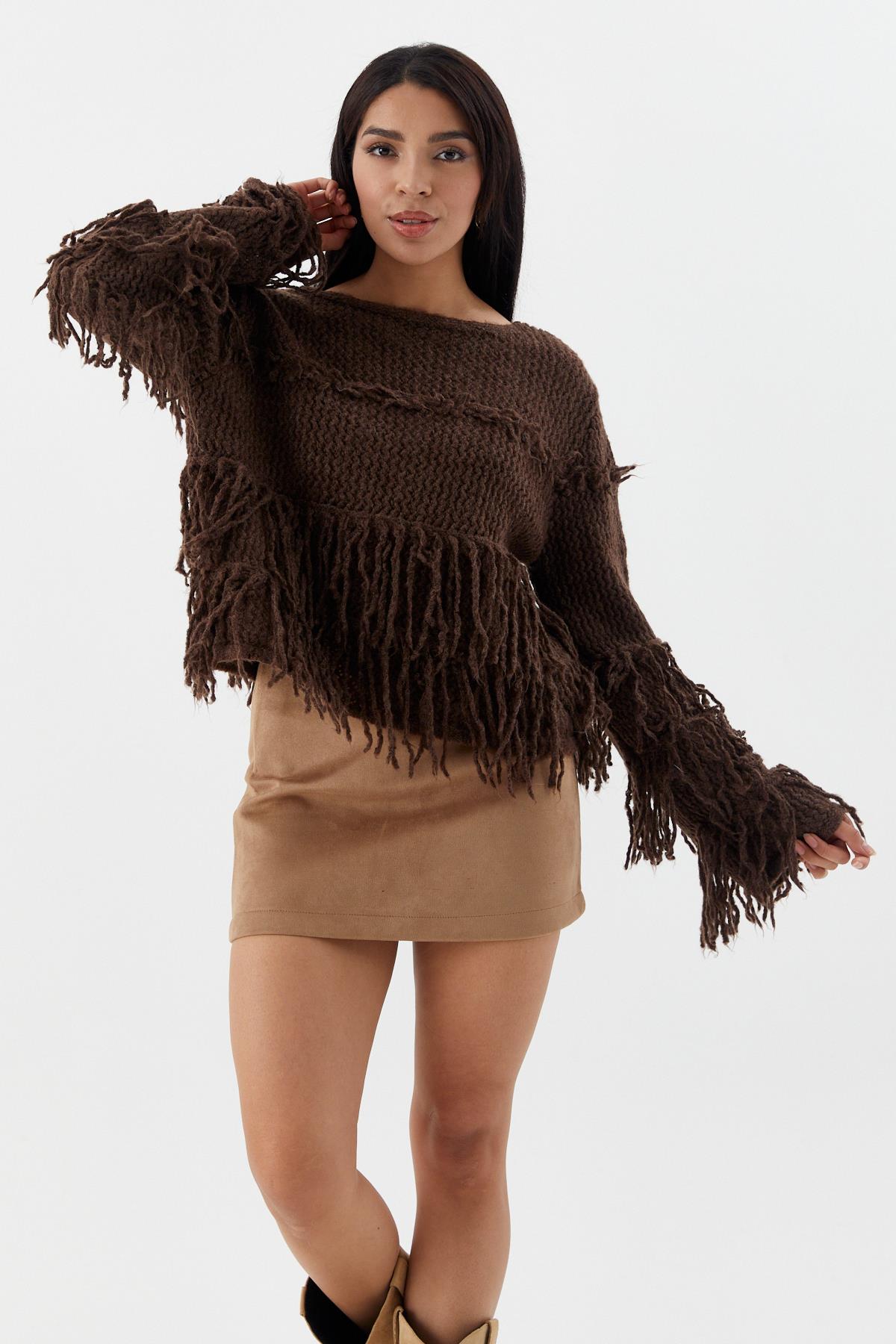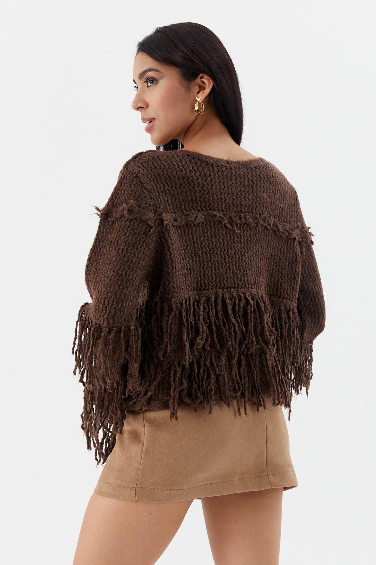 Püsküllü Crop Kazak ACI KAHVE (WTRI012P0069_023)