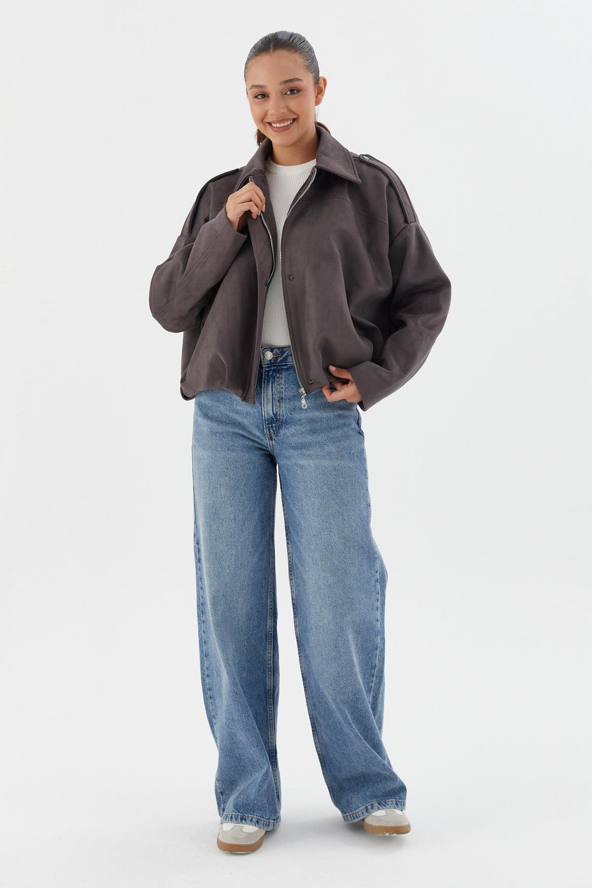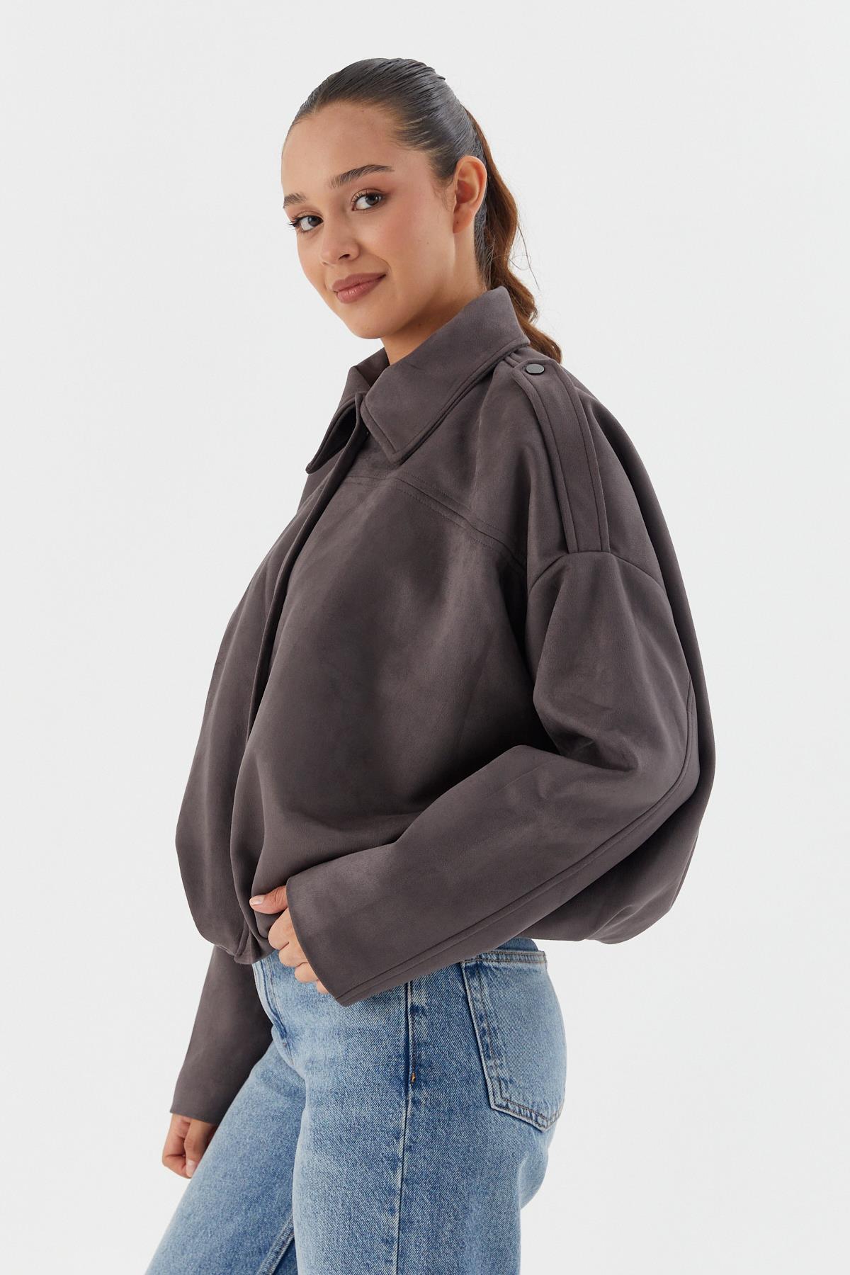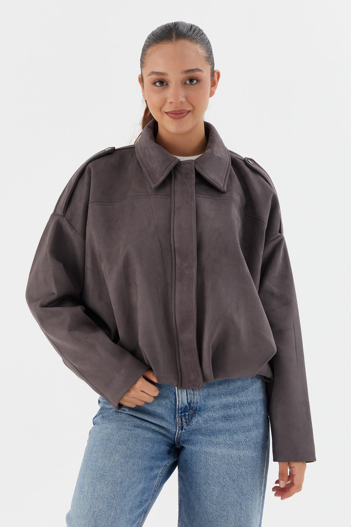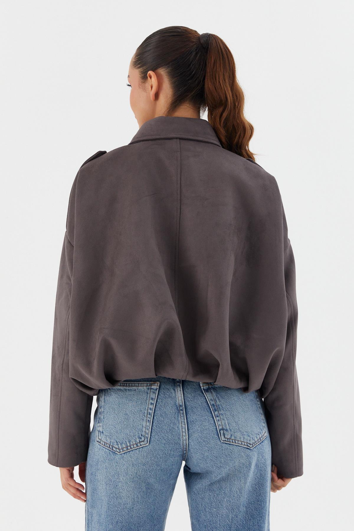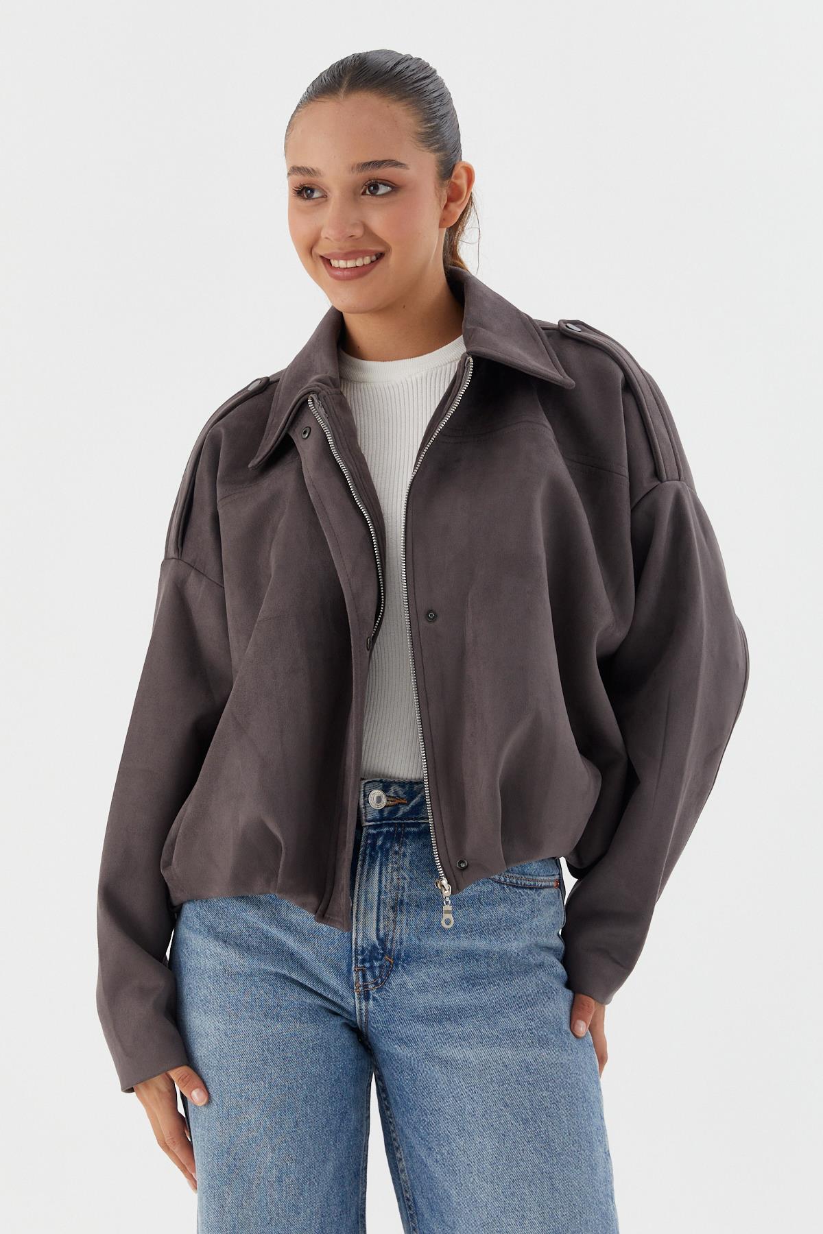 Süet Bomber Ceket GRI (WWOV007P0023_439)