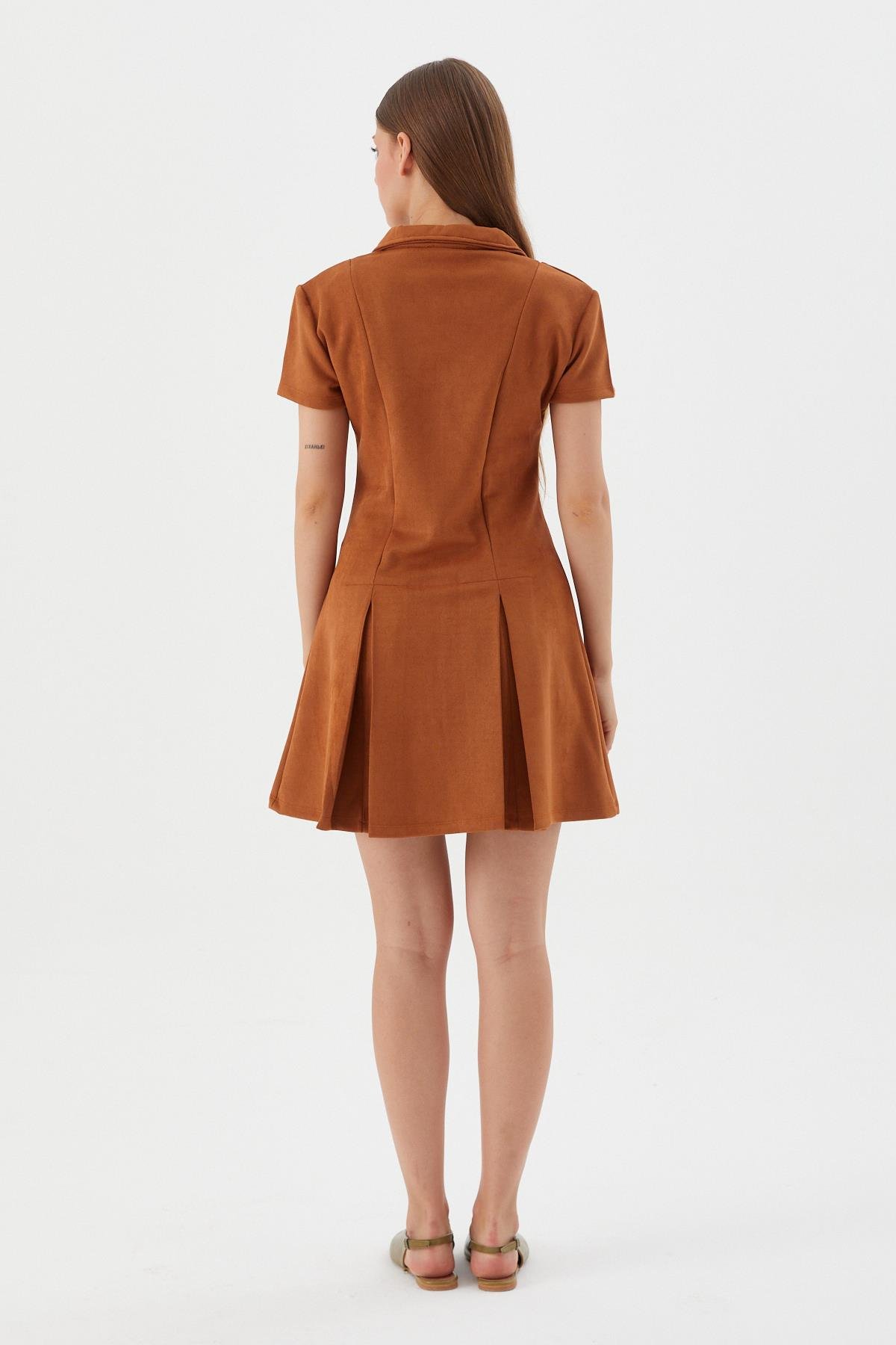 Süet Mini Elbise TABA (WWOV018P0007_963)