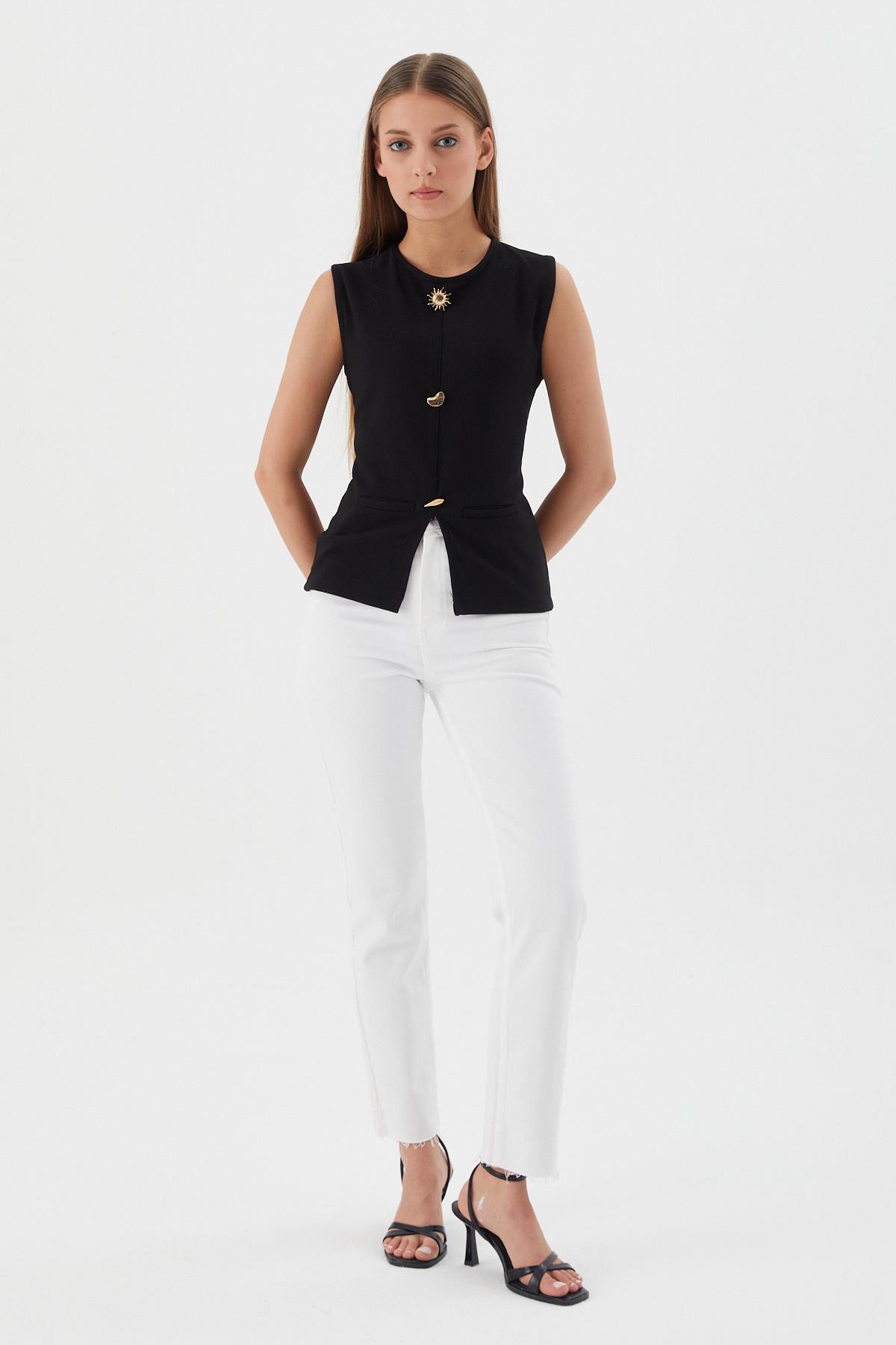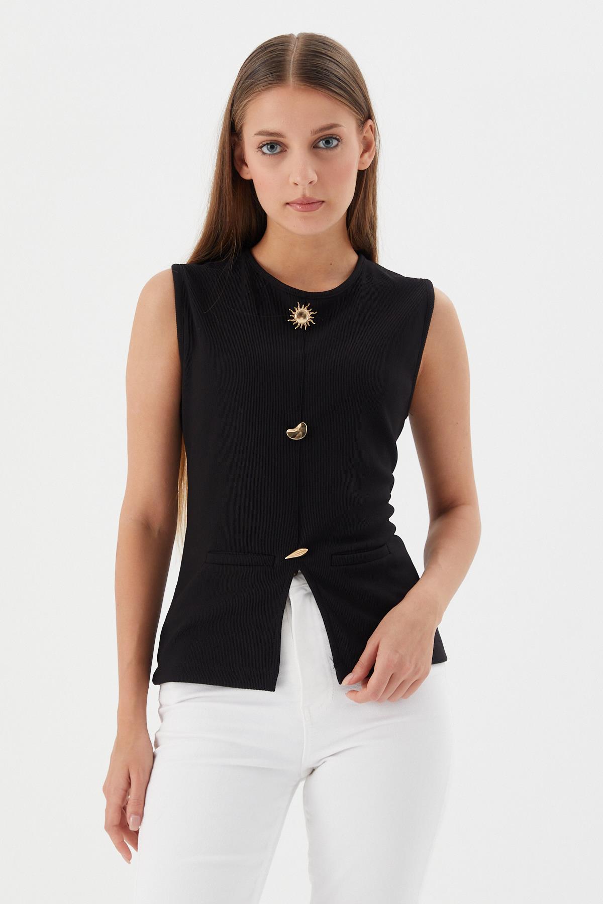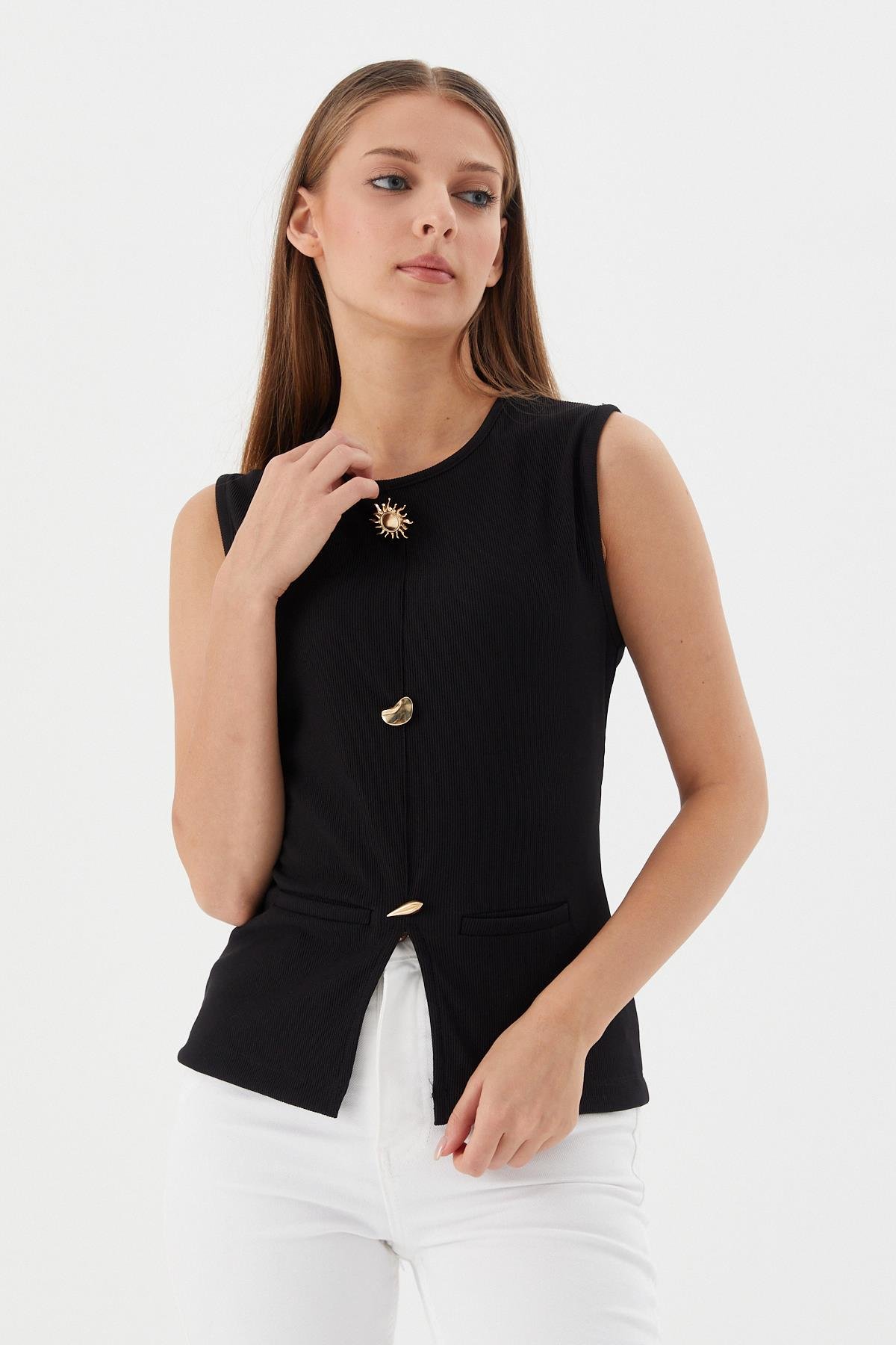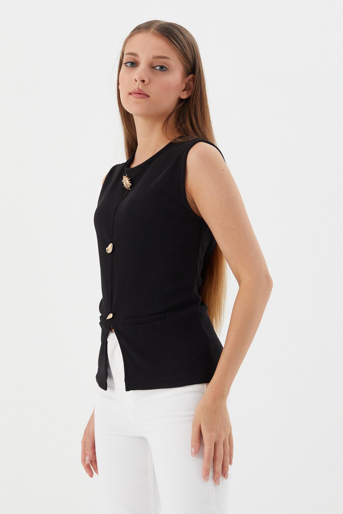 Tasarım Düğmeli Bluz SIYAH (WNOW003P0007_477)