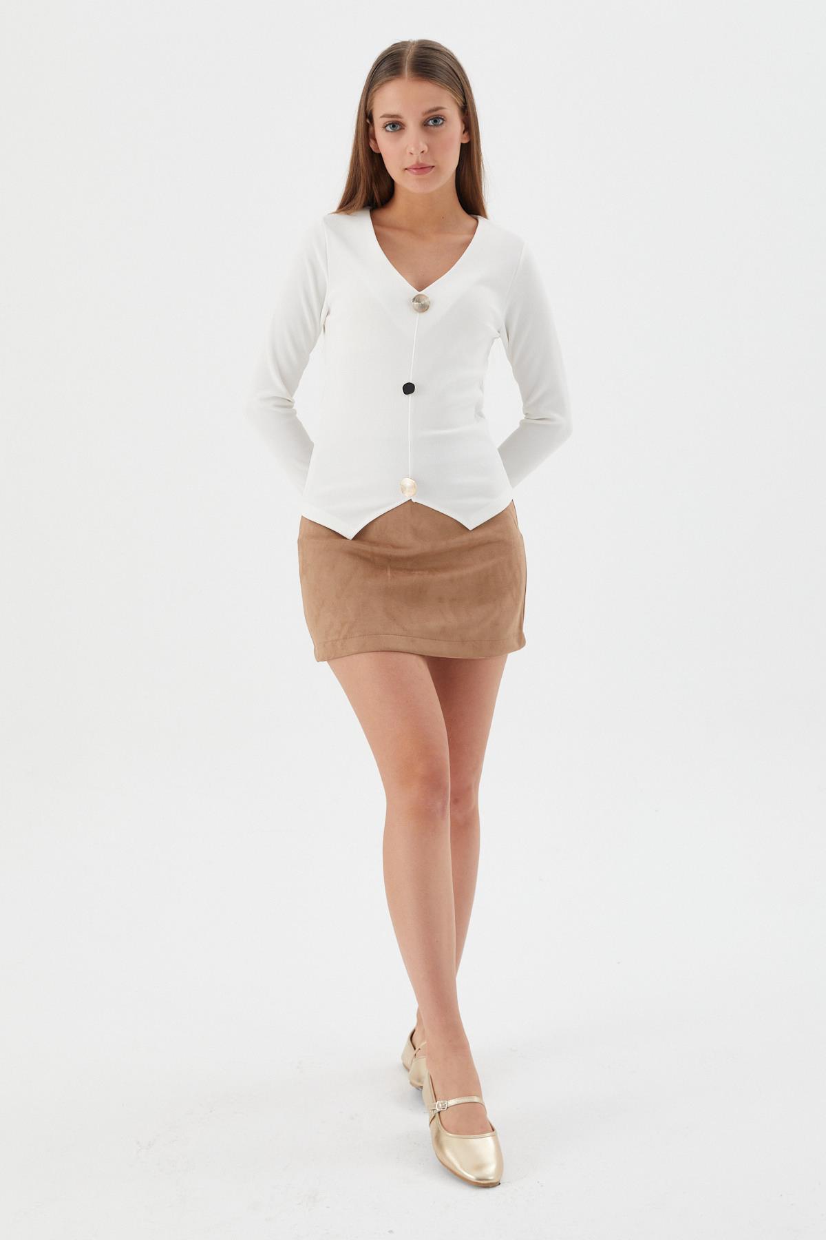 Tasarım Düğmeli V Yaka Body BEYAZ (WNOW003P0008_424)