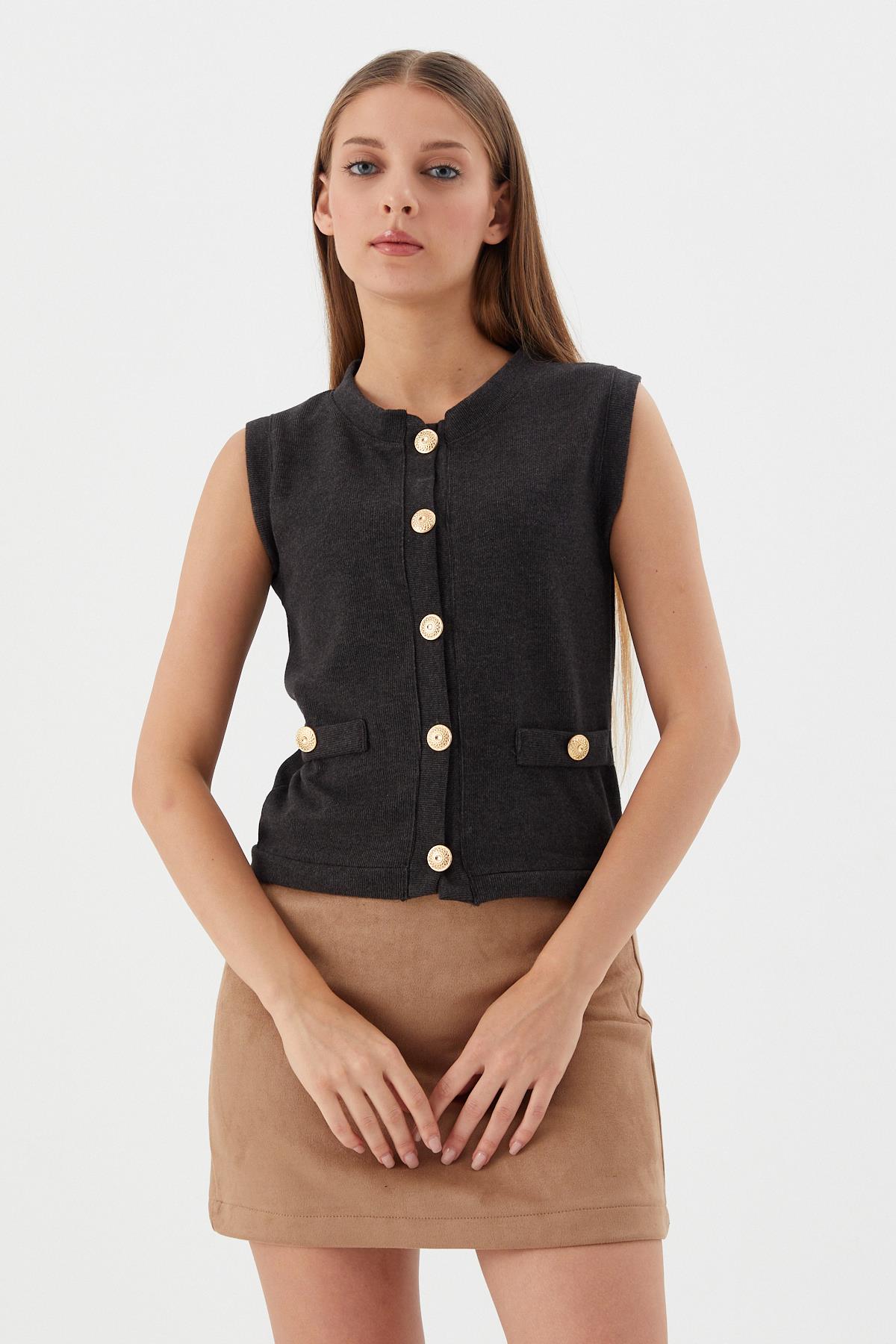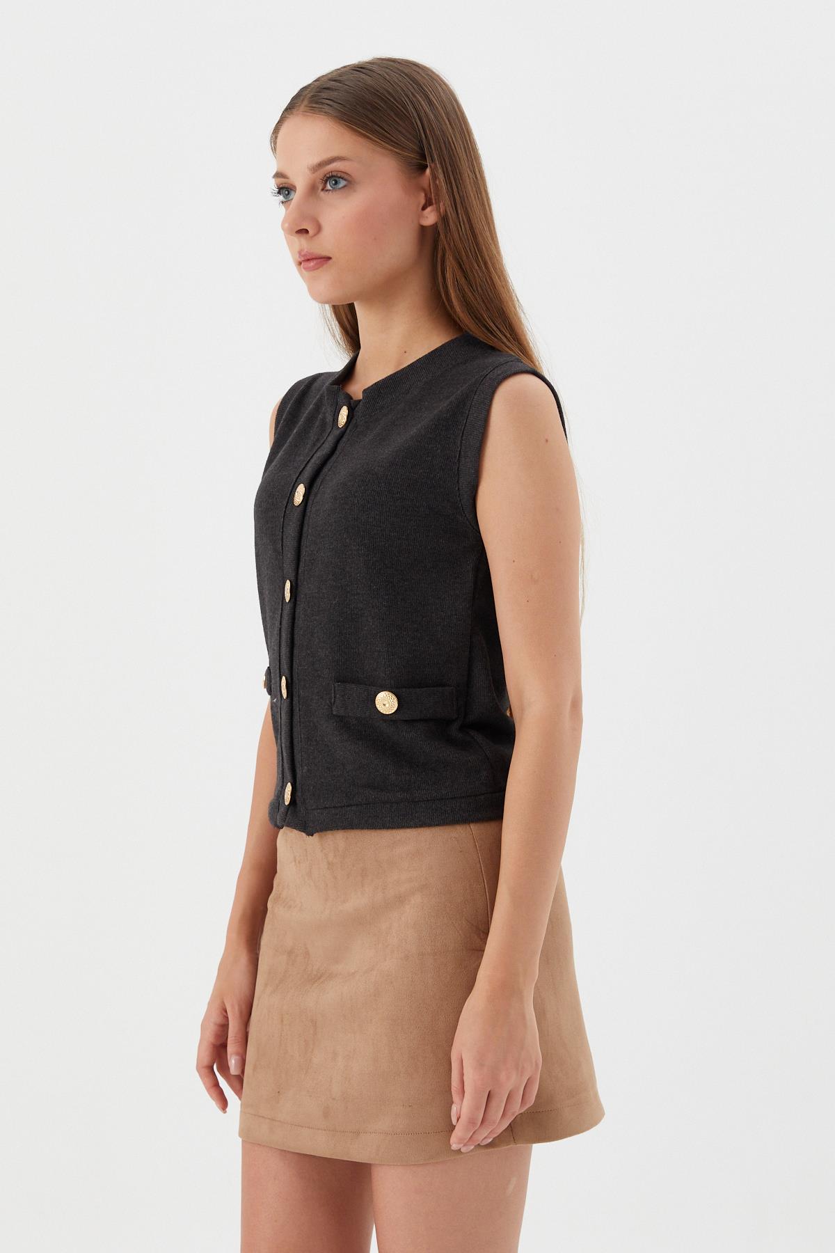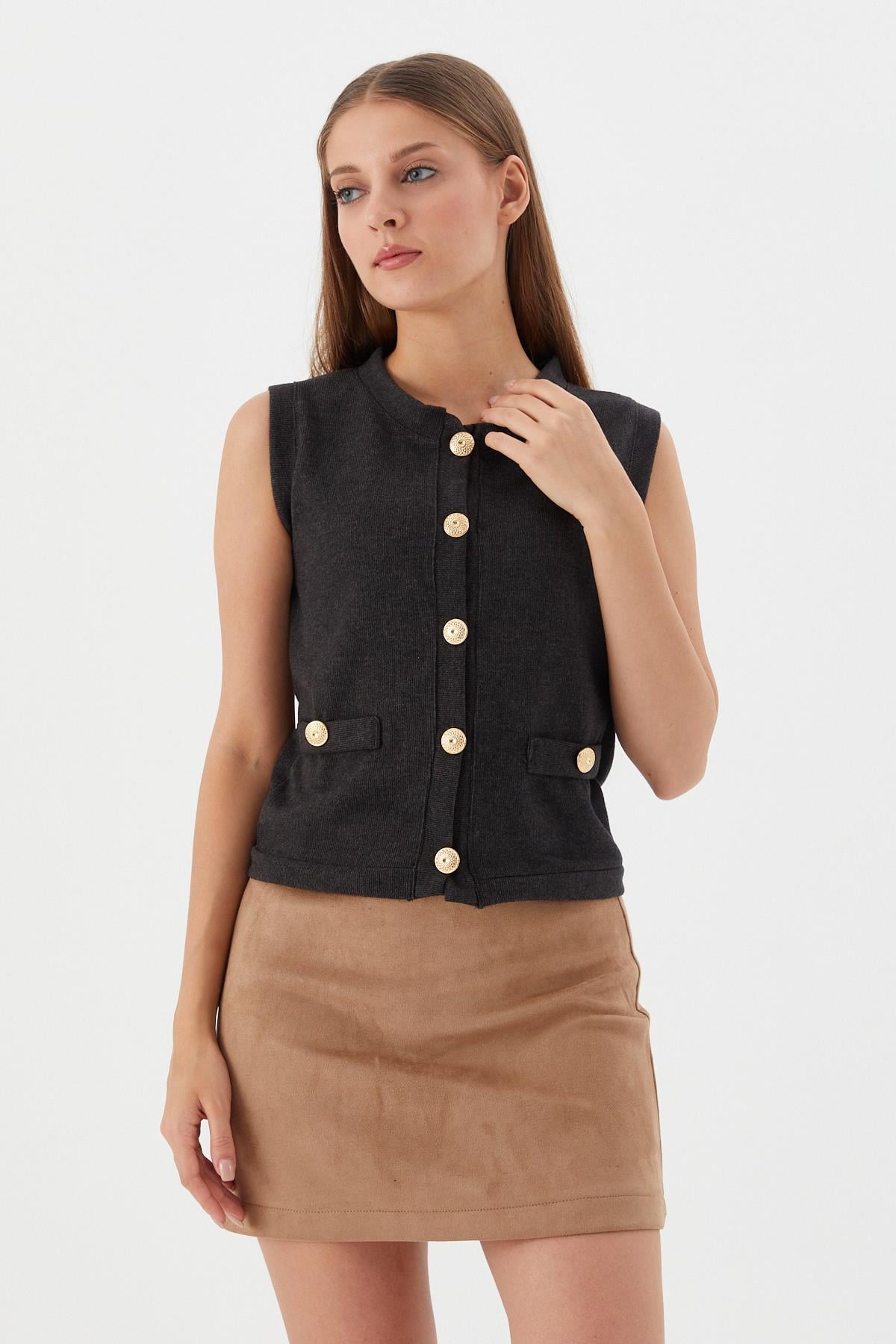 Triko Yelek Bluz ANTRASIT Triko Yelek Bluz VIZON