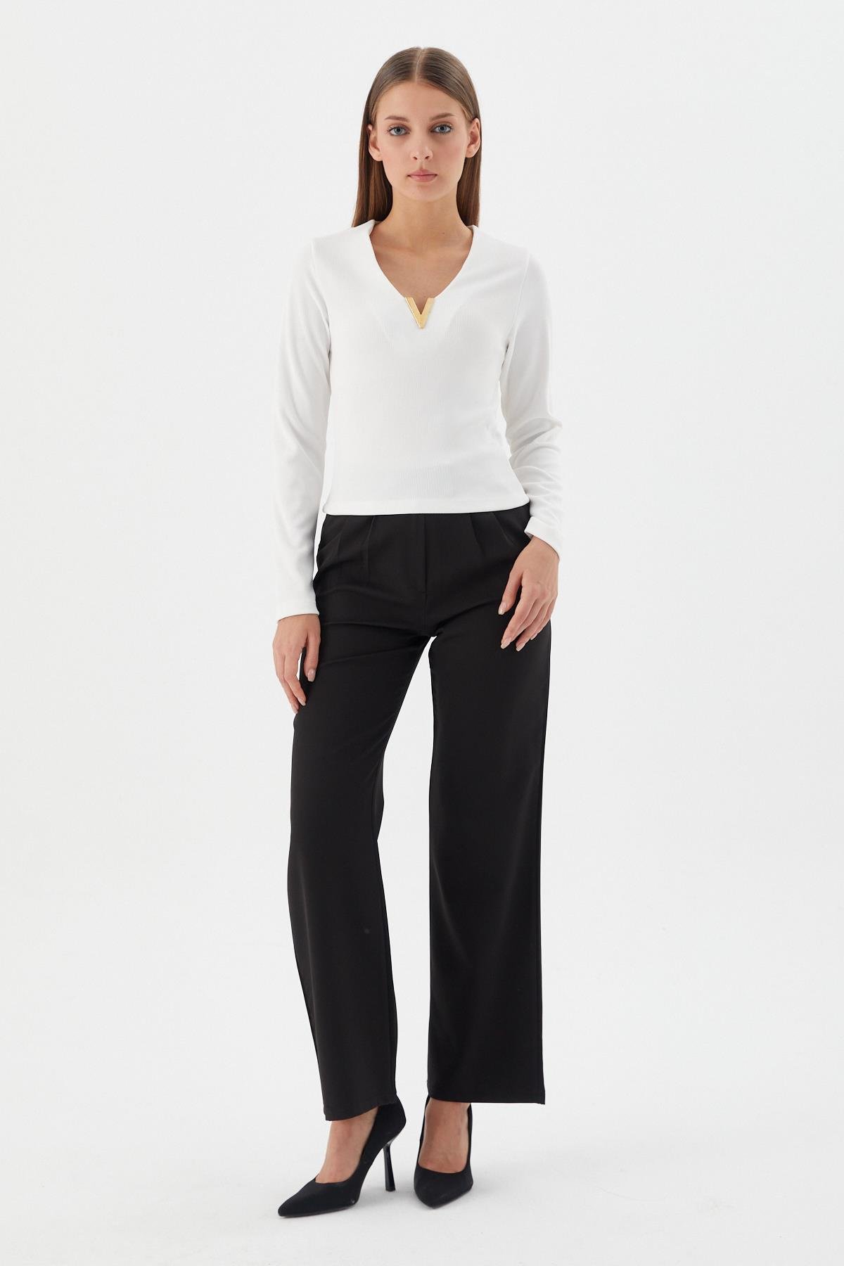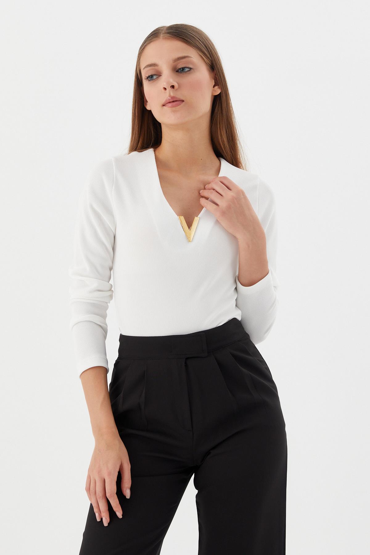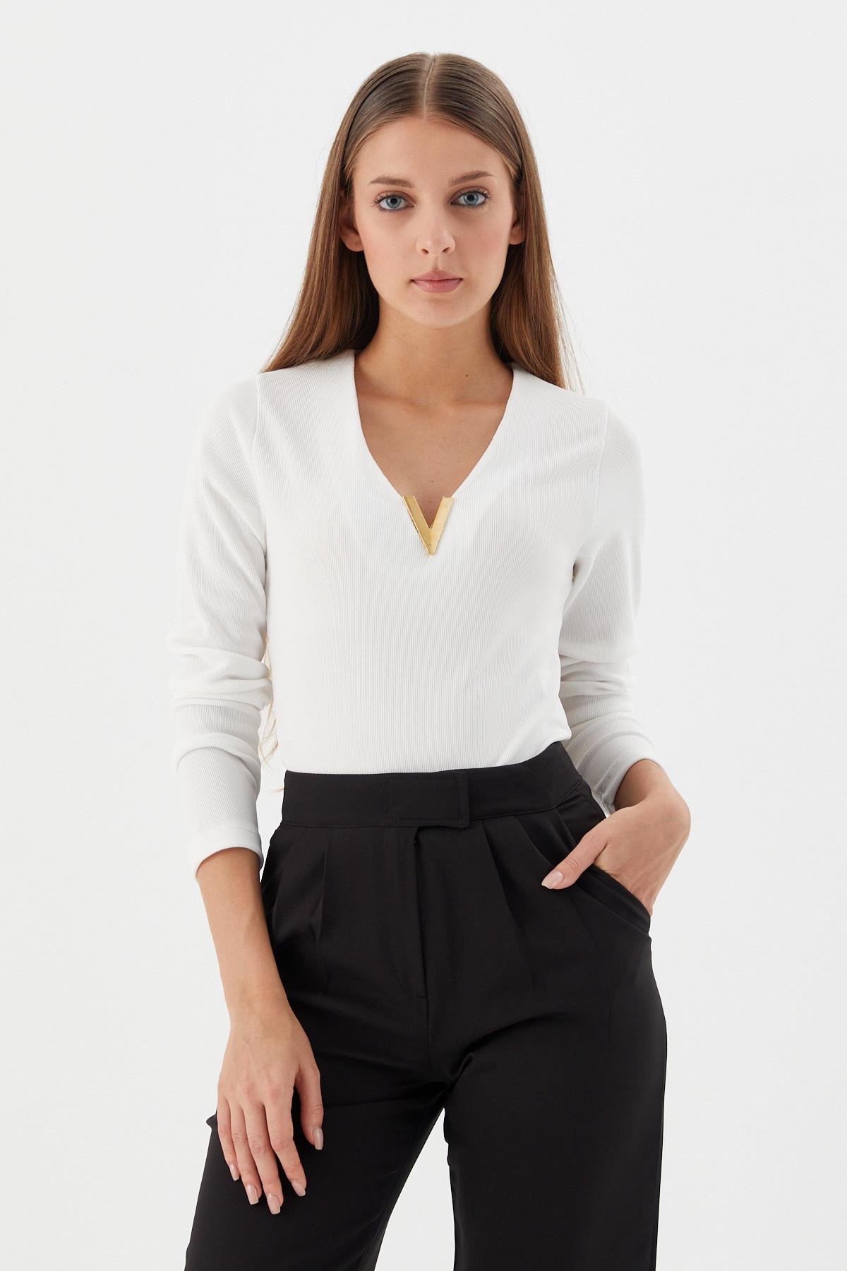 V Yaka Bluz BEYAZ (WNOW003P0006_424)