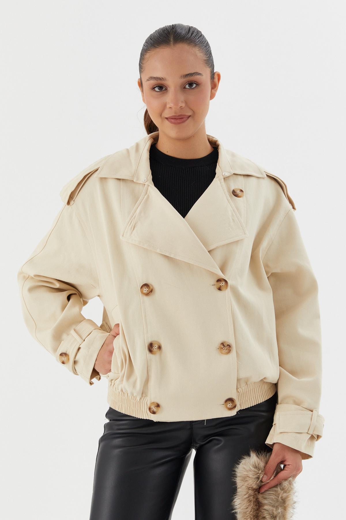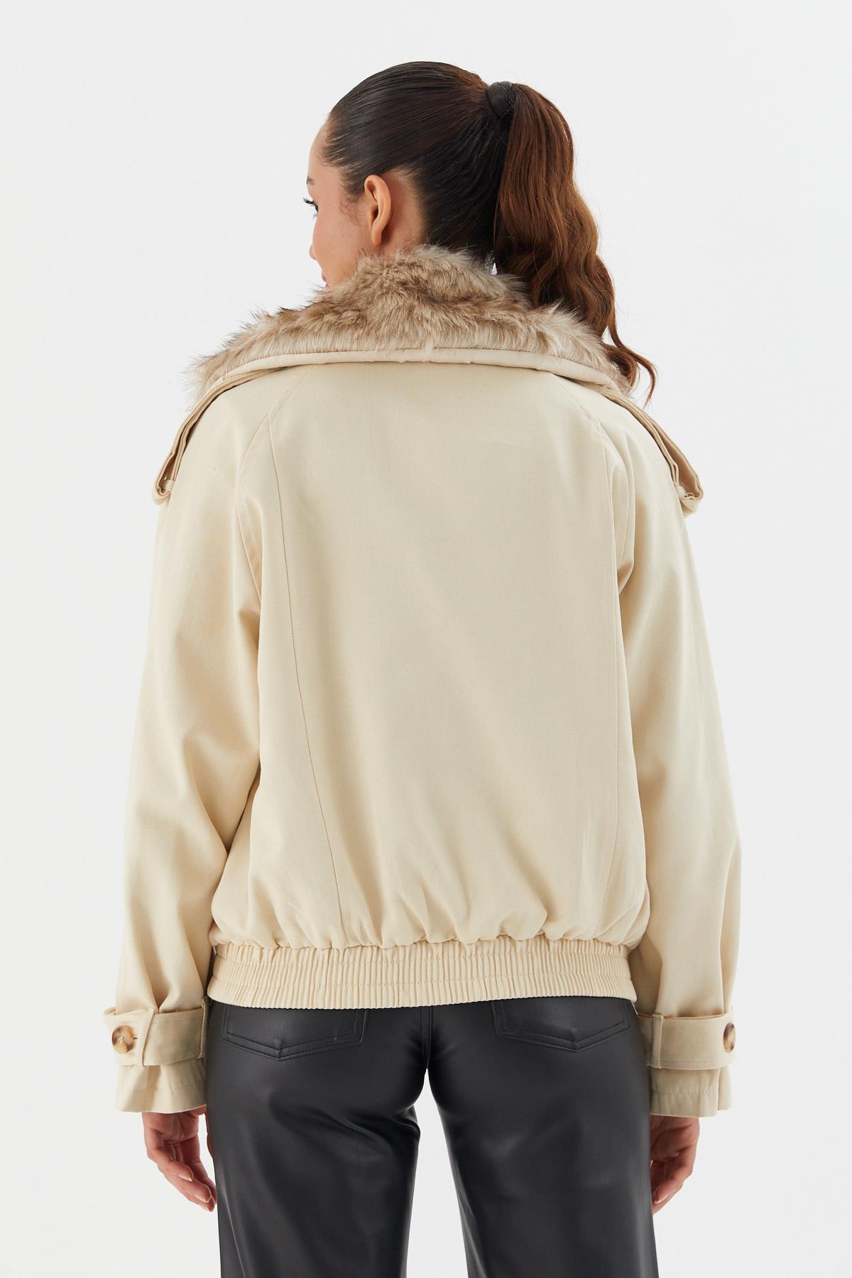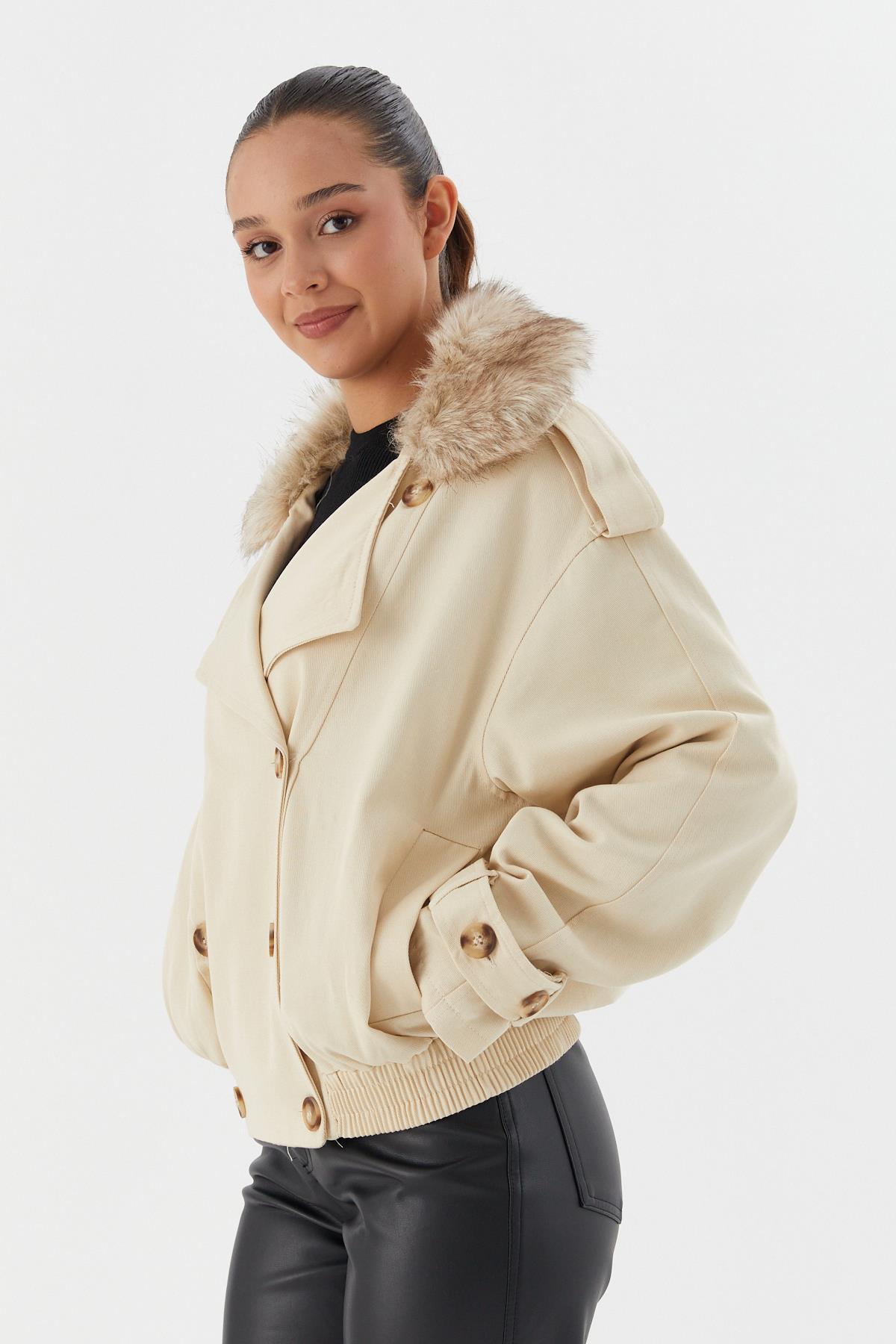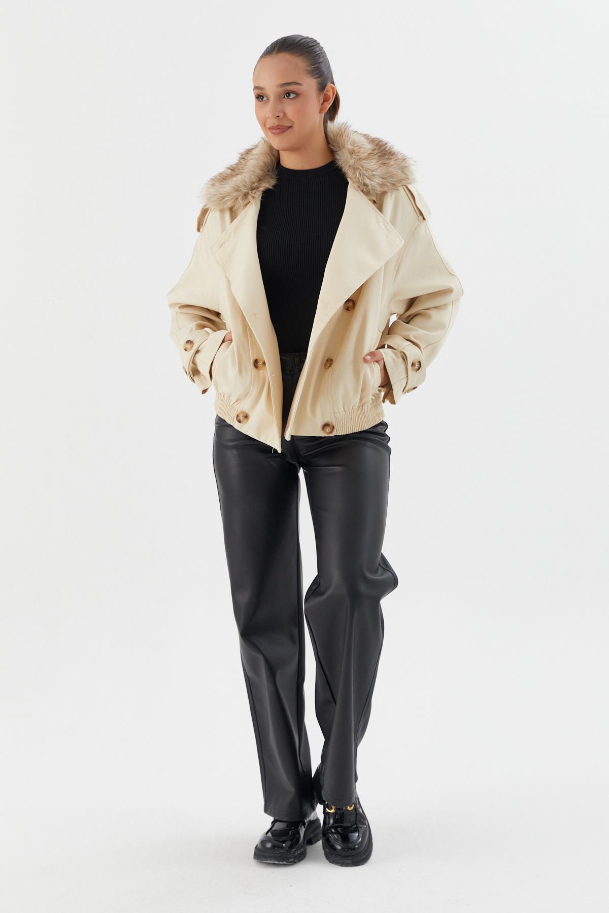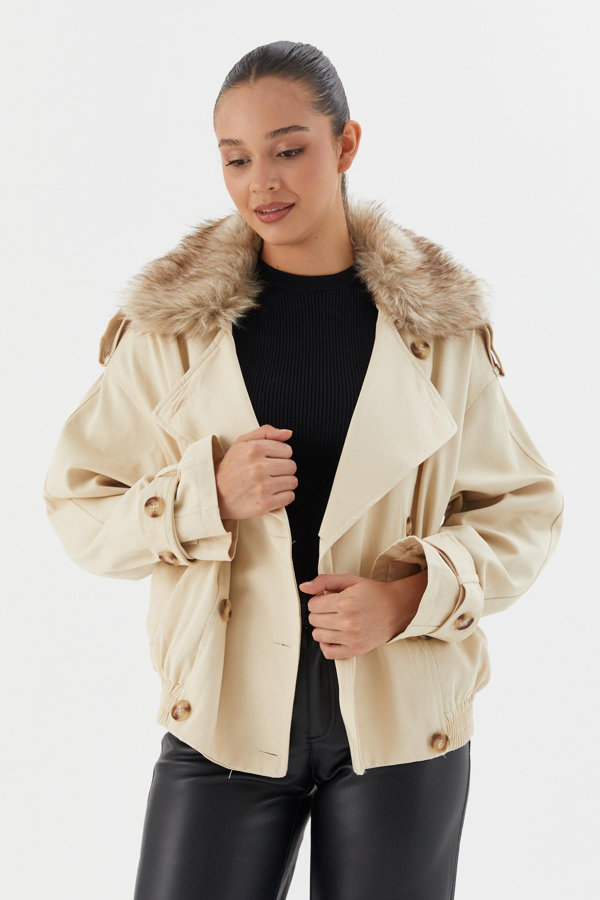 Yakası Kürklü Kısa Trenç KREM (WWOV007P0021_588)