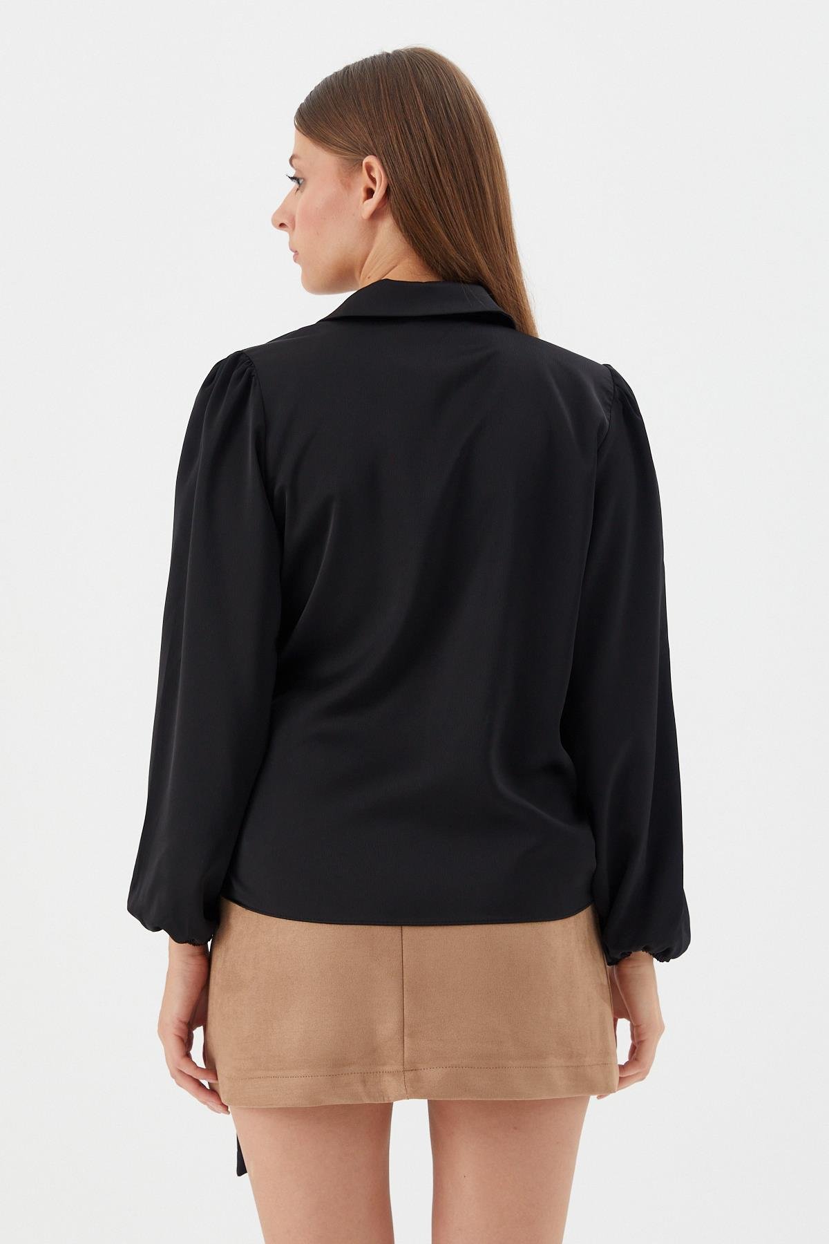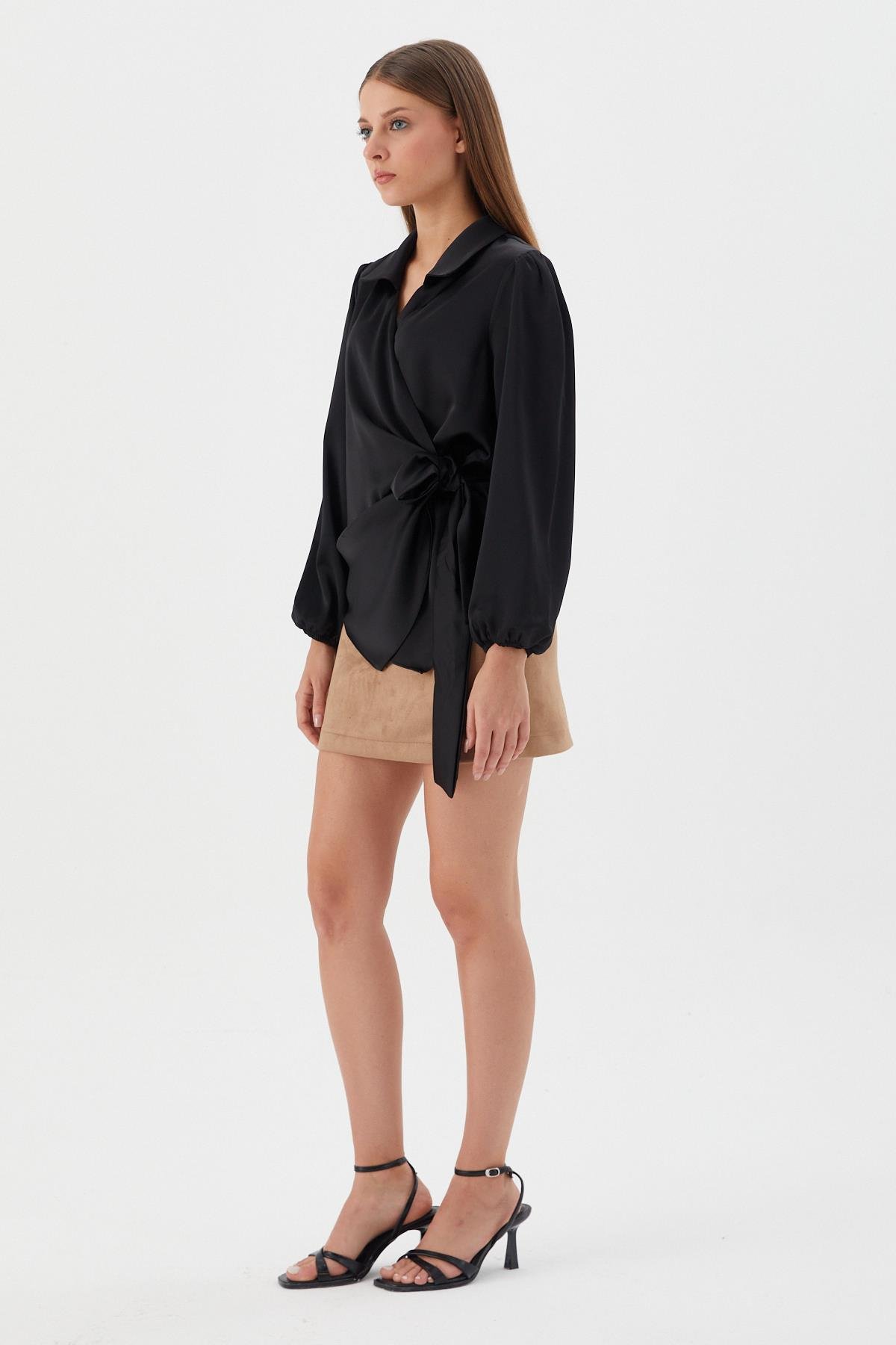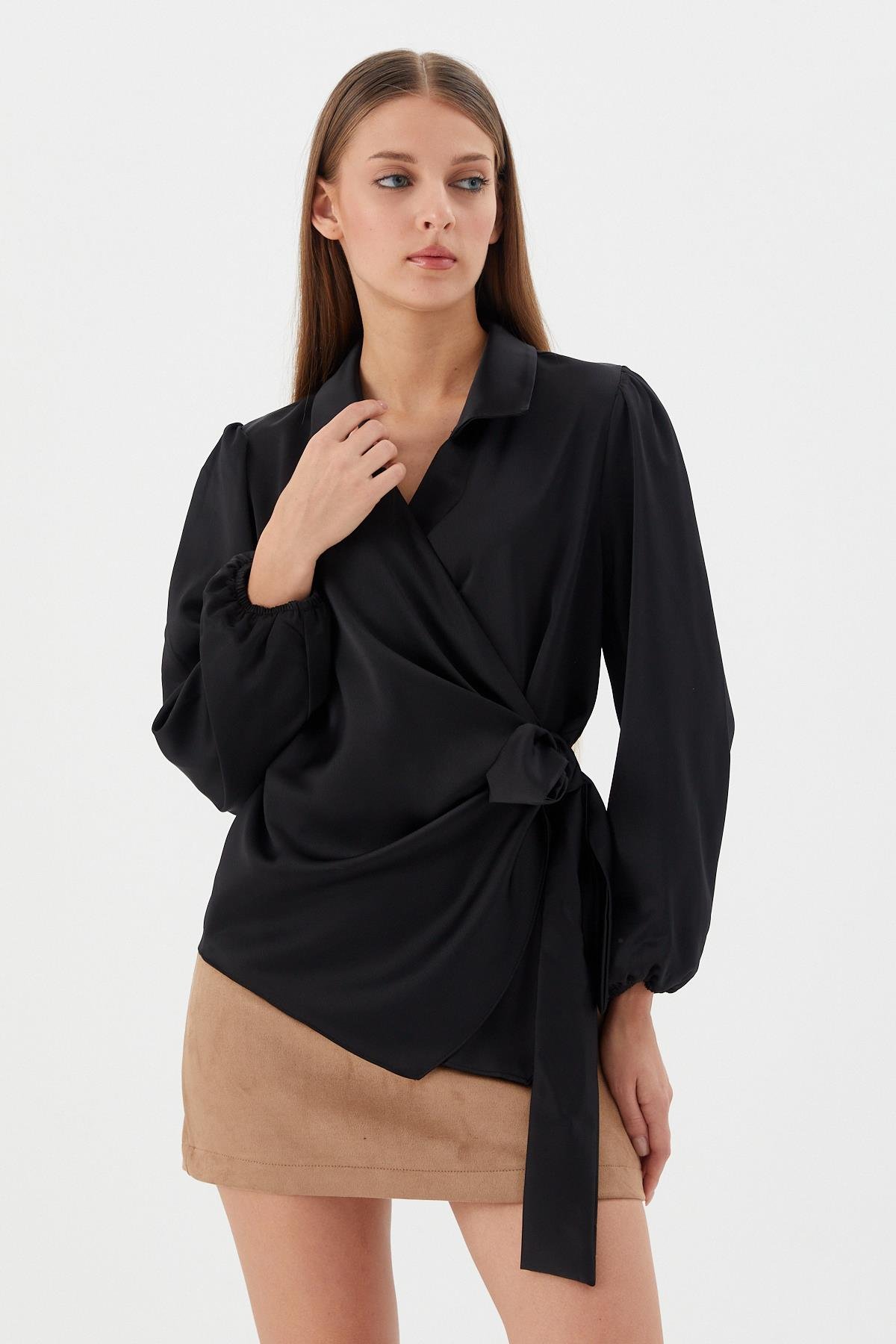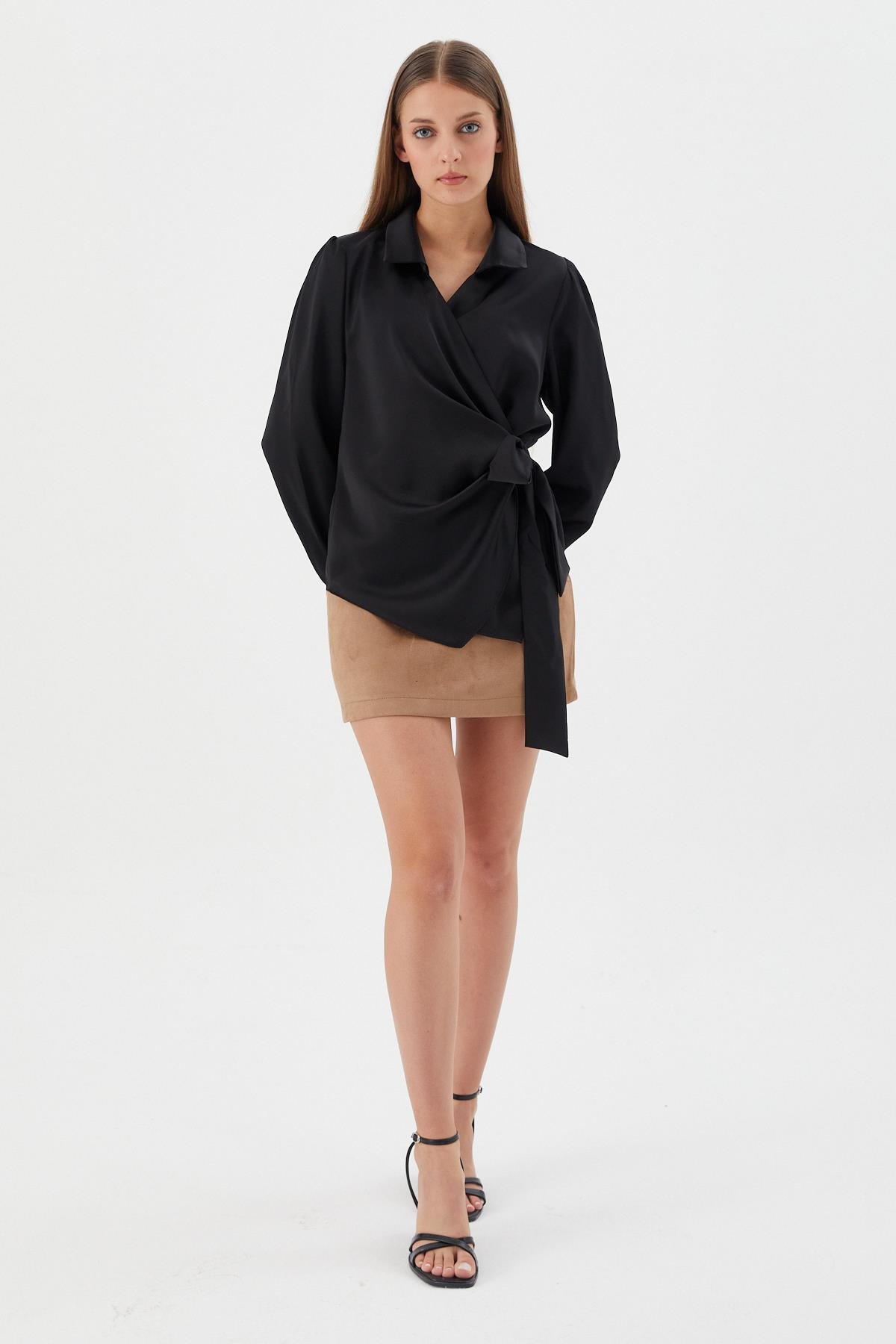 Yanı Bağlamalı Saten Bluz SIYAH (WWOV004R0012_477)