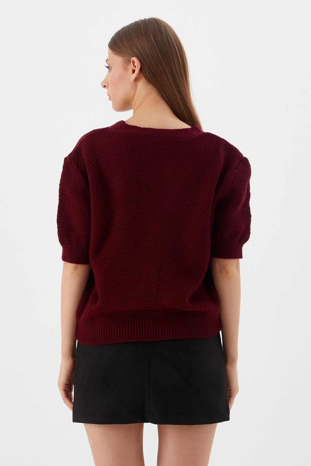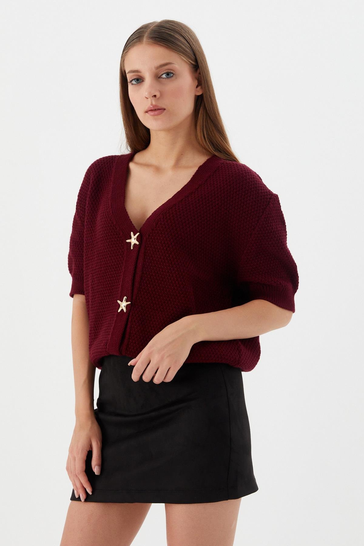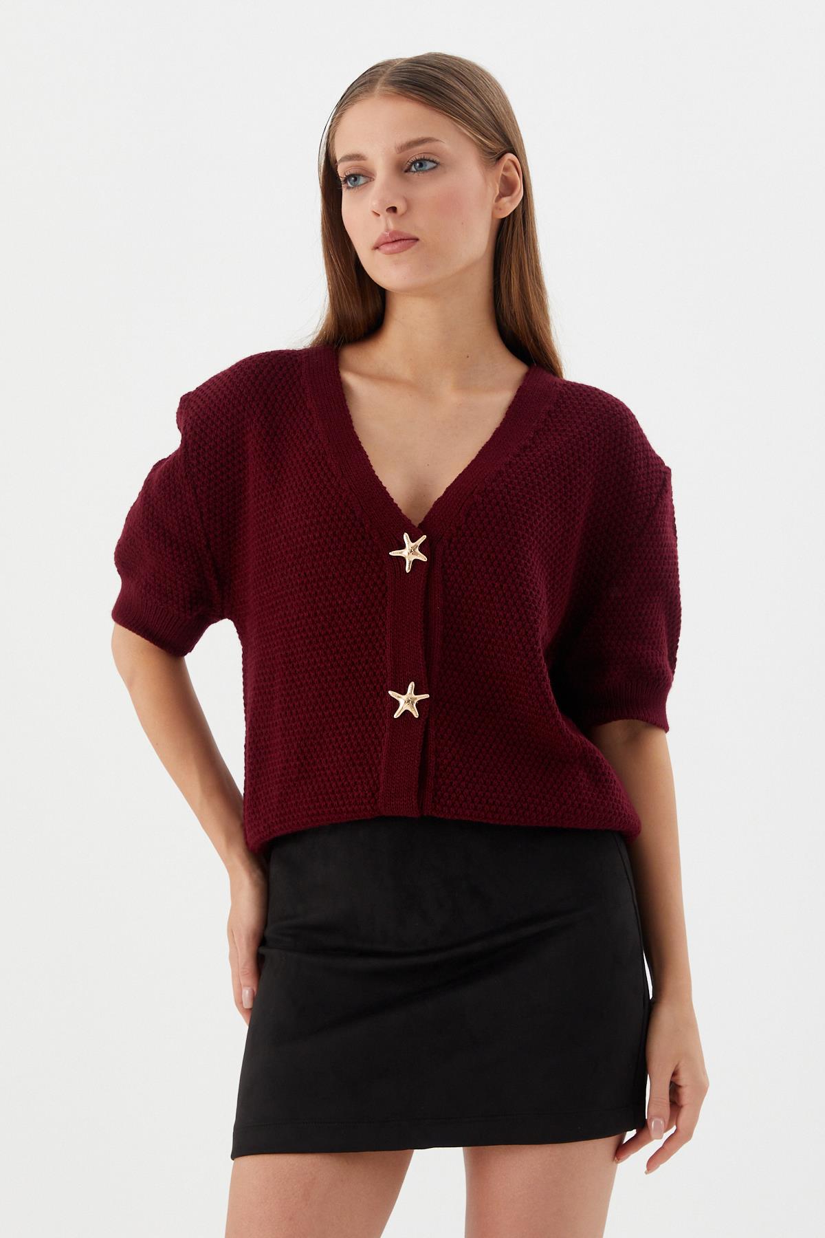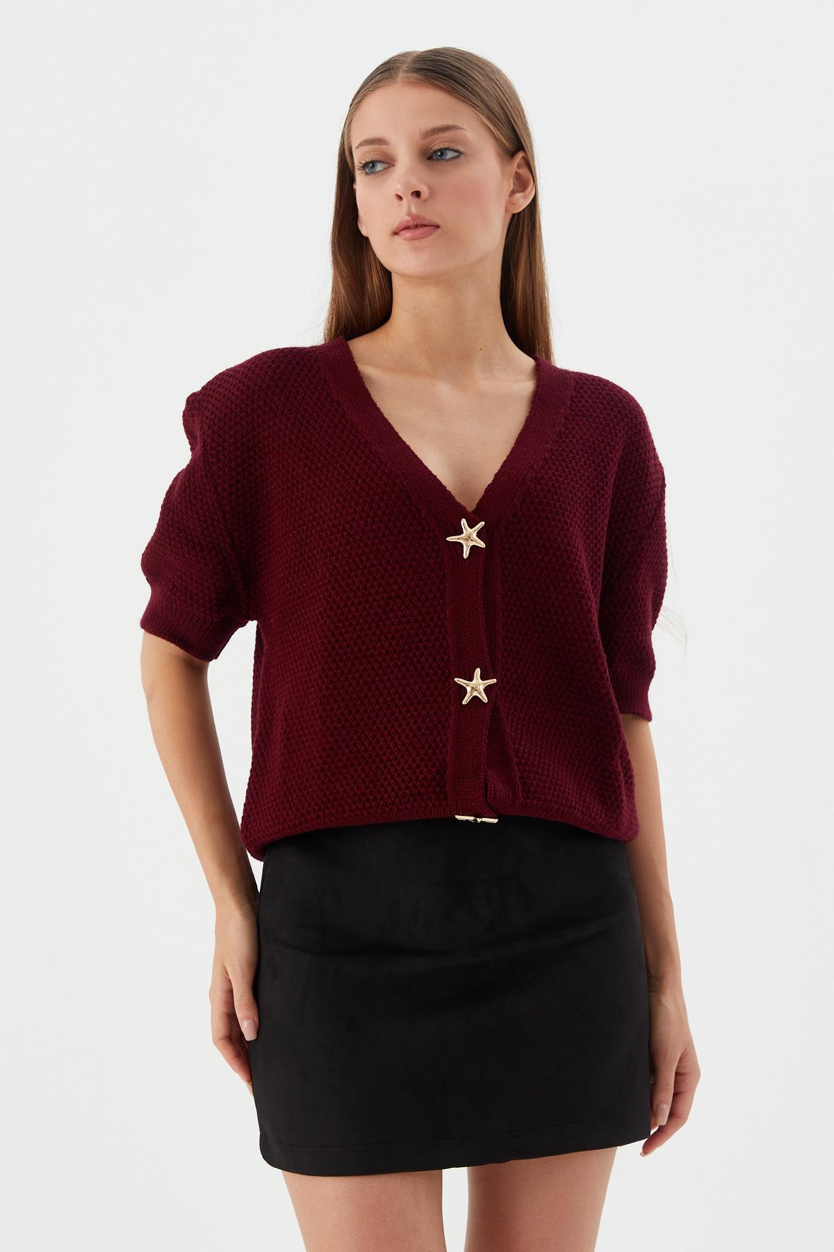 Yıldız Düğmeli Kısa Kol Hırka BORDO (WTRI009P0027_488)
