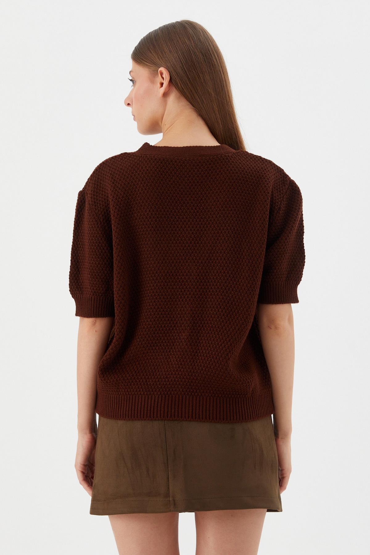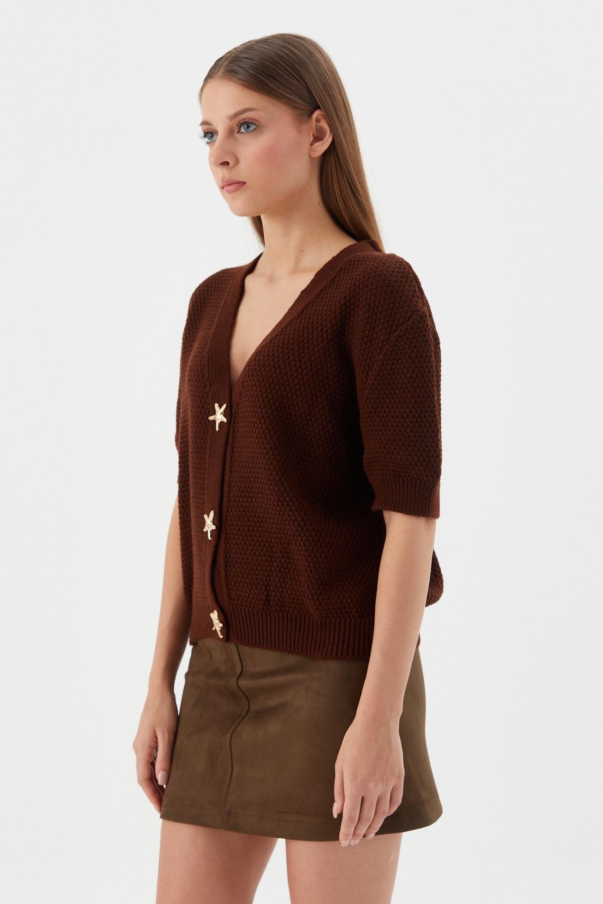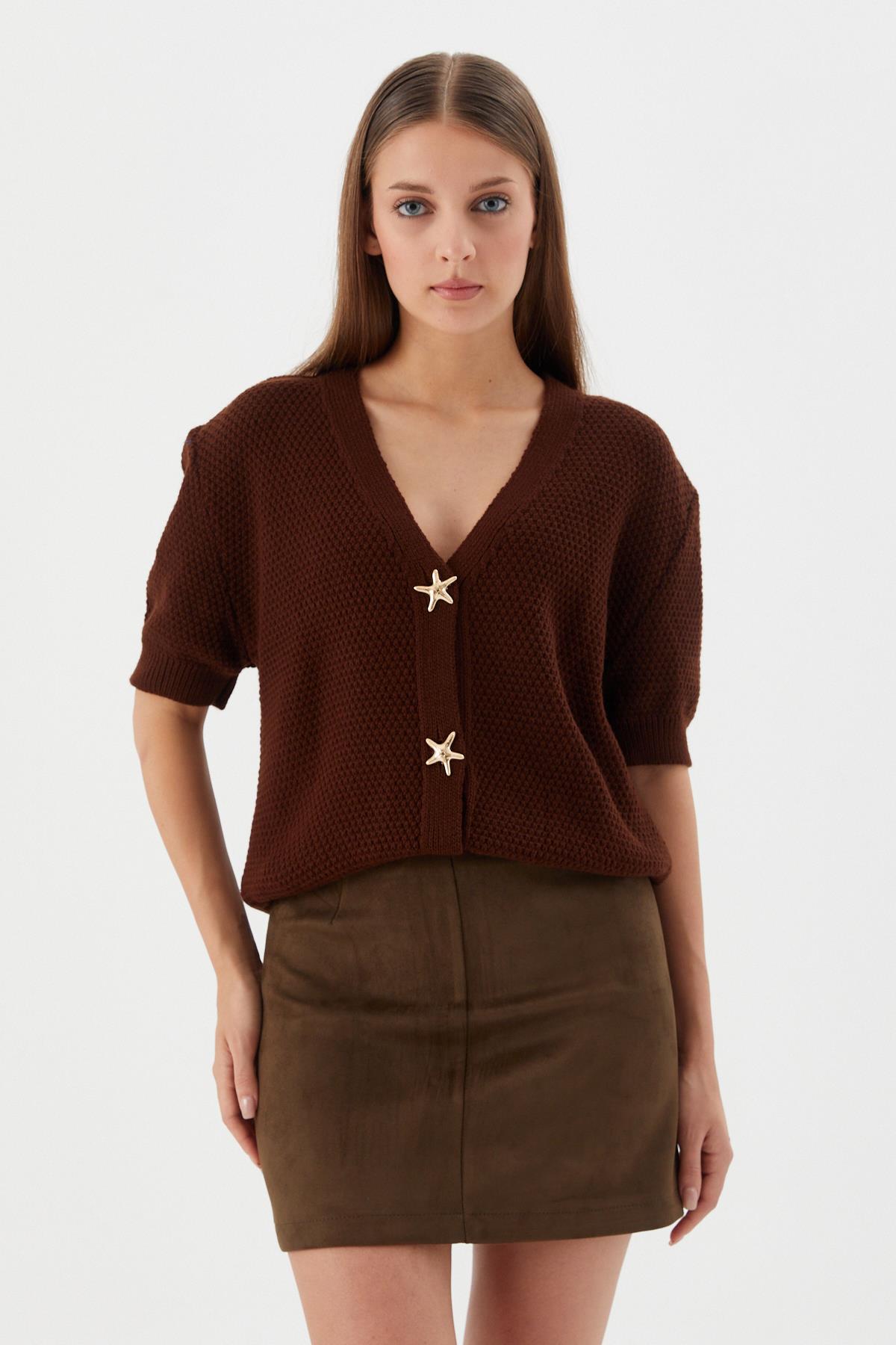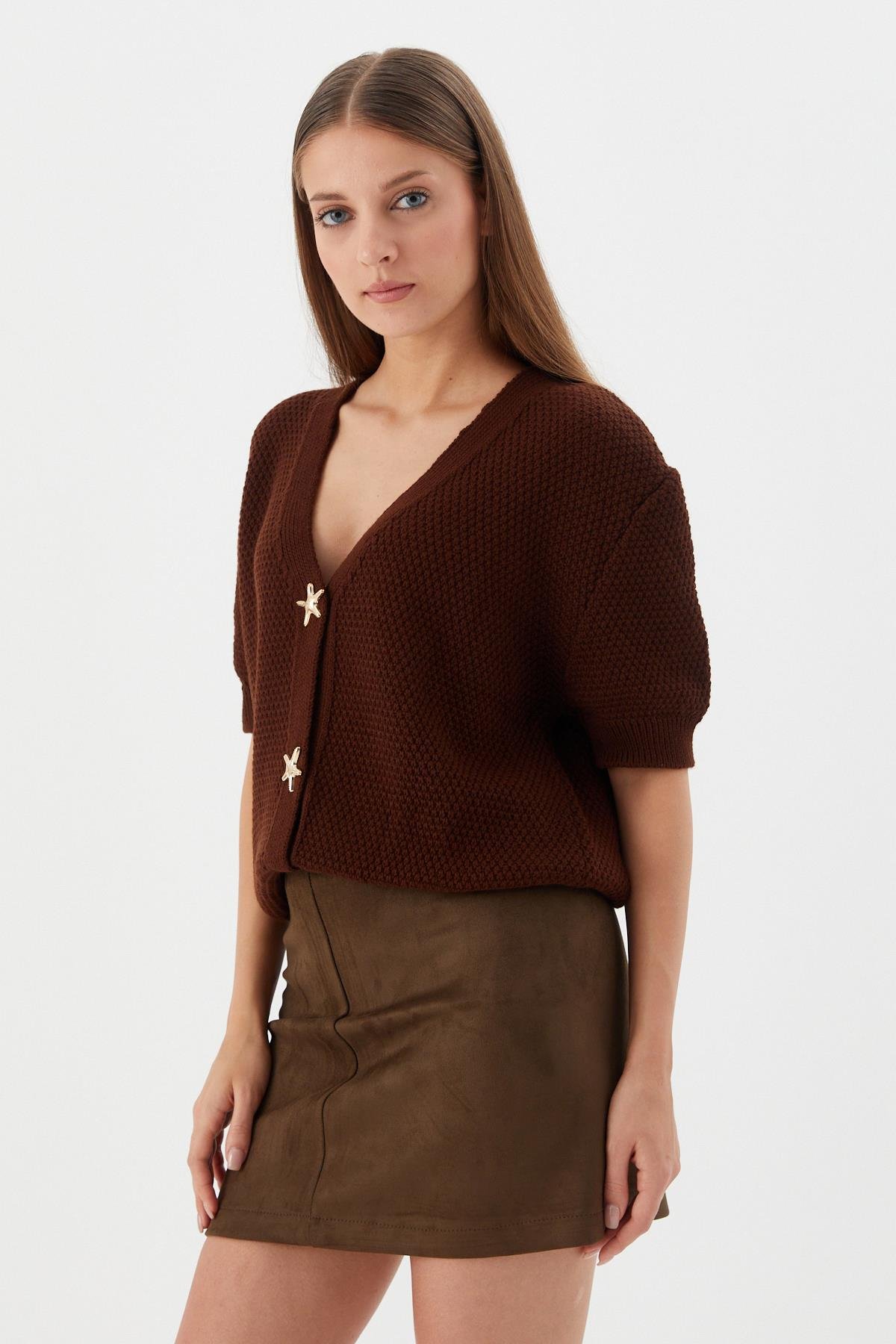 Yıldız Düğmeli Kısa Kol Hırka KAHVE (WTRI009P0027_454)