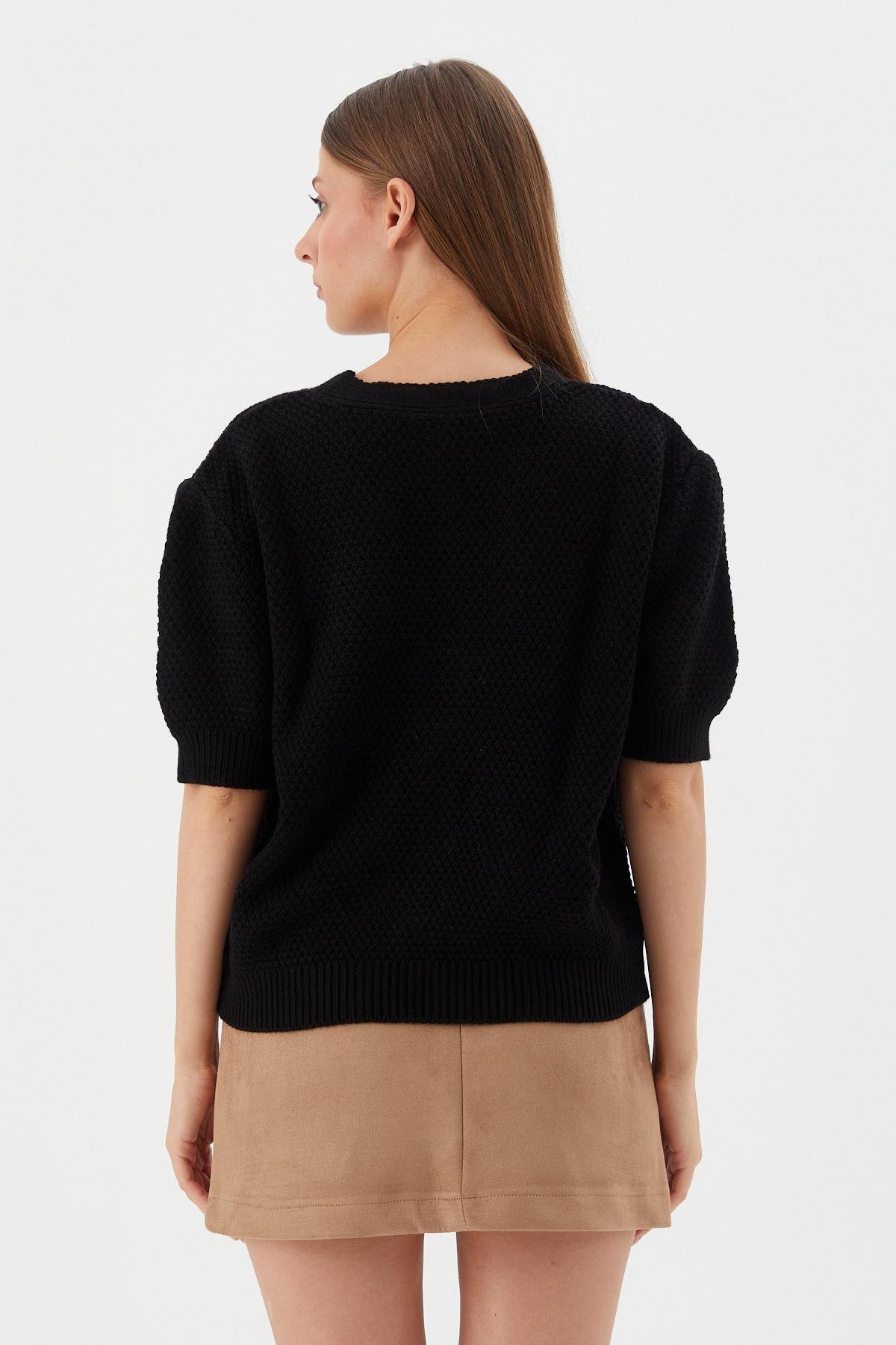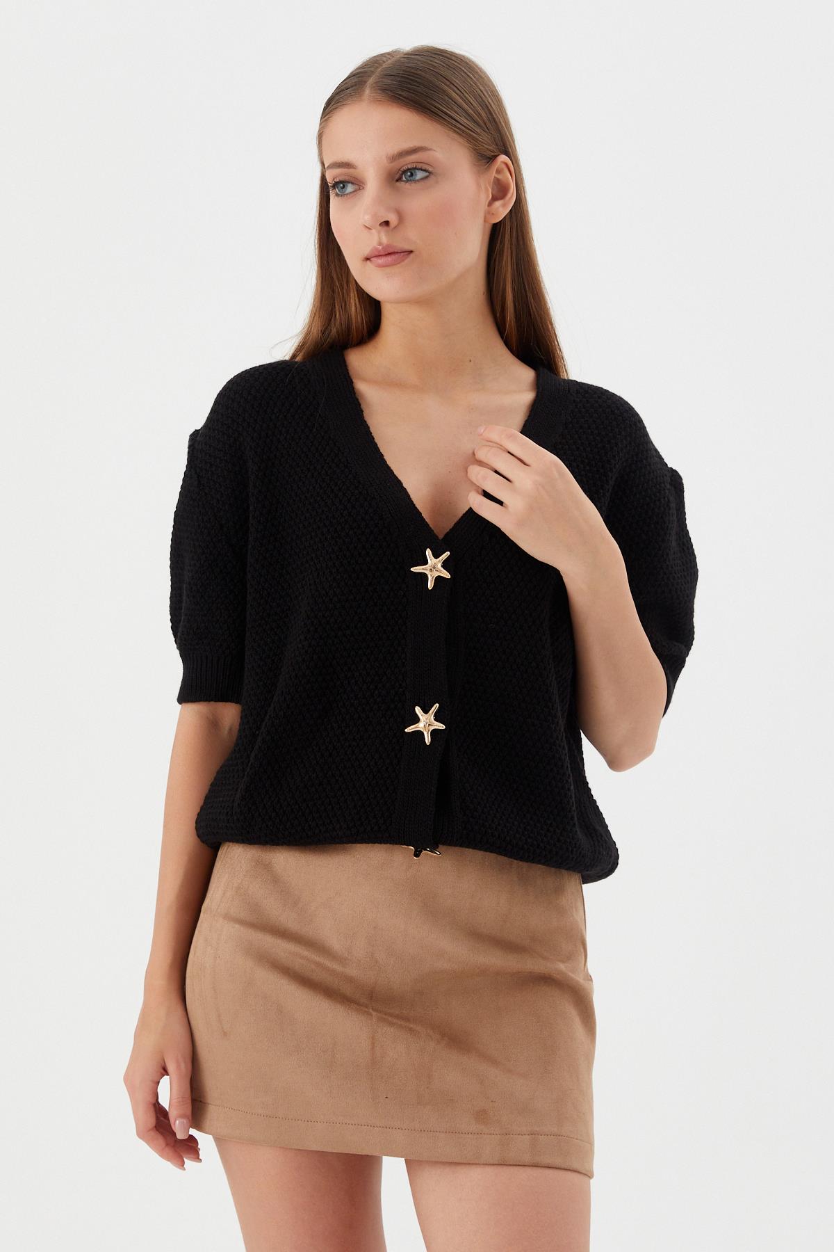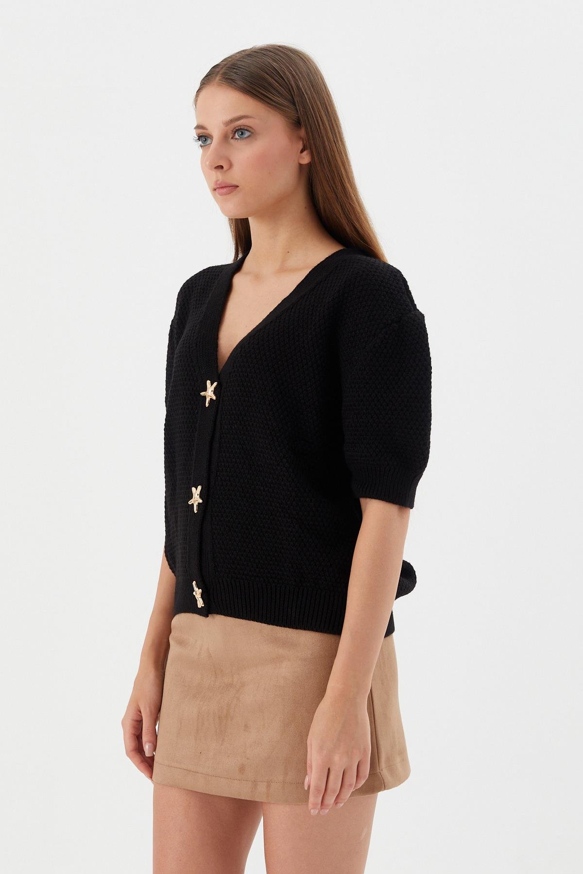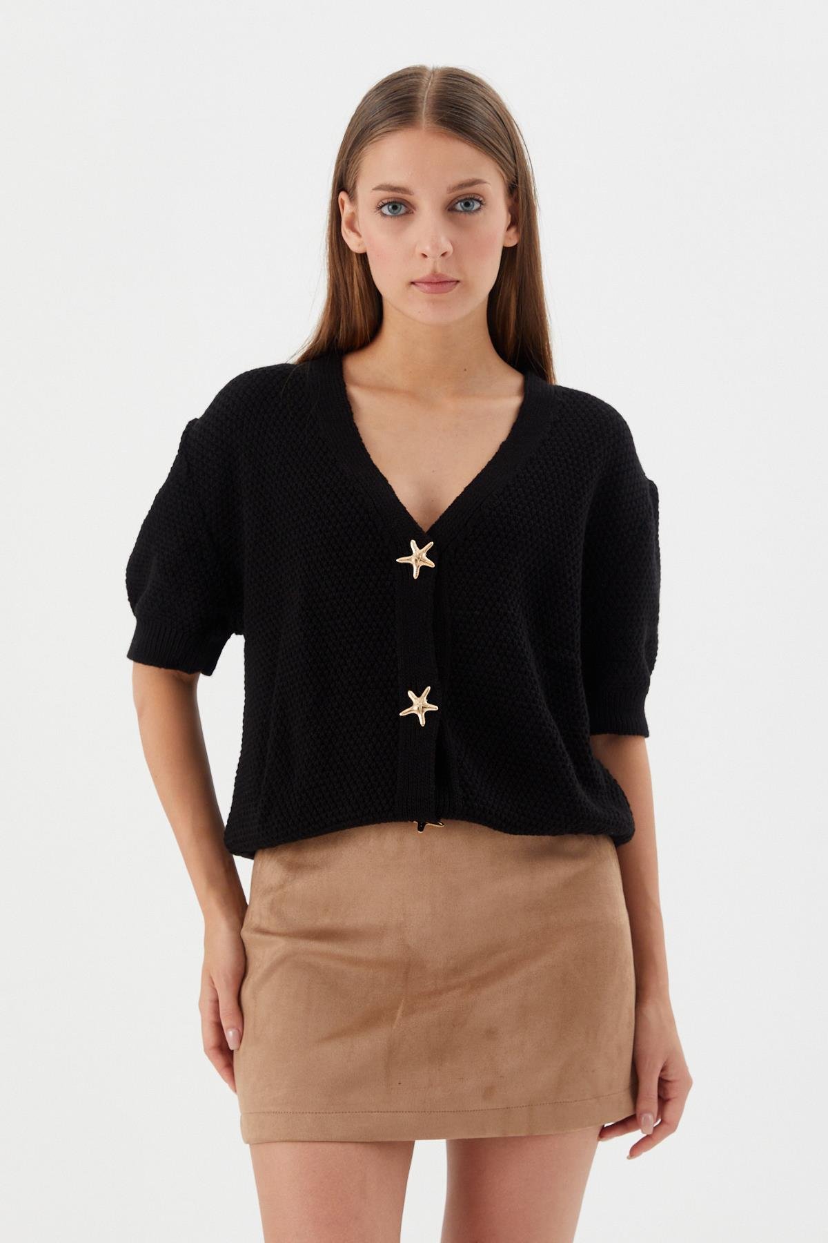 Yıldız Düğmeli Kısa Kol Hırka SIYAH (WTRI009P0027_477)
