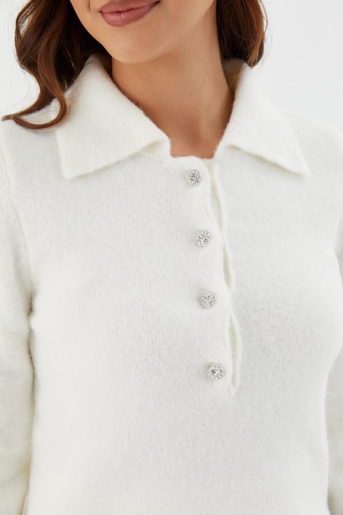 Yumuşak Dokulu Düğmeli Triko Kazak EKRU (WTRI012P0075_919)