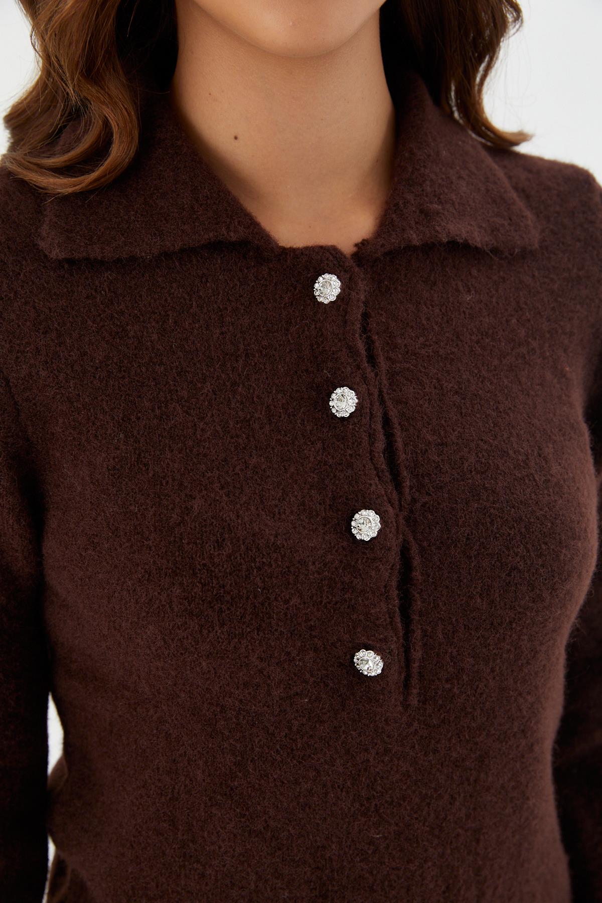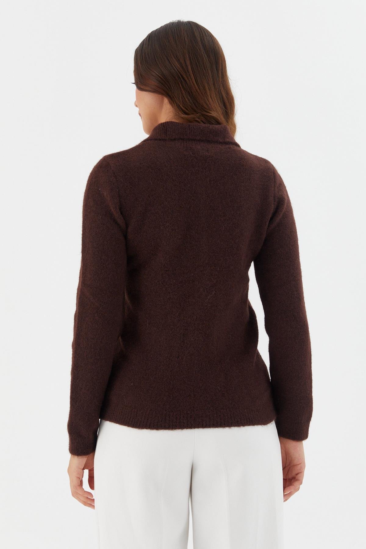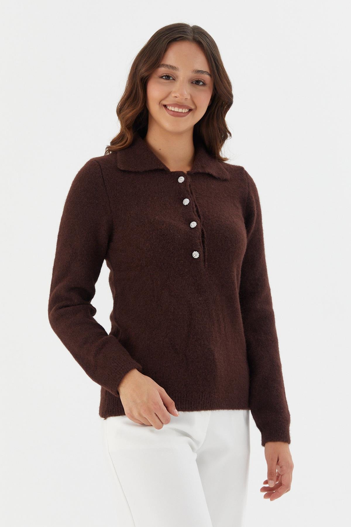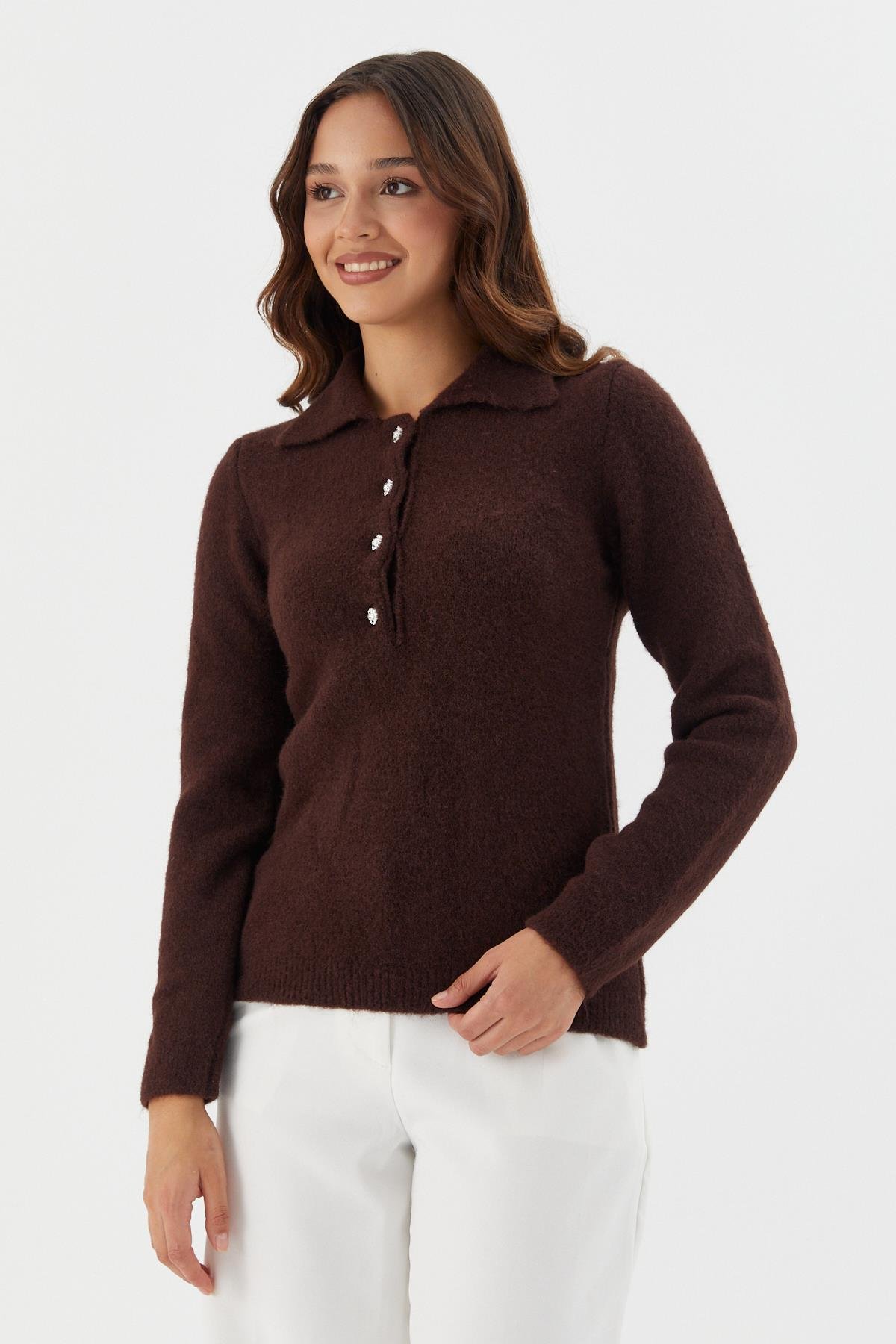 Yumuşak Dokulu Düğmeli Triko Kazak KAHVE (WTRI012P0075_454)